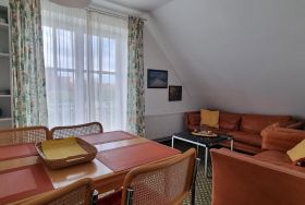Die Dreizimmerwohnung (W10)  liegt im 1. OG des eineinhalbgeschossigen Hauses Rosa Canina, ca. 350 m vom Meer entfernt. Sie ist für 4 Personen geeignet. Im Kinderzimmer finden Sie zwei Einzelbetten. Ein kleines zusätzliches Kinderreisebett kann dazu aufgestellt werden. Das Schlafzimmer ist mit einem Doppelbett (160cm breit) ausgestattet.Im Wohnzimmer befindet sich eine Schalfcouch für eine Person.Die Küche ist mit einem Geschirrspüler ausgestattet, der Kühlschrank mit Tk-FAch. An die Küche schließt sich der Essbereich mit 4-5 Plätzen an. Die Wohnung ist mit hellem Mobiliar ausgestattet , WLAN vorhanden.Im Garten finden Sie Sitzgruppen und Grillmöglichkeiten. Die Wiese lädt zum Ballspiel ein. Der Garten ist mit Sandkasten, Klettergerüst und Schaukel ausgestattet.Fahrräder können im Garten abgestellt r Kurort Kellenhusen, ein ehemaliger Fischerort,bietet Abwechslung und Entspannung in malerischer Lage. Er liegt in einer leichten Bucht. An den feinen Sandstrand schließt sich das Hinterland mit Feldern, Wildrosen, und dem Kellenhusener Forst an. Dort bietet der Mischwald mit, vorherrschend Eichen- und Buchenbestand (1000-jährige Kroneiche), dem Lehrpfad, Rad -und Wanderwegen vielfältige Möglichkeiten. Auf der neuen, sandfarbenen Promenade lässt es sich entspannt bummeln, mit Blick aufs Meer. Sie garantiert gute Laune mit ihren Erlebniszonen (Wasserspielen, dem 'Aussichtsdampfer',  den Grill -und Kinderspielmöglichkeiten... und den malerischen Pflanzeninseln. In gepflegten kleinen Restaurants, Cafes und Geschäften direkt am Strand, können Sie sich verwöhnen lassen oder auch ein wenig shoppen. Auf der neuen Seebrücke mit ihren 3 Erlebnisinseln können Sie sich vergnügen, 300 m ins Meer wandern und am Ende mit  einem Ausflugsdampfer in See stechen.KurzbeschreibungSonstiges : NichtraucherhausKurzbeschreibung 1Anzahl Küchen : 1Garten und AussenanlagenGartenausstattung : Grill