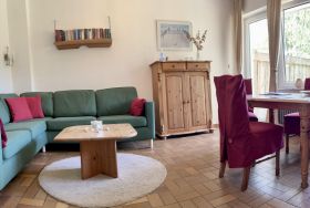 Appartement im Erdgeschoss mit Terrasse für 2 - 4 Personen. 1 Wohnzimmer mit Essecke und Ausgang zur Terrasse. 2 Schlafräume mit je 1 Doppelbett/Einzelbett. Küche u.a. mit E-Herd mit Backofen, Kühlschrank, Geschirrspüler, Kaffeemaschine, Toaster, Wasserkocher, div. Koch- und Essgeschirr. Dusche/WC. Hunde auf auf Anfrage möglich. Leinenzwang im Ort und auf dem Grundstück.