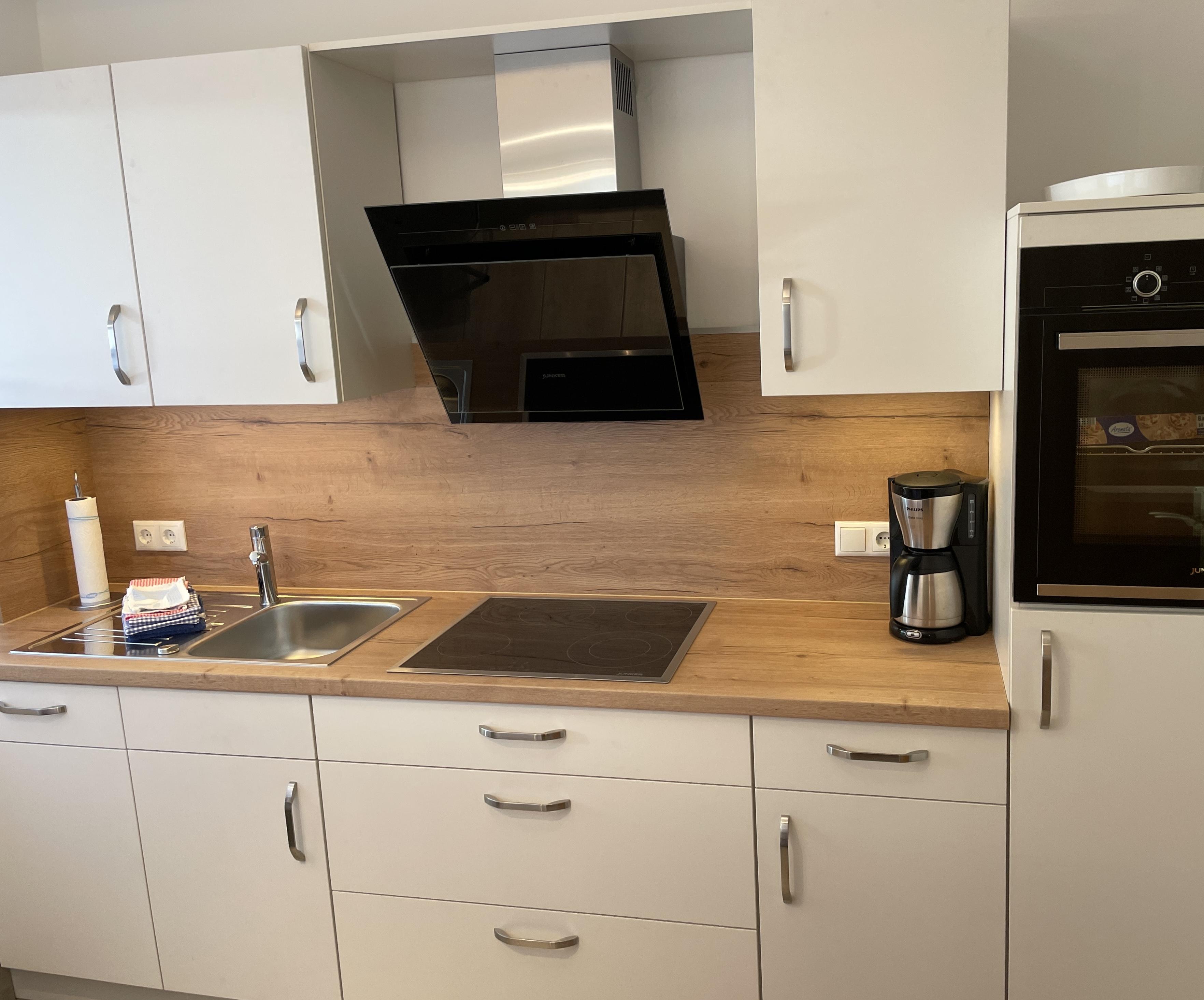 Backofen,Kühlschrank,Kaffeemaschine,Toaster,Wasserkocher. Balkon. Vor dem Haus gr.Spielbereich mit Sandkiste, Rutsche,Trampolin,