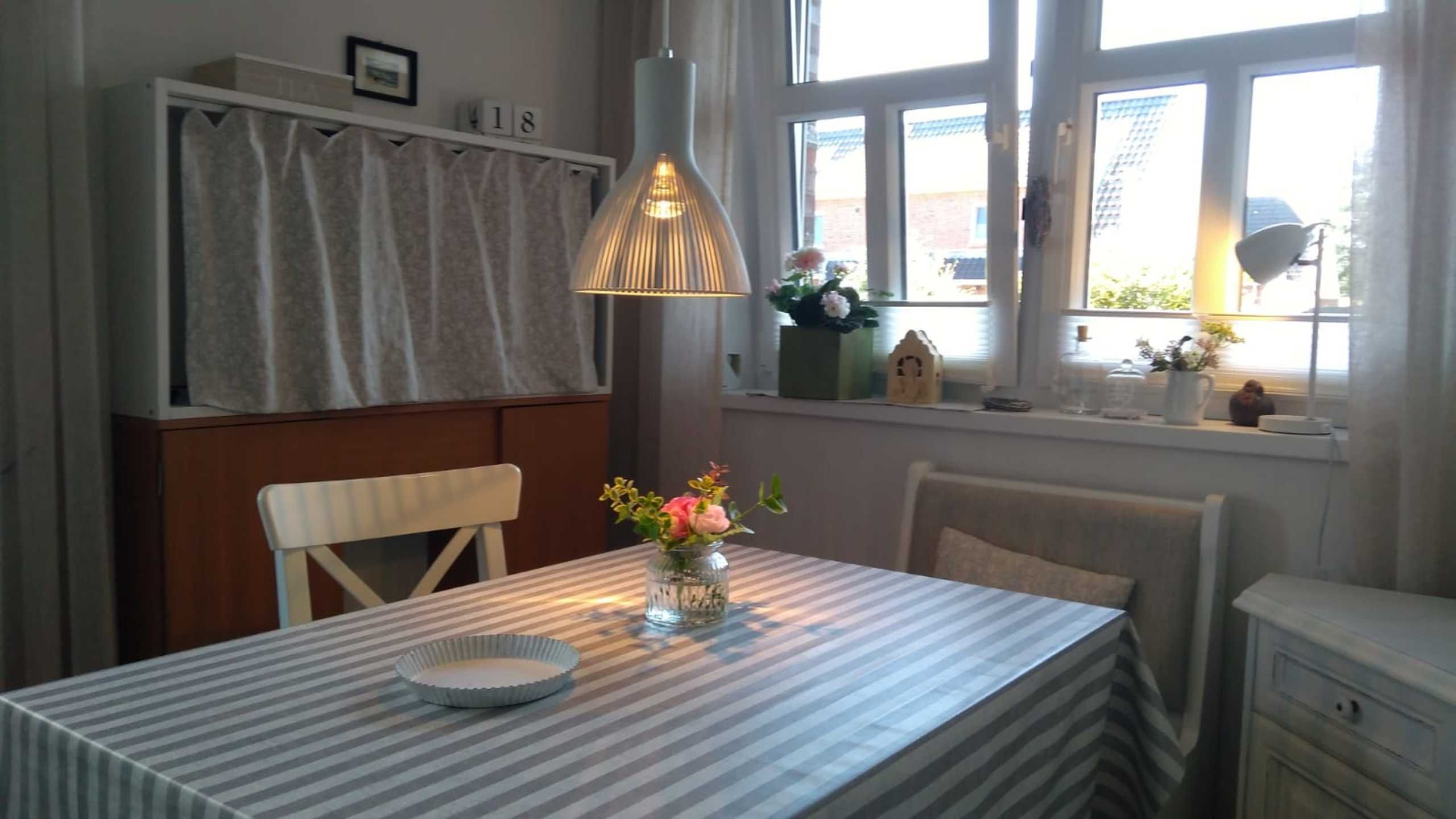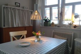 Die Ferienwohnung ist nach Südost ausgerichtet, hell und sonnig. Die Essecke befindet sich am Südfenster und die Terrasse ist u.a. ideal für die Abendsonne. Zudem bietet die Wohnung: Fliesenfußboden, Vinyl-Fußboden, Ceranherd mit Backofen, Geschirrspüler, Kühlschrank mit Eisfach, Mikrowelle, Toaster, Wasserkocher, Kaffeemaschine, SAT-TV, Flachbildschirm, Stereoanlage, Staubsauger, Bügeleisen, Wäscheständer und vieles mehr.
