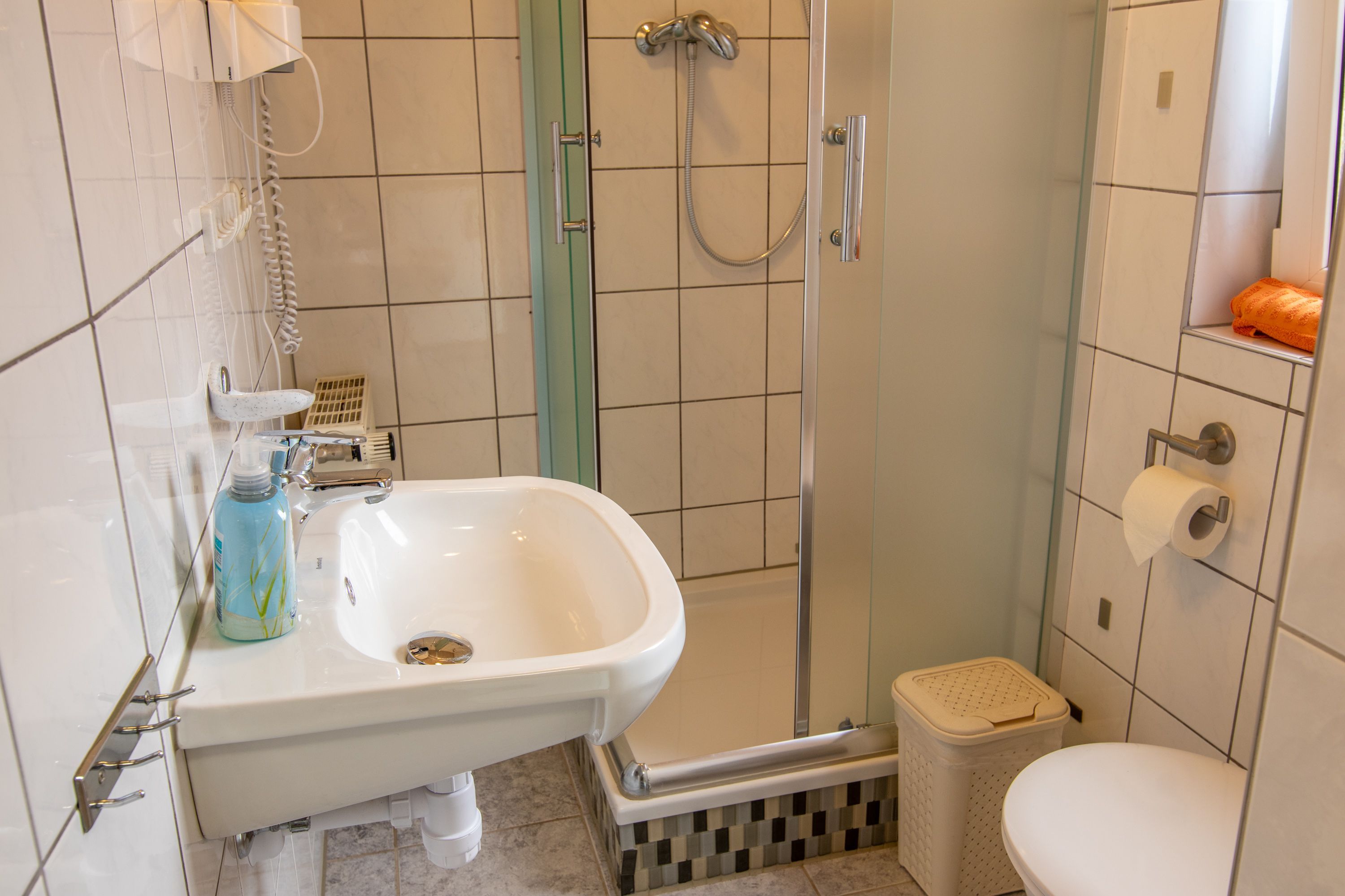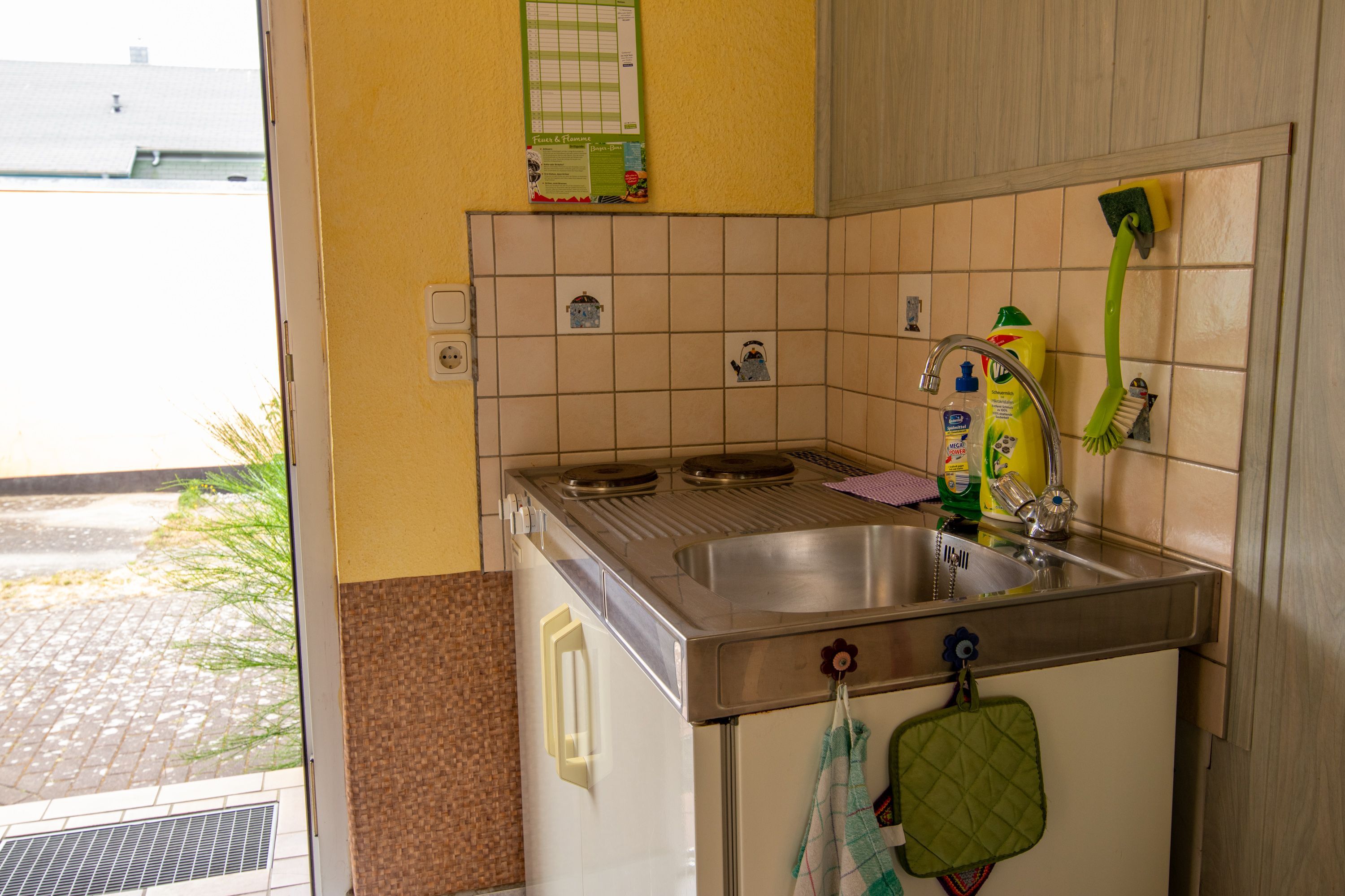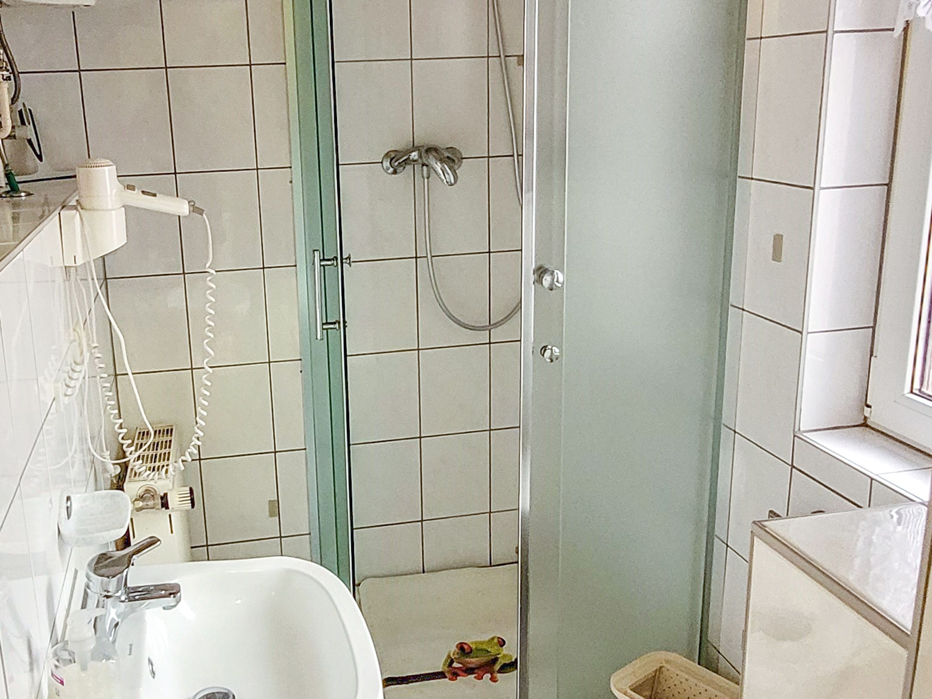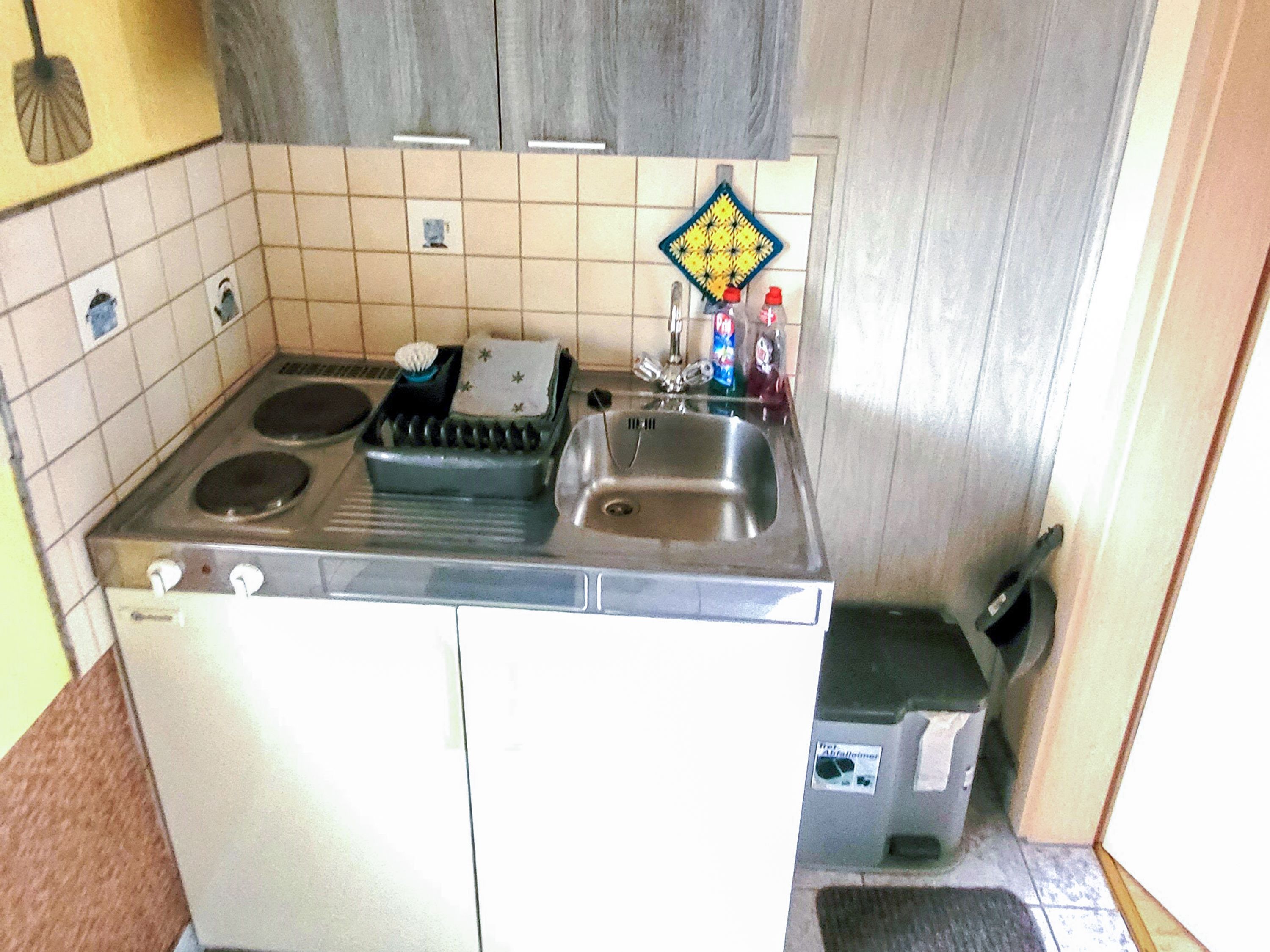 Koje 13 ist eine charmante 25 m² große Ferienwohnung für 2 Personen, die du über drei Stufen bequem erreichst. Im kombinierten Wohn- und Schlafzimmer erwartet dich ein komfortables Doppelbett (180x200, mit getrennten Matratzen) ideal für erholsame Nächte nach einem Tag an der frischen Ostseeluft. Ein gemütliches Sofa, ein kleiner Tisch mit zwei Stühlen und ein TV schaffen zusätzlich einen gemütlichen Rückzugsort für gemeinsame Stunden. Der große Kleiderschrank bietet ausreichend Stauraum für deine Urlaubsgarderobe. Im Eingangsbereich findest du eine praktische Pantry-Küche, ausgestattet mit zwei Kochplatten, Kühlschrank, Kaffeemaschine, Wasserkocher und Toaster perfekt für ein entspanntes Frühstück oder kleine Mahlzeiten zwischendurch. Das Bad mit Dusche und WC sorgt für frische Momente. Direkt vor dem Eingang lädt dich eine kleine Terrasse mit Sitzgelegenheit dazu ein, die Sonne zu genießen oder den Abend bei einem Getränk ausklingen zu lassen. Für dein Auto steht ein Parkplatz auf dem Grundstück zur Verfügung und auch dein Fahrrad kannst du sicher am Fahrradständer abstellen.