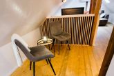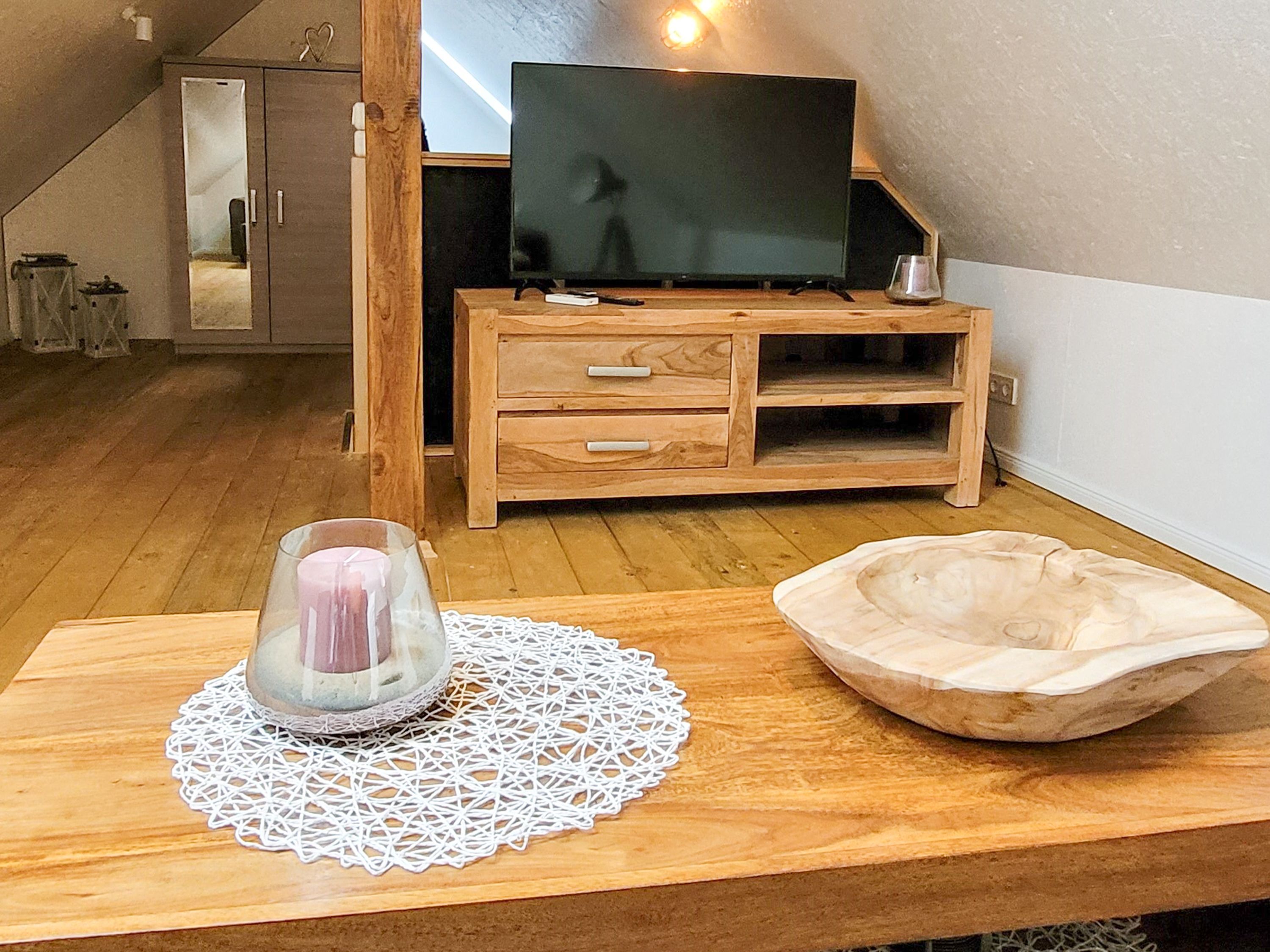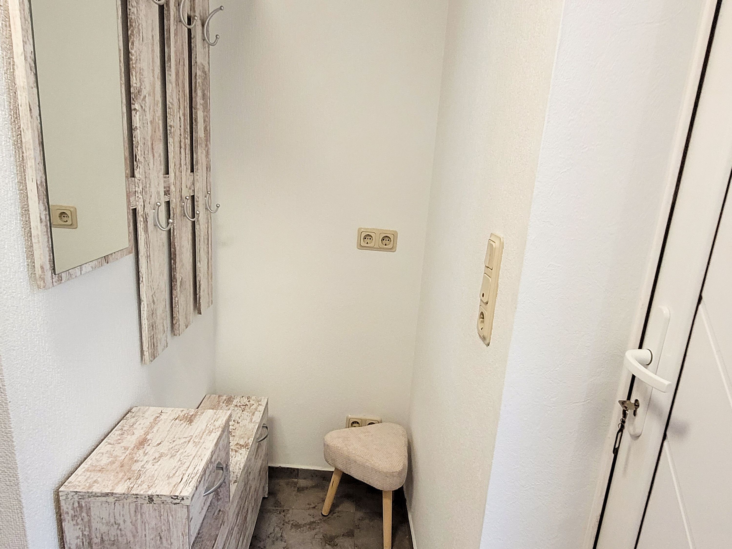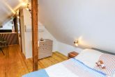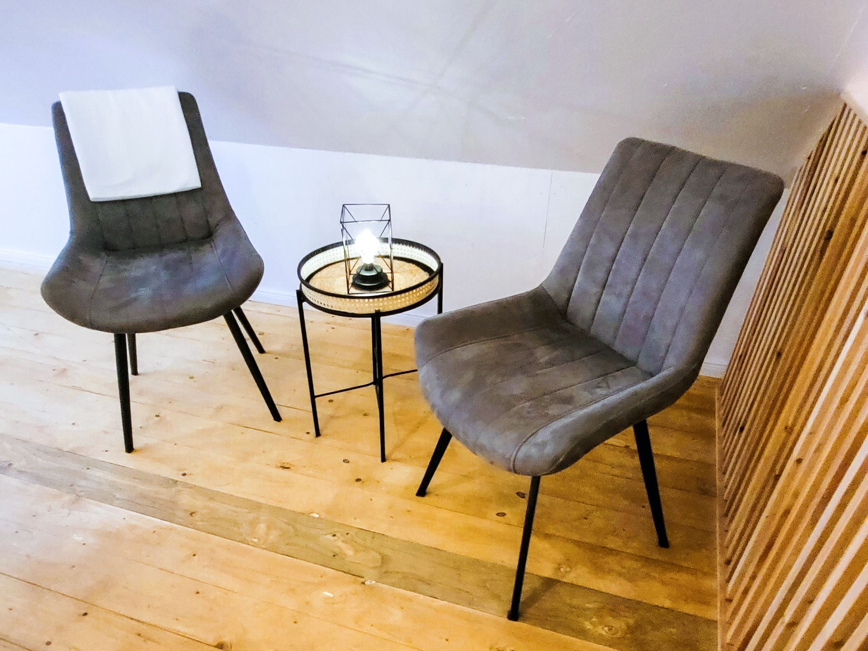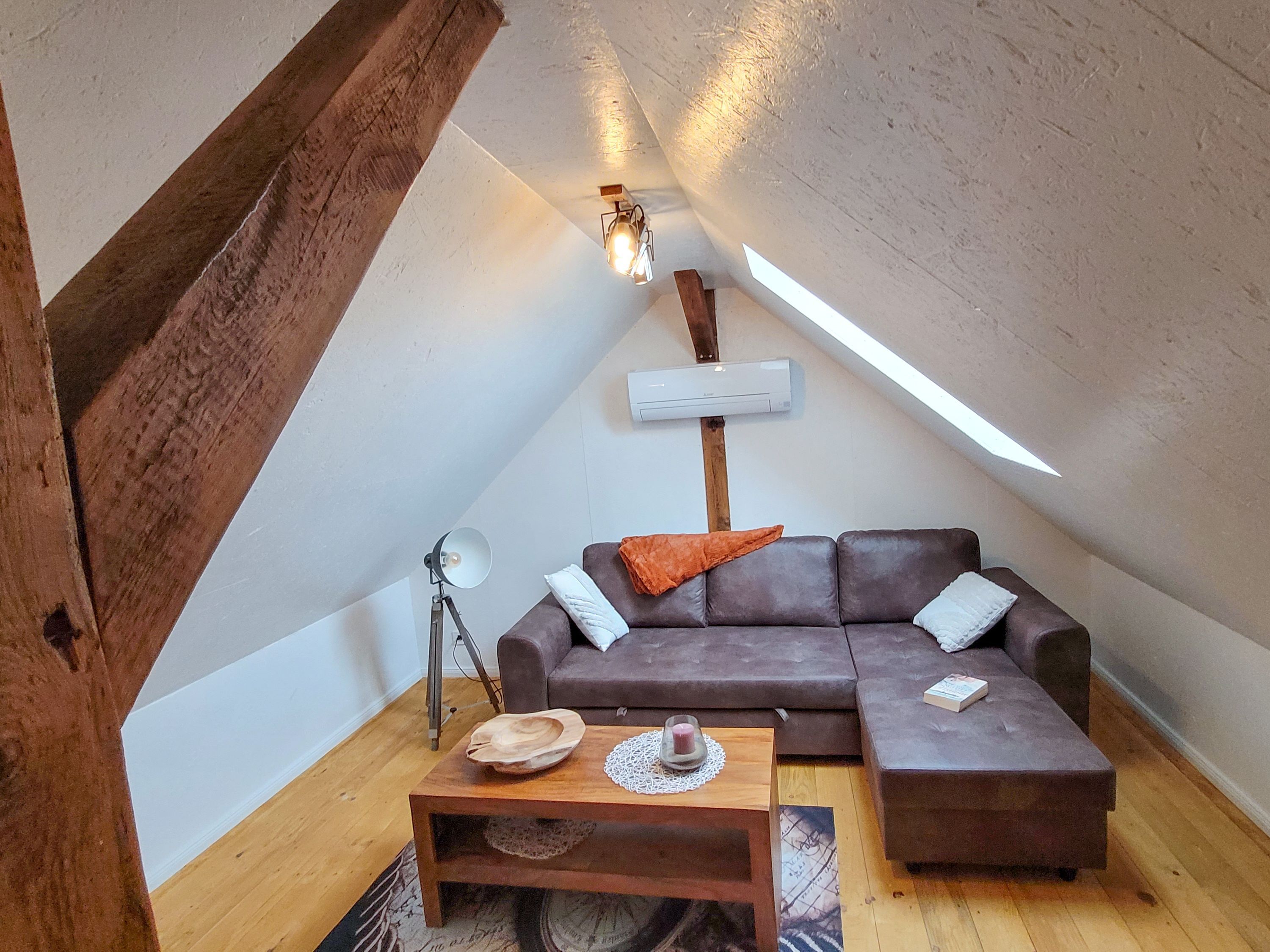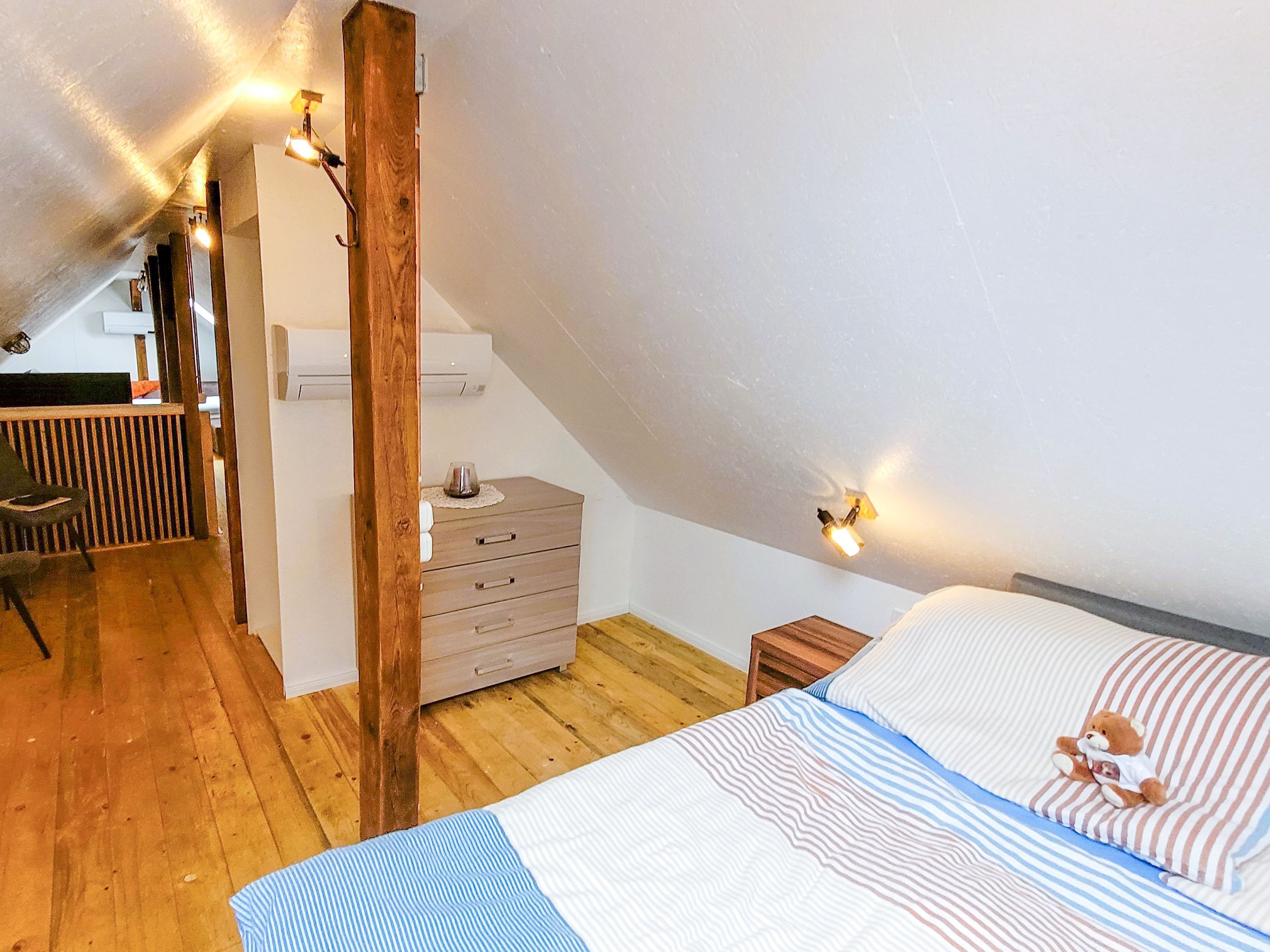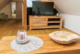 Boje 6 ist eine gemütliche Maisonettewohnung für bis zu 4 Personen, die dir auf zwei Etagen eine charmante Auszeit auf Usedom ermöglicht. Du betrittst die Wohnung über einen kleinen Flur mit Garderobe und Spiegel, von dem aus du in die separate Küche und das Badezimmer gelangst. Die Küche ist funktional ausgestattet mit Kochfeld, Kühlschrank, Pad-Kaffeemaschine, Wasserkocher, Toaster und allem, was du für den kleinen oder großen Hunger brauchst. Am Esstisch kannst du in aller Ruhe frühstücken, den Tag planen oder den Abend bei einem Glas Wein ausklingen lassen. Über eine Treppe gelangst du in das offen geschnittene Dachgeschoss, das durch seine Holzbalken, Schrägen und liebevolle Gestaltung eine besonders einladende Atmosphäre schafft. Im vorderen Teil befindet sich eine gemütliche Sitzecke mit Schlafsofa (140x200) und TV – perfekt zum Lesen, Entspannen oder als zusätzliche Schlafmöglichkeit. Im hinteren Bereich steht ein Doppelbett (140x200), das dir ruhige Nächte in behaglicher Atmosphäre verspricht. Ein Kleiderschrank bietet ausreichend Stauraum für deine Urlaubsgarderobe. Das helle Bad ist mit einer Dusche und einem WC ausgestattet und bietet dir alles, was du für deine tägliche Wohlfühlroutine brauchst. Draußen erwartet dich eine kleine Terrasse mit Sitzgelegenheit, die perfekt für einen Kaffee in der Morgensonne oder einen entspannten Grillabend geeignet ist. Ein Parkplatz sowie Fahrradständer stehen dir direkt auf dem Grundstück zur Verfügung.