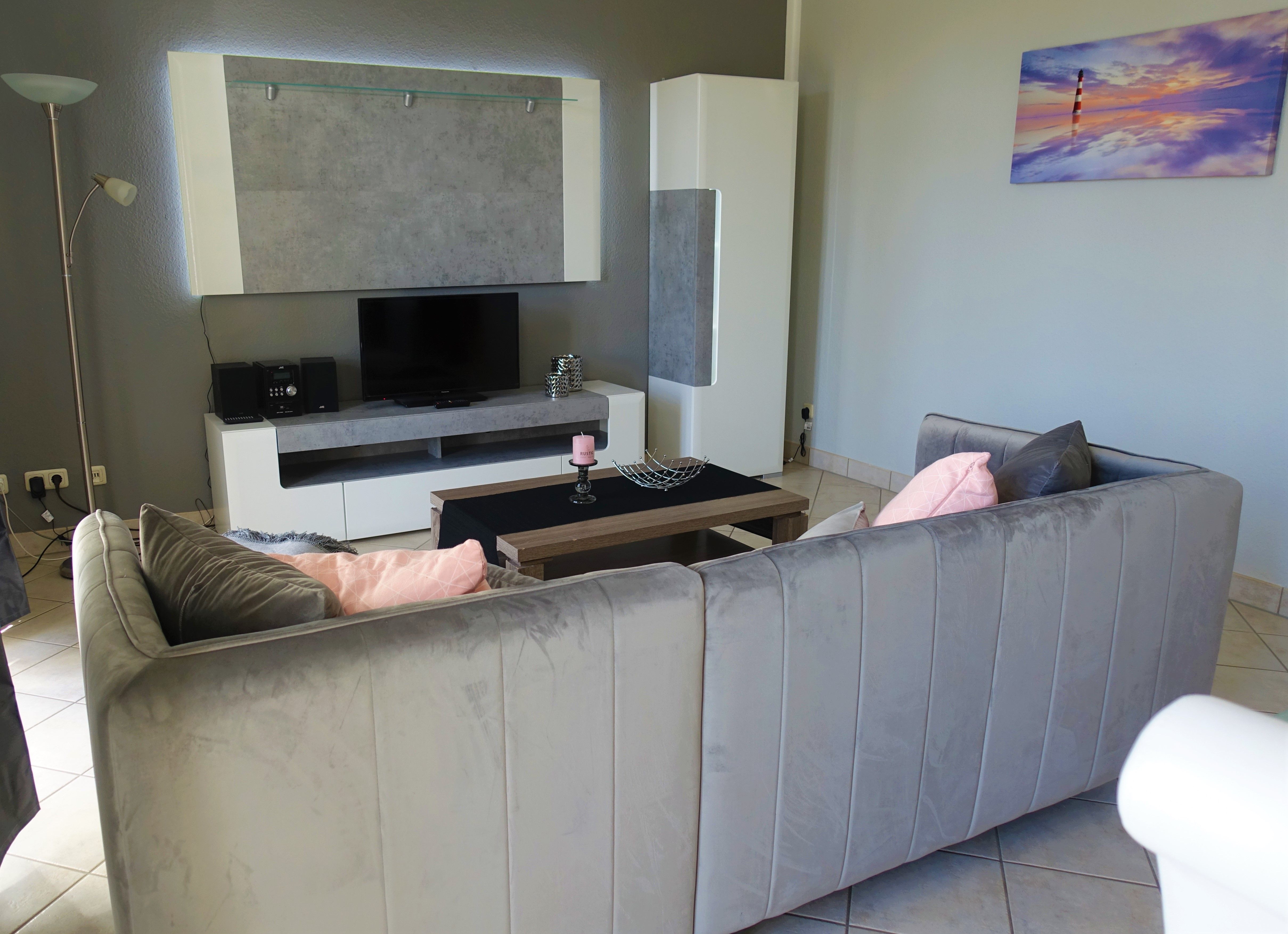 Die Ferienwohnung ist komfortabel ausgestattet mit Backofen, Spülmaschine, Mikrowelle und ausreichend Geschirr für 4 Personen. Im Essbereich gibt es einen ausziehbaren Esstisch mit 4 bequemen Stühlen. Zusätzlich finden Sie im Wohnbereich ein Stereo-Color-TV, einen DVD - Player und eine Hifi-Stereo-Anlage mit CD-Player. Für die Kleinsten stehen ein Hochstuhl und ein Kinderbett zur Verfügung, so fühlen sich auch Familien hier sehr wohl.