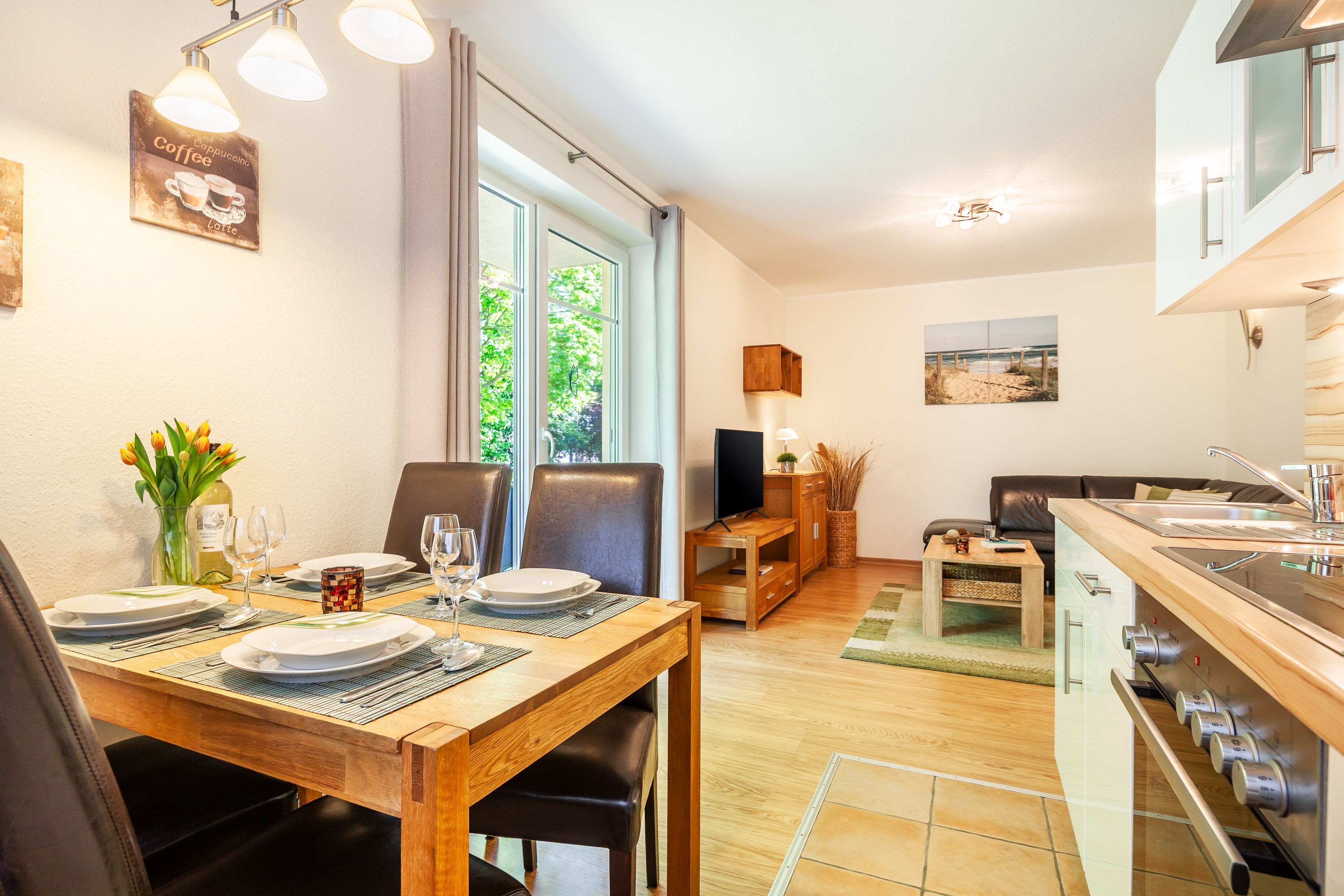 Die Ferienwohnung Feelmeer befindet sich in der Villa Rerik im Ostseebad Rerik. Sie bietet Platz für bis zu 4 Personen auf insgesamt 52 m² Wohnfläche. Die Wohnung verfügt über 2 Schlafzimmer, einem Wohnraum mit offener Küche und einem Badezimmer mit Dusche und WC. Zur weiteren Ausstattung gehören zwei Smart-TV, diverse Gesellschaftsspiele undInternetzugang. Ein abschließbarer Fahrradraum sowie ein Stellplatz für das Auto befinden sich direkt auf dem Grundstück. Zur gutausgestatteten Wohnküche gehören u.a. Filterkaffeemaschine und Wasserkocher, Toaster und ein Geschirrspüler. Vom Wohnraum hat man Zugang zum Balkon. Die Ferienwohnung Feelmeer ist ideal für Radfahrer, Wanderer und Wassersportler geeignet. Zum Naturstrand sind es nur ca. 300 m, und ein Bäcker, ein Restaurant, das Zentrum und ein Supermarkt sind in ca. 400 m zu erreichen. Die nächste Bushaltestelle ist ebenfalls nur ca. 600 m entfernt. Auch Wanderwege sind in unmittelbarer Nähe zu finden. Diese Wohnung eignet sich perfekt für einen entspannte Auszeit zu zweit oder für einen erlebnisreichen Familienurlaub.