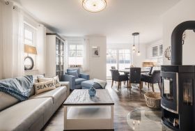 Die drei gemütlichen Schlafzimmer bieten ausreichend Platz für bis zu sechs Personen. In den zwei gemütlichen Boxspringbetten und zwei Einzelbetten ist eine erholsame Nachtruhe garantiert. Der lichtdurchflutete Wohnbereich lädt zum gemeinsamen Beisammensein ein, am Kamin können Sie entspannt ein Buch lesen. In der voll ausgestatteten und modern eingerichteten Küche werden Hobbyköche glücklich und können leckere Mahlzeiten zaubern.