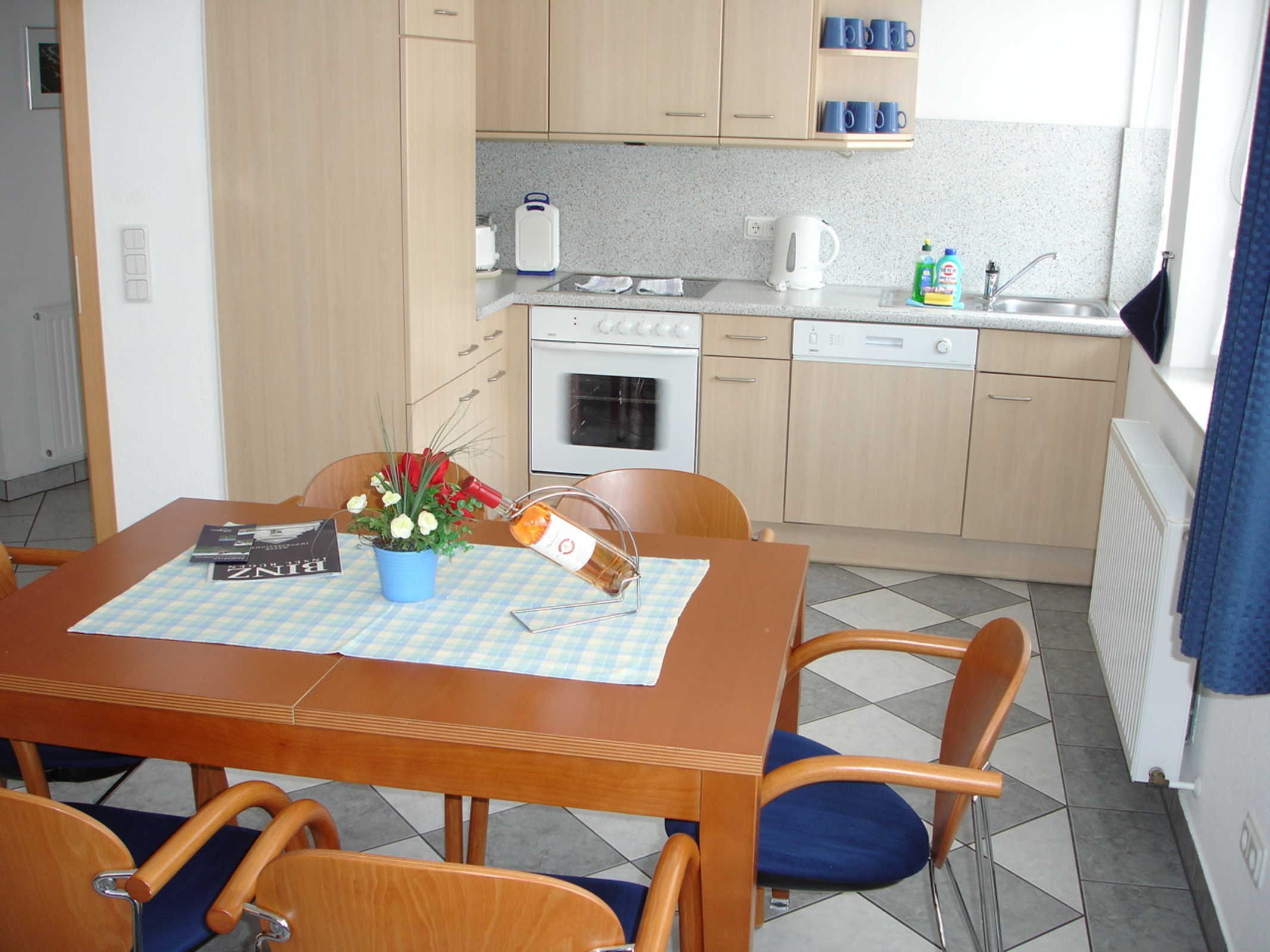 Appartement 5 (ca. 105 qm, max. 6 Personen) 3 separate Schlafzimmer (1 Balkon klein Südseite), Wohnzimmer mit Wohnküche und Essbereich, 2 Bäder (Dusche & Badewanne), Balkon groß (Südwestseite) mit Sitzgruppe, Abstellraum, Waschmaschine, Fön, W-LAN