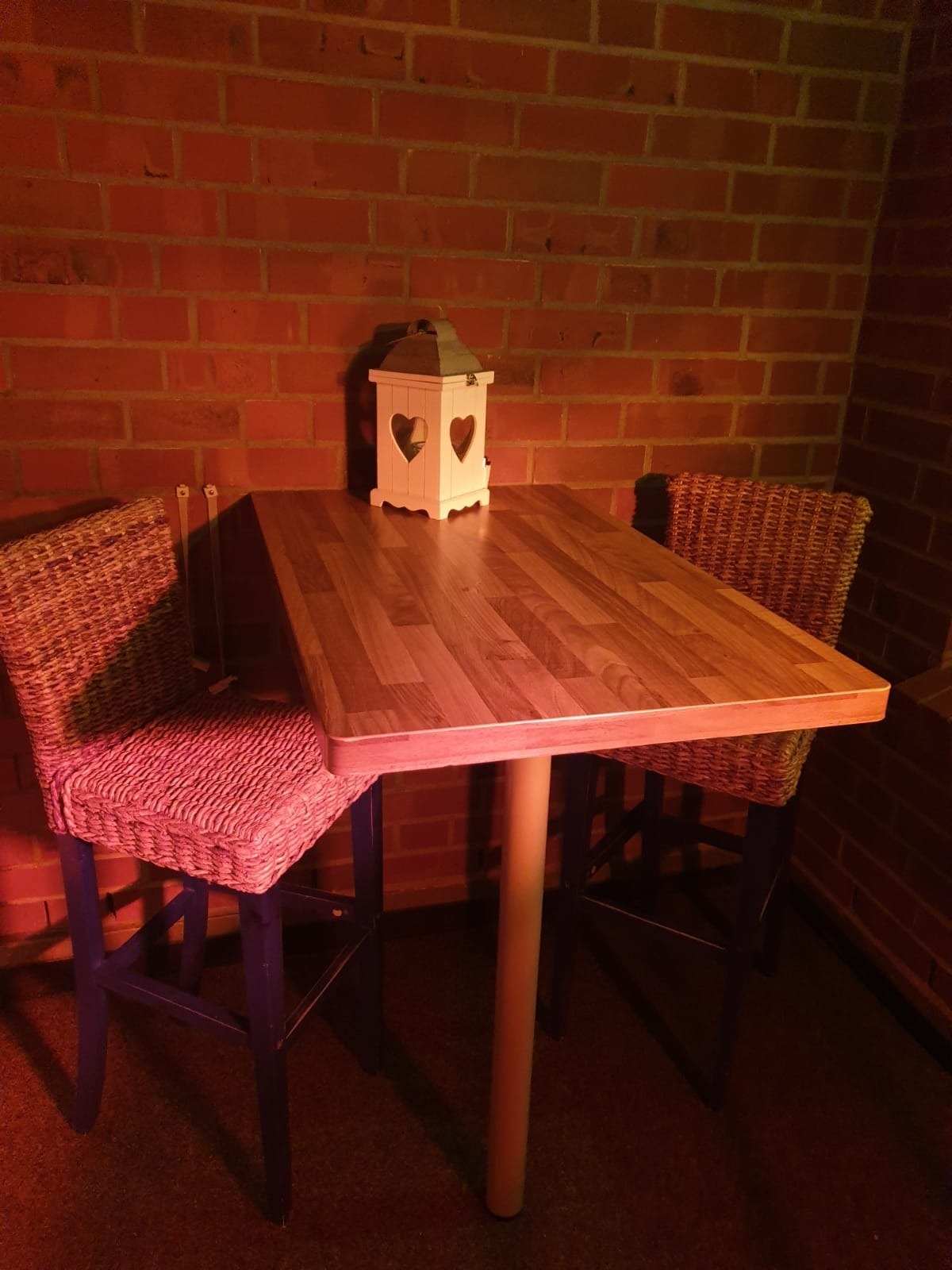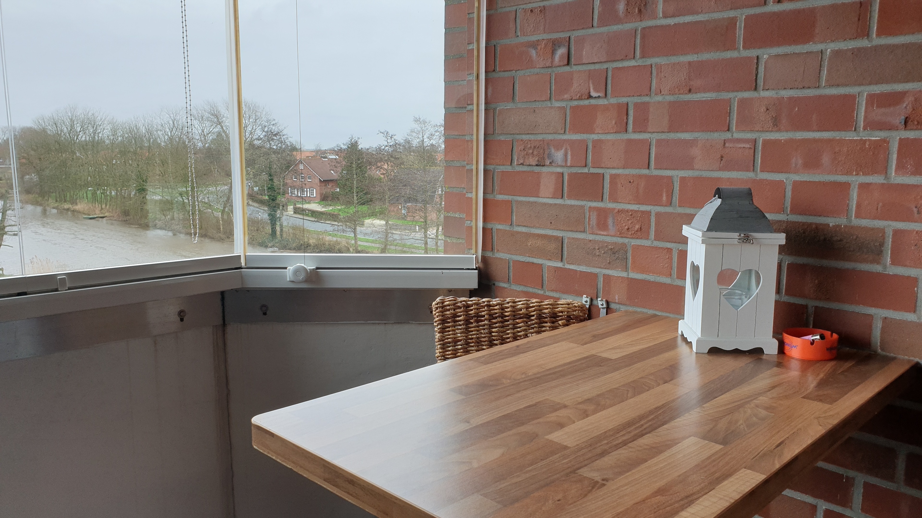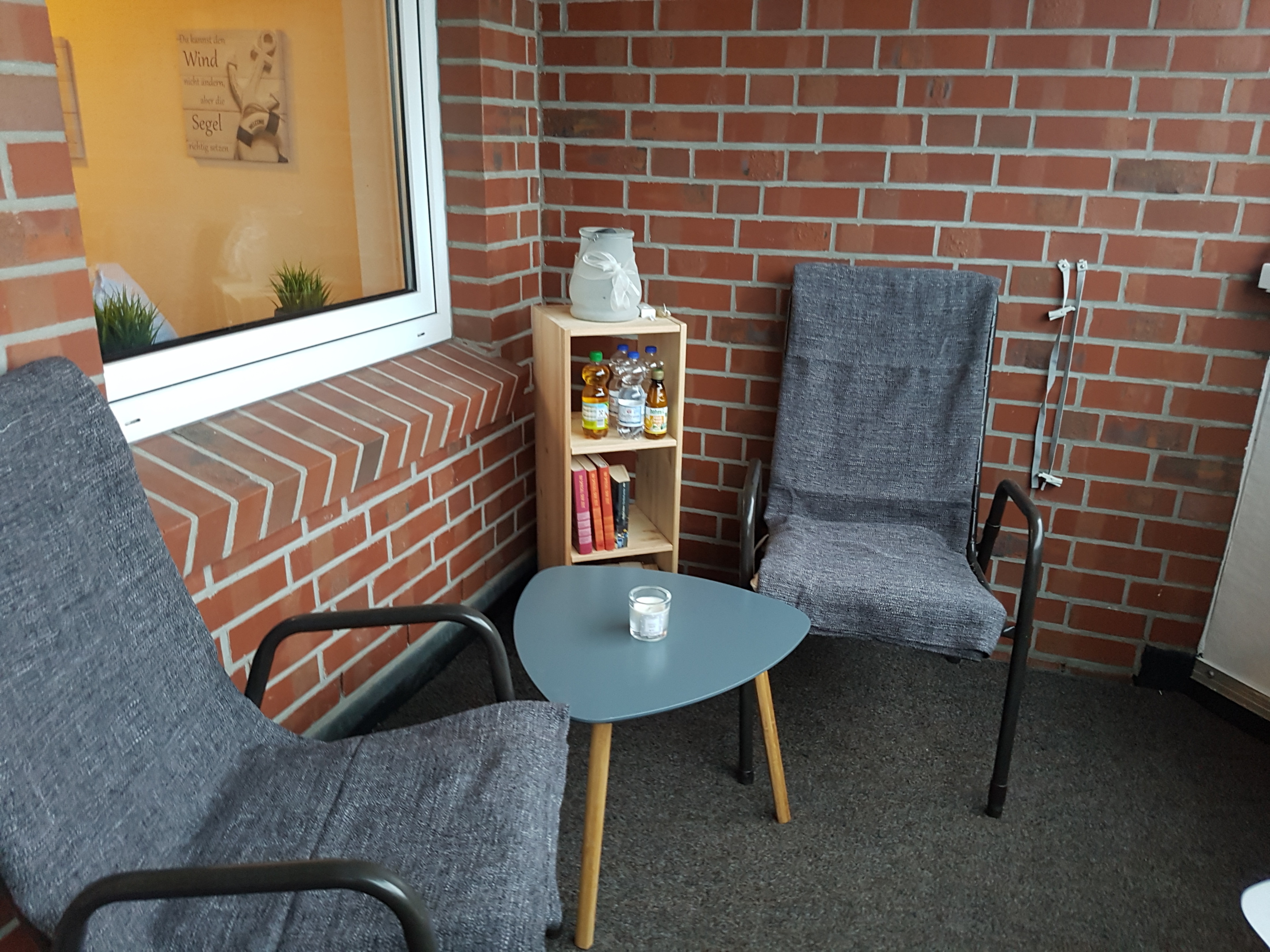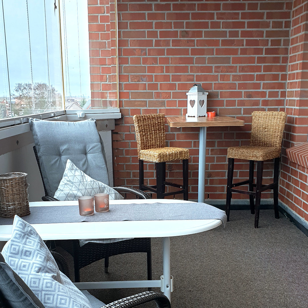 Mit verglasten Balkon ,so das man im Herbst auch draussen sitzen kann und der Heizstrahler ein mollig wärmt.