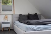Im Obergeschoss befinden sich zwei gemütliche Schlafzimmer, die Platz für bis zu vier Personen bieten. Ein kleines Badezimmer mit Toilette ist über den zentralen Flur erreichbar und rundet die Ausstattung des oberen Bereichs ab.