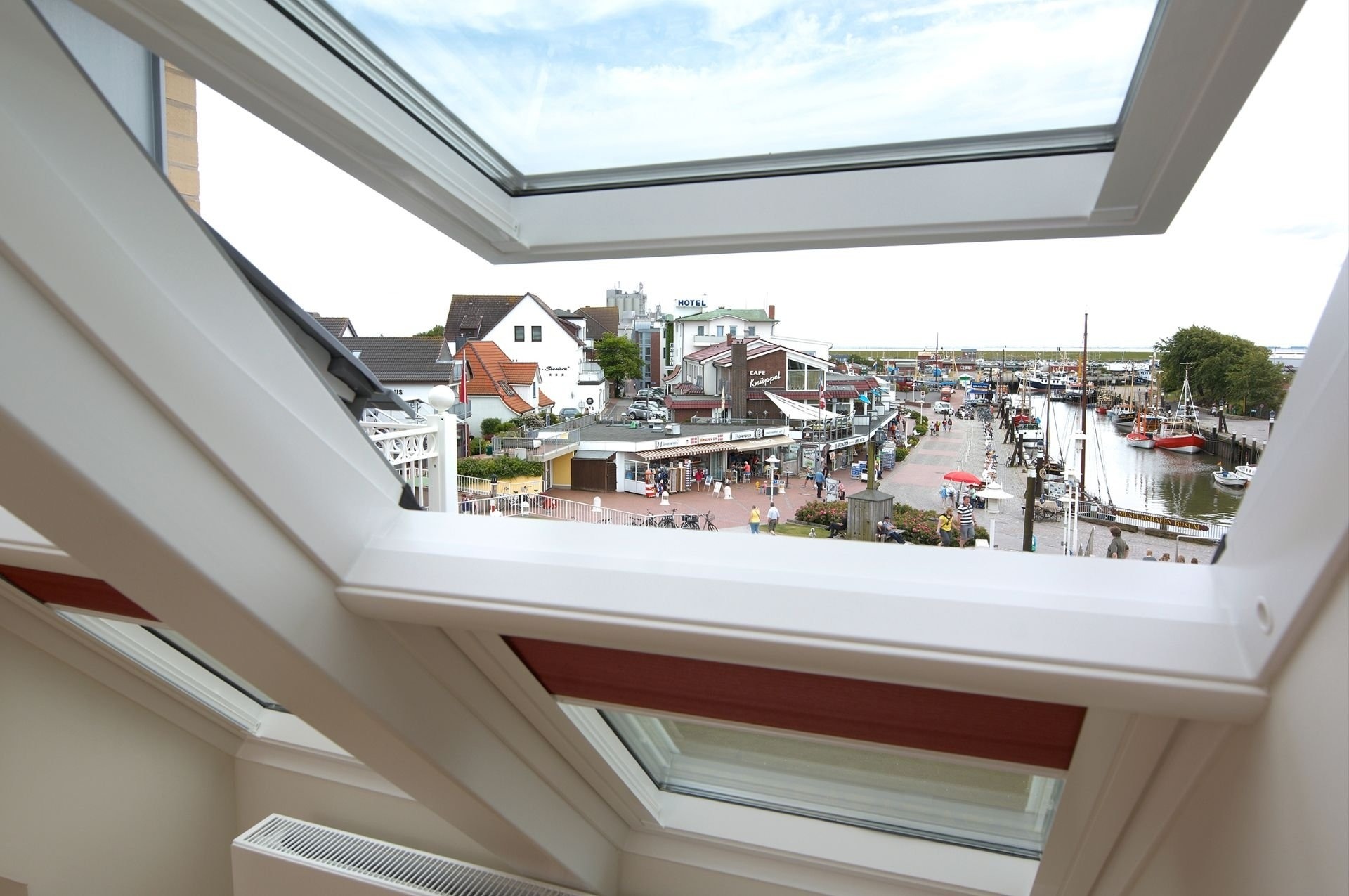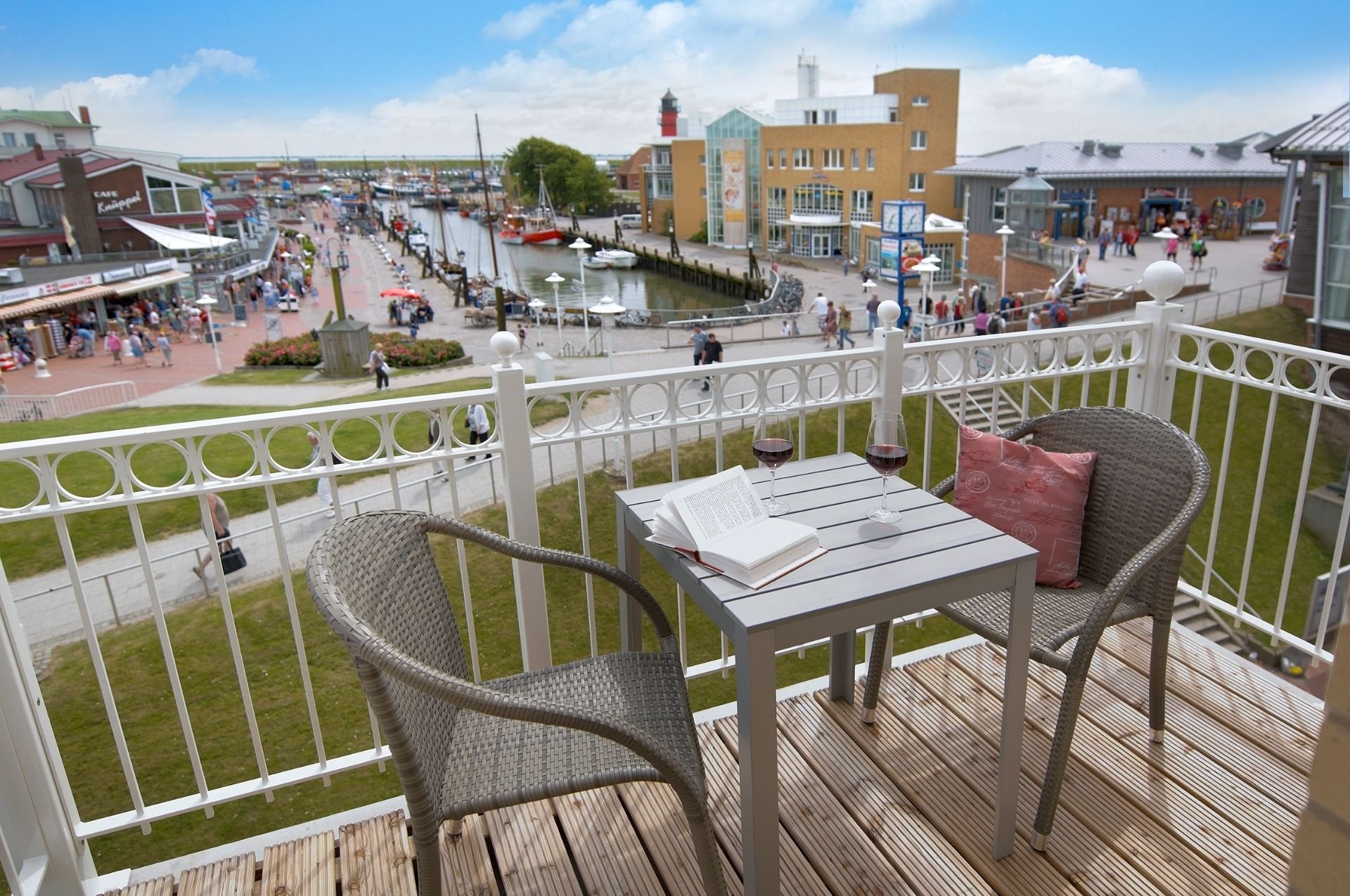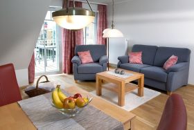 Die im dritten Stock liegende Ferienwohnung ist für zwei Personen ideal. Durch große Fenster in Südausrichtung bieten wir Ihnen lichtdurchflutete Räume mit einem herrlichen Blick auf den Museumshafen. Holzfußböden im kombinierten Wohn- und Esszimmer und im Schlafzimmer sowie eine hochwertige Schallisolierung sorgen für eine angenehme und erholsame Atmosphäre. Besonderen Komfort bieten wir mit einer hochwertigen Ausstattung und stufenfreien Zugängen, insbesondere mittels Aufzug und Walk-In-Dusche im Bad. Auf dem mit einer Markise ausgestatteten möblierten Balkon können Sie bei schönem Wetter bis zum frühen Abend die Sonne genießen und das bunte Treiben um den Museumshafen beobachten. Sie werden sich zu jeder Jahreszeit und bei jedem Wetter bei uns wohl fühlen.