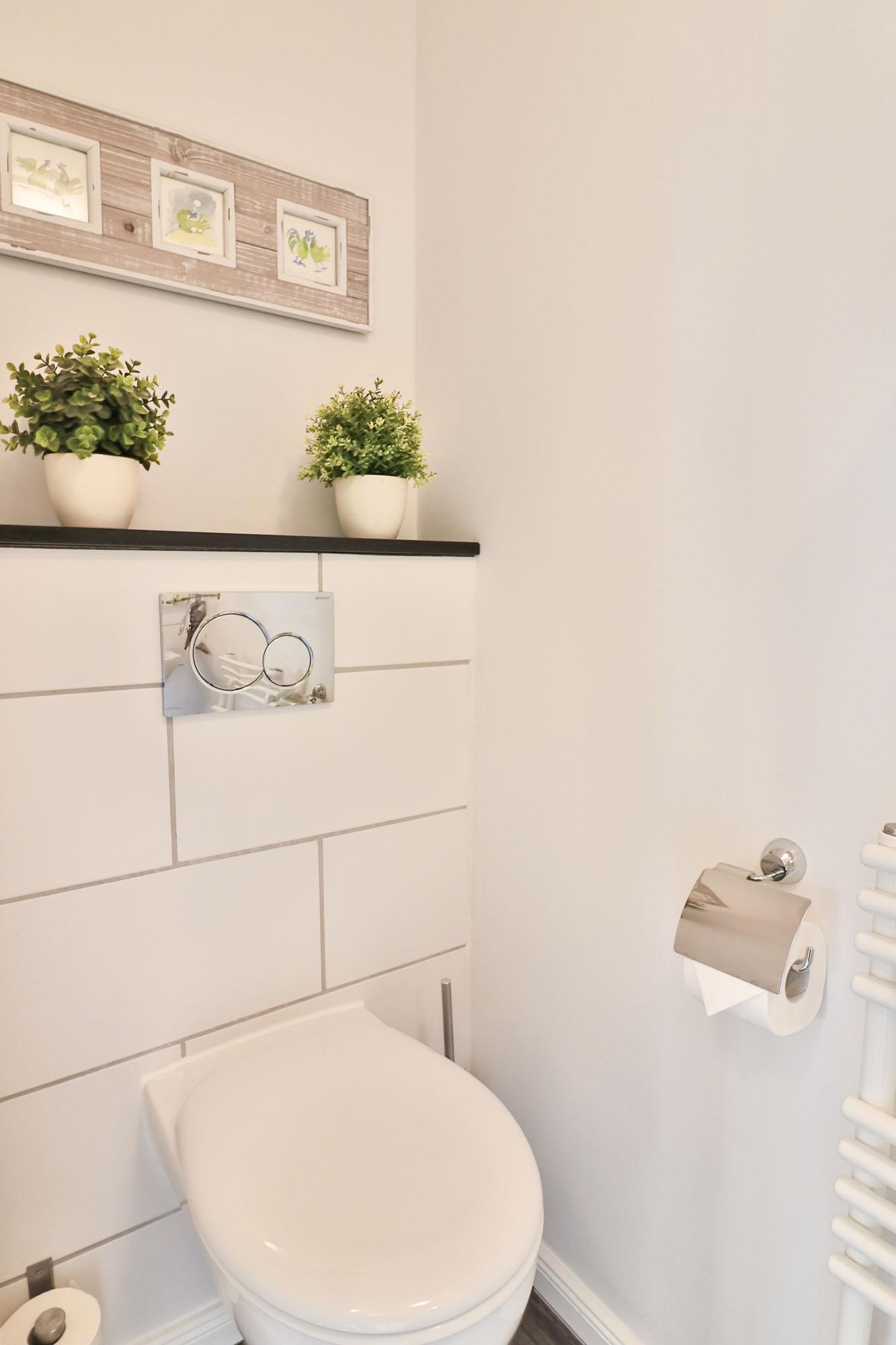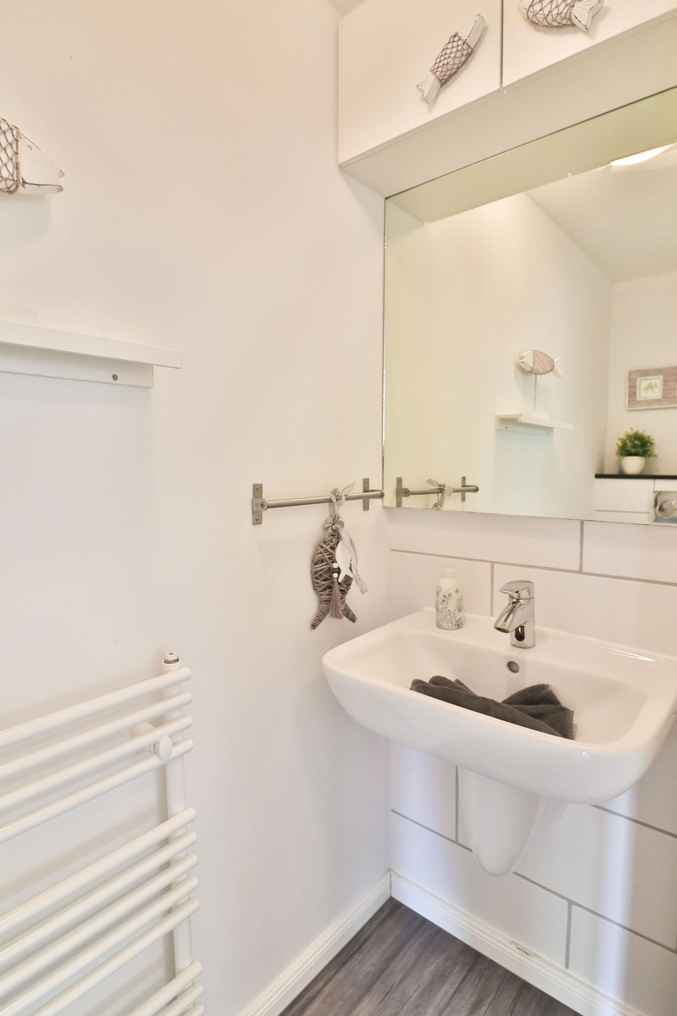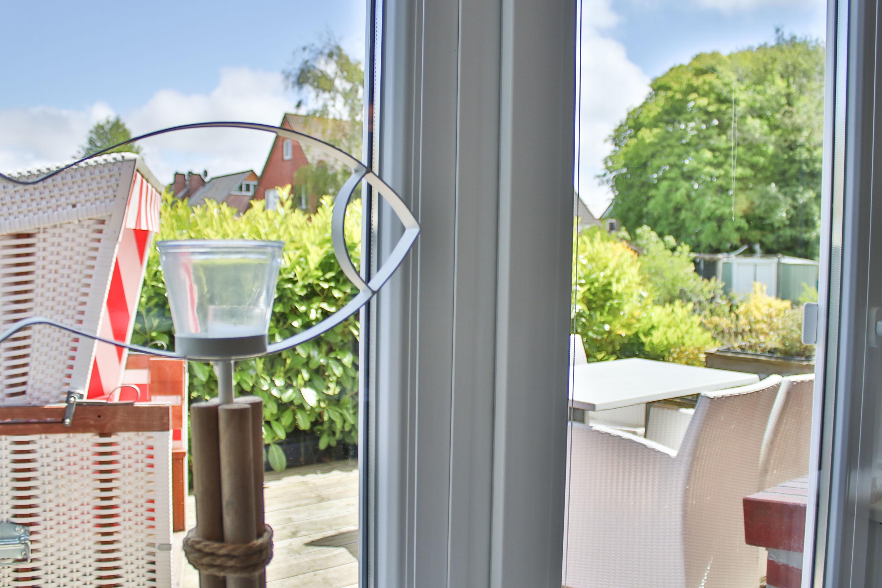 Das Ferienhaus verfügt über einen Wohnbereich, einen Essbereich mit Küche und großzügiger Außenterrasse und Strandkorb, sowie über ein separates Gäste-WC im Erdgeschoss.