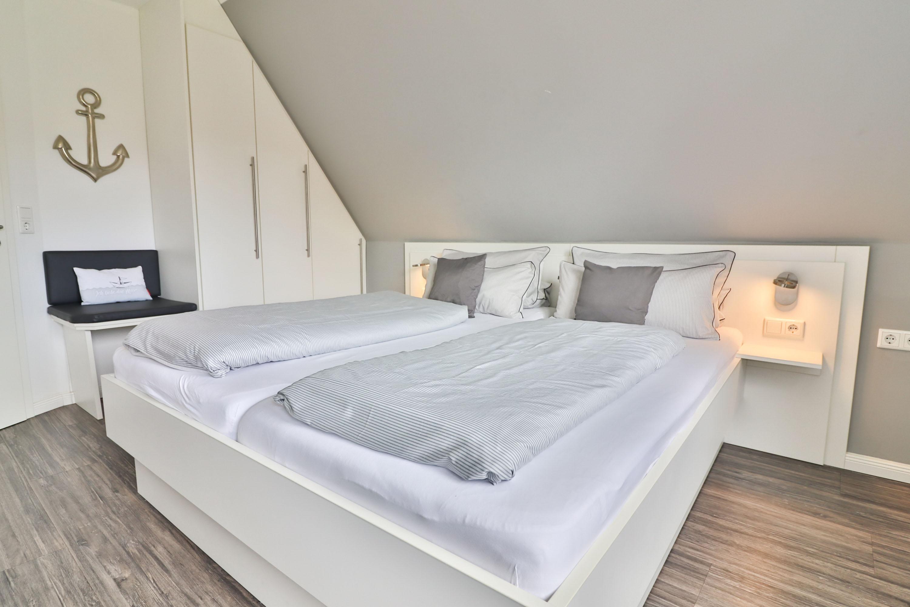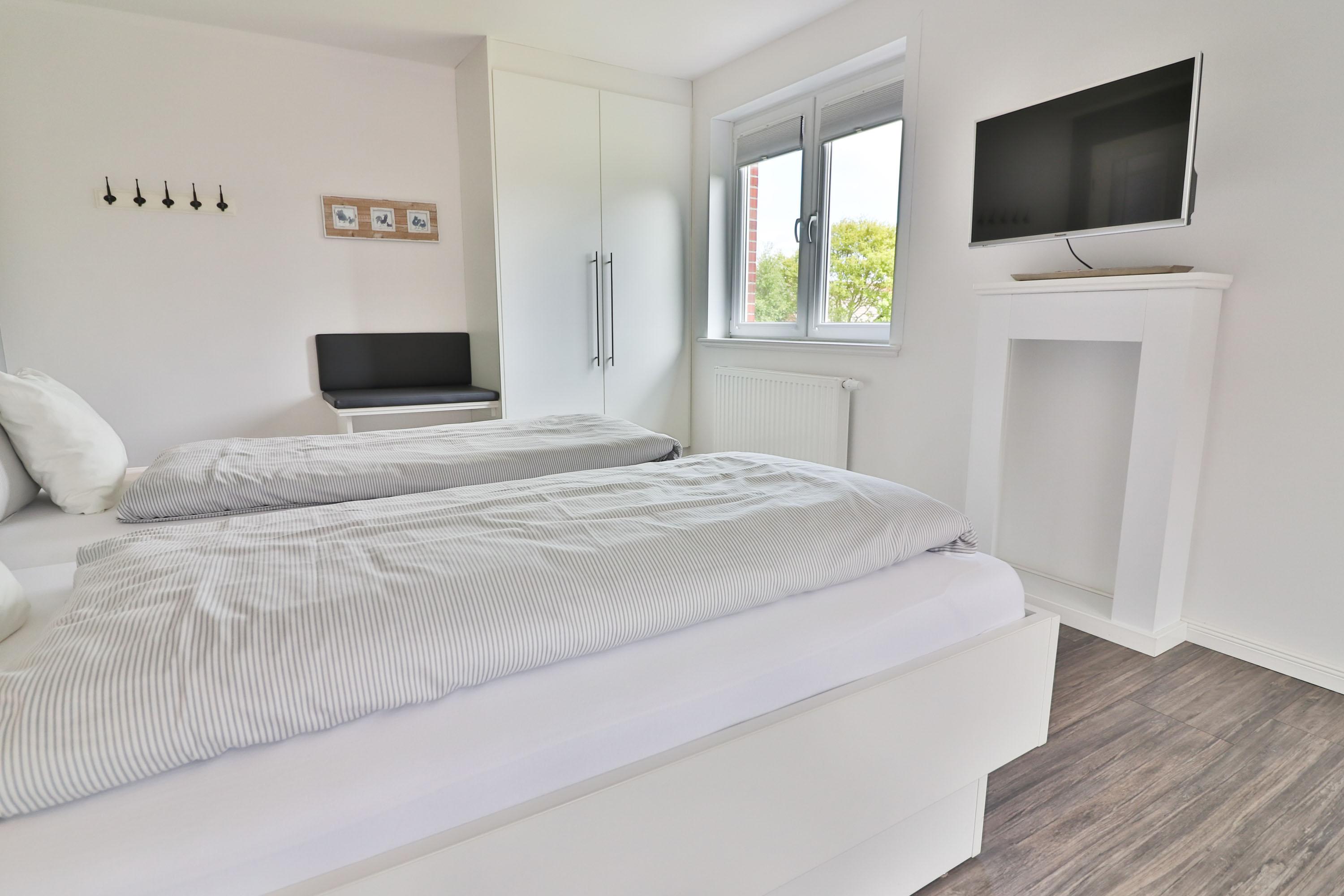 Im Obergeschoss befinden sich zwei Schlafzimmer, welche jeweils mit TV ausgestattet sind.
