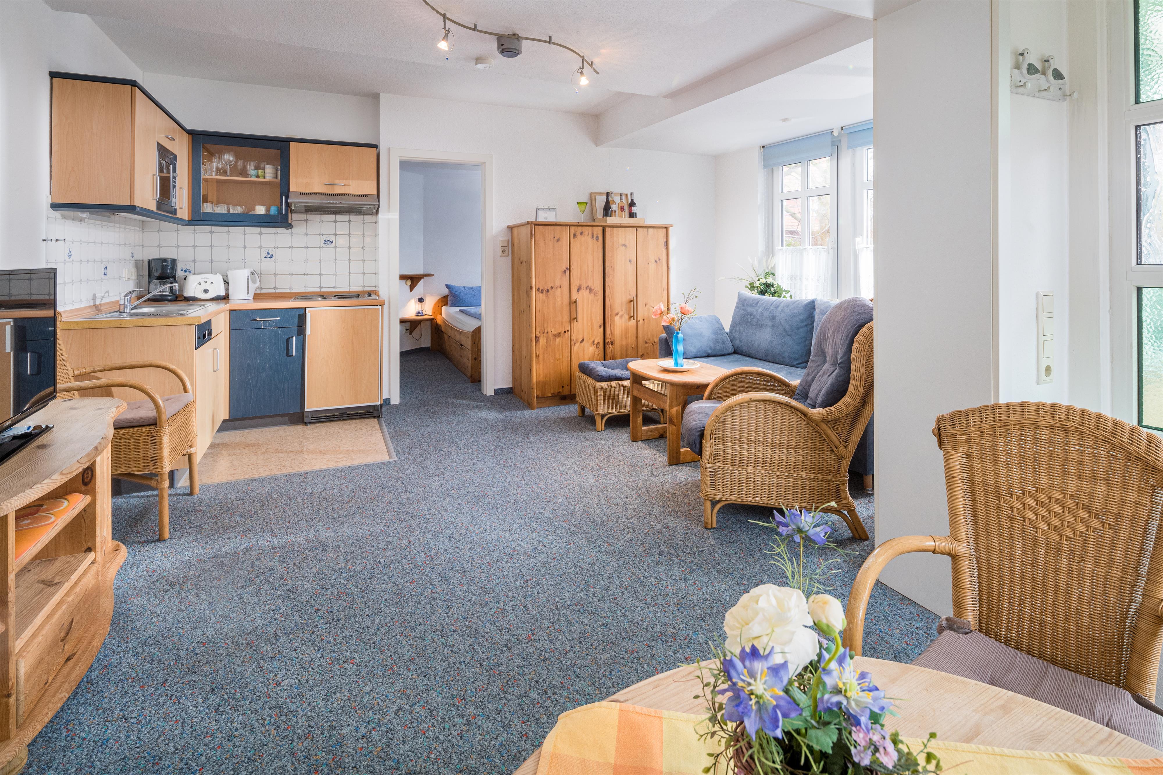 Us Freedom Wohnung 1 Wohnungsbeschreibung: Wohnungsgröße: 32 m² Diese Wohnung ist 32 m² groß und ideal für einen Urlaub zu zweit. Ein gemütlich gestalteter offener Wohn-/Essbereich mit Blick in den Garten sorgt für viel Atmosphäre. Die Küchenzeile ist klein, aber modern. Mikrowelle ist vorhanden. Im Schlafzimmer befindet sich ein großes Doppelbett, das innenliegende Bad ist freundlich, hell und modern ausgestattet. Kinderbett auf Anfrage und auch nur im Wohnbereich möglich. Personenzahl: 2 Schlafzimmer: 1 Kinderbetten: 0 Wohnungsausstattung: · Waschmaschine / Trockner · Spülmaschine · Telefon · Terrasse