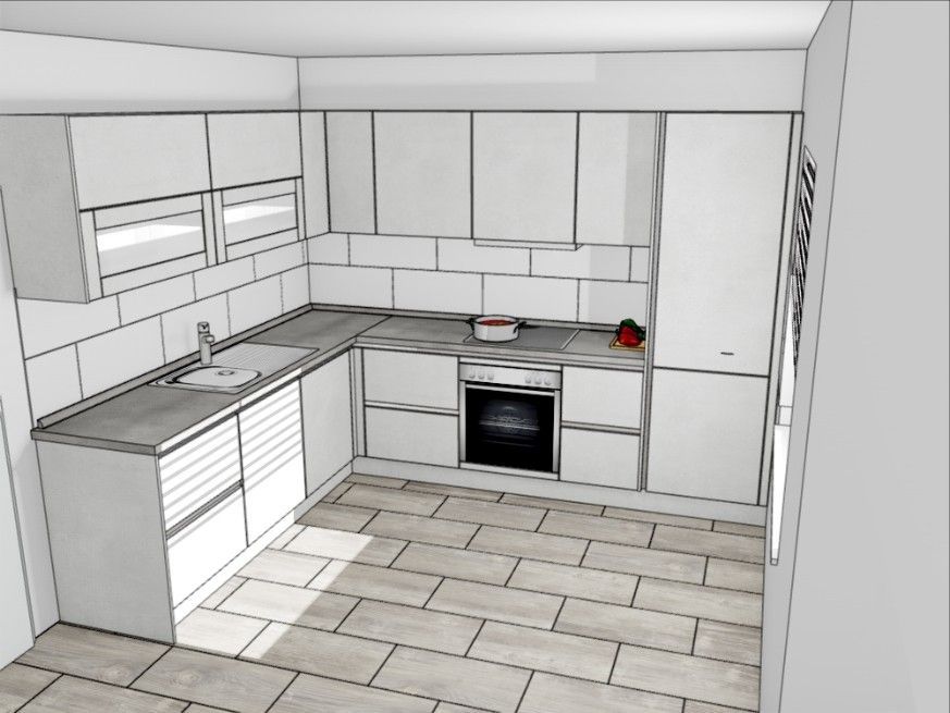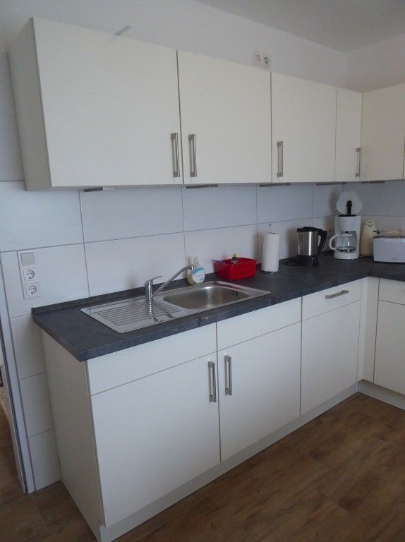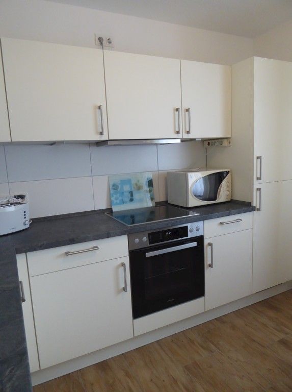 Küche mit CERAN-Elektroherd, Backofen und Mikrowelle