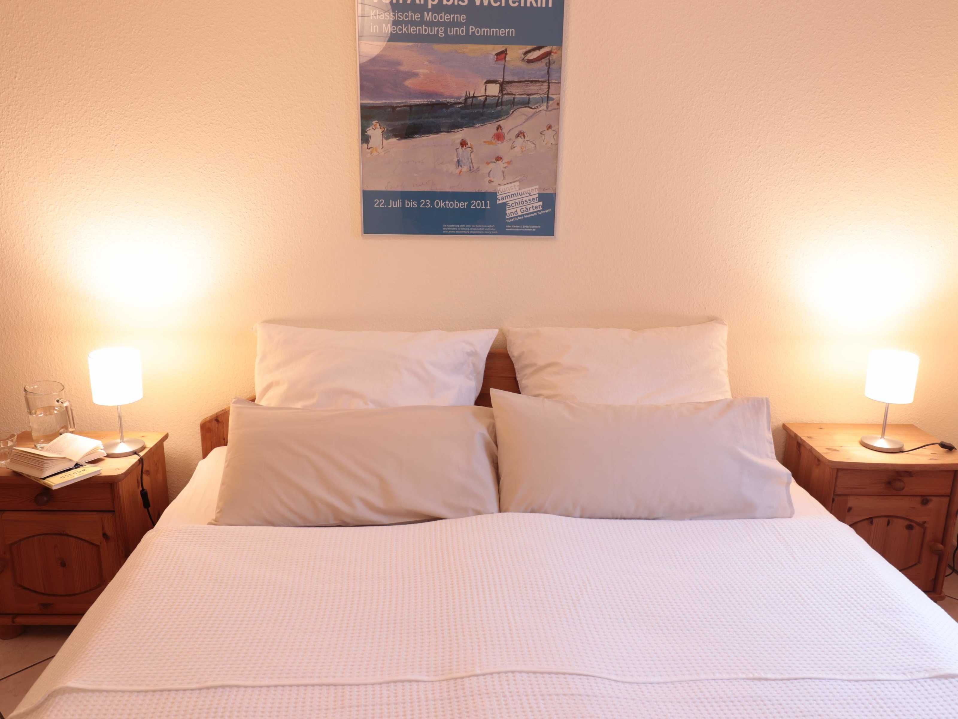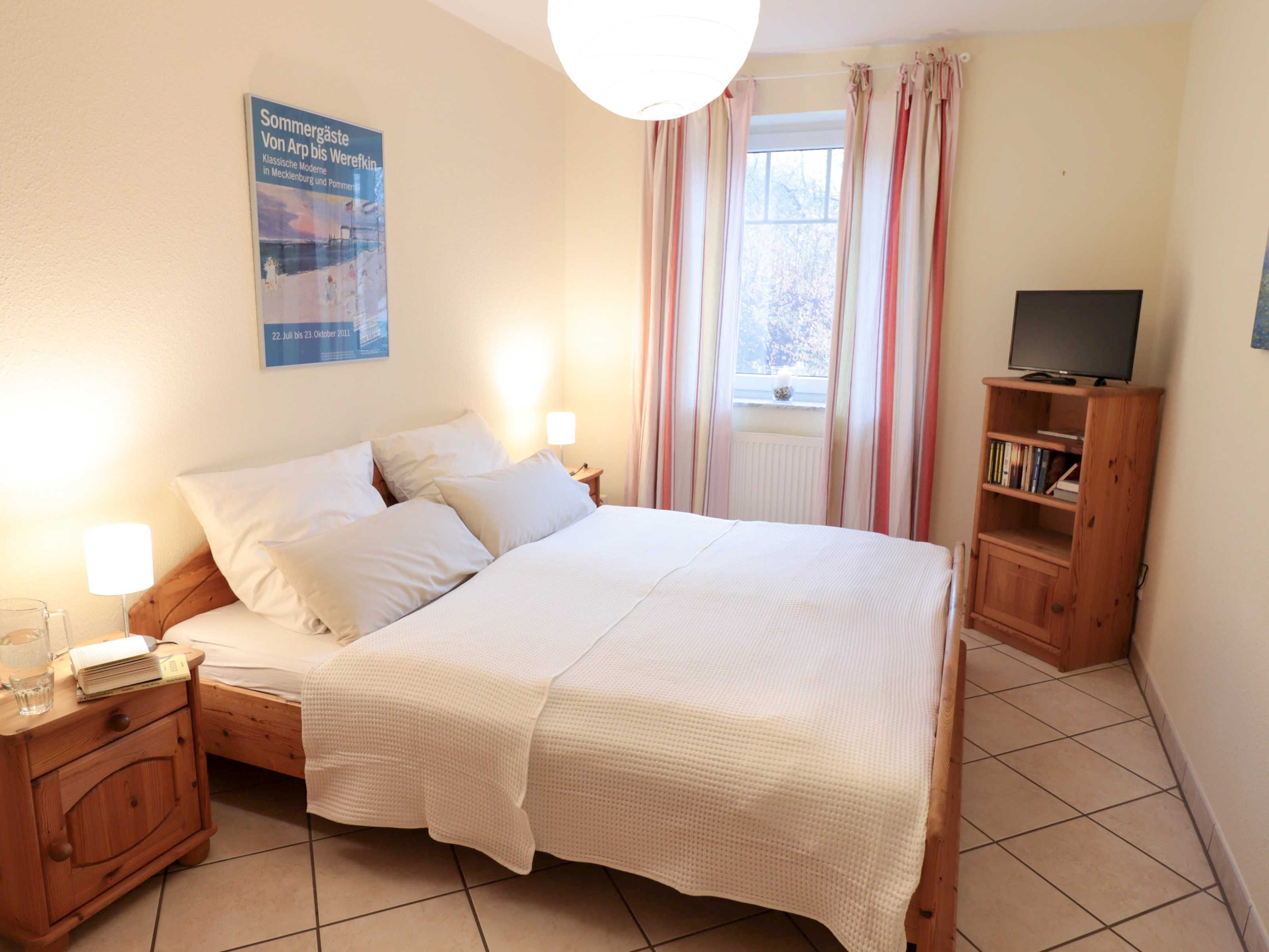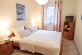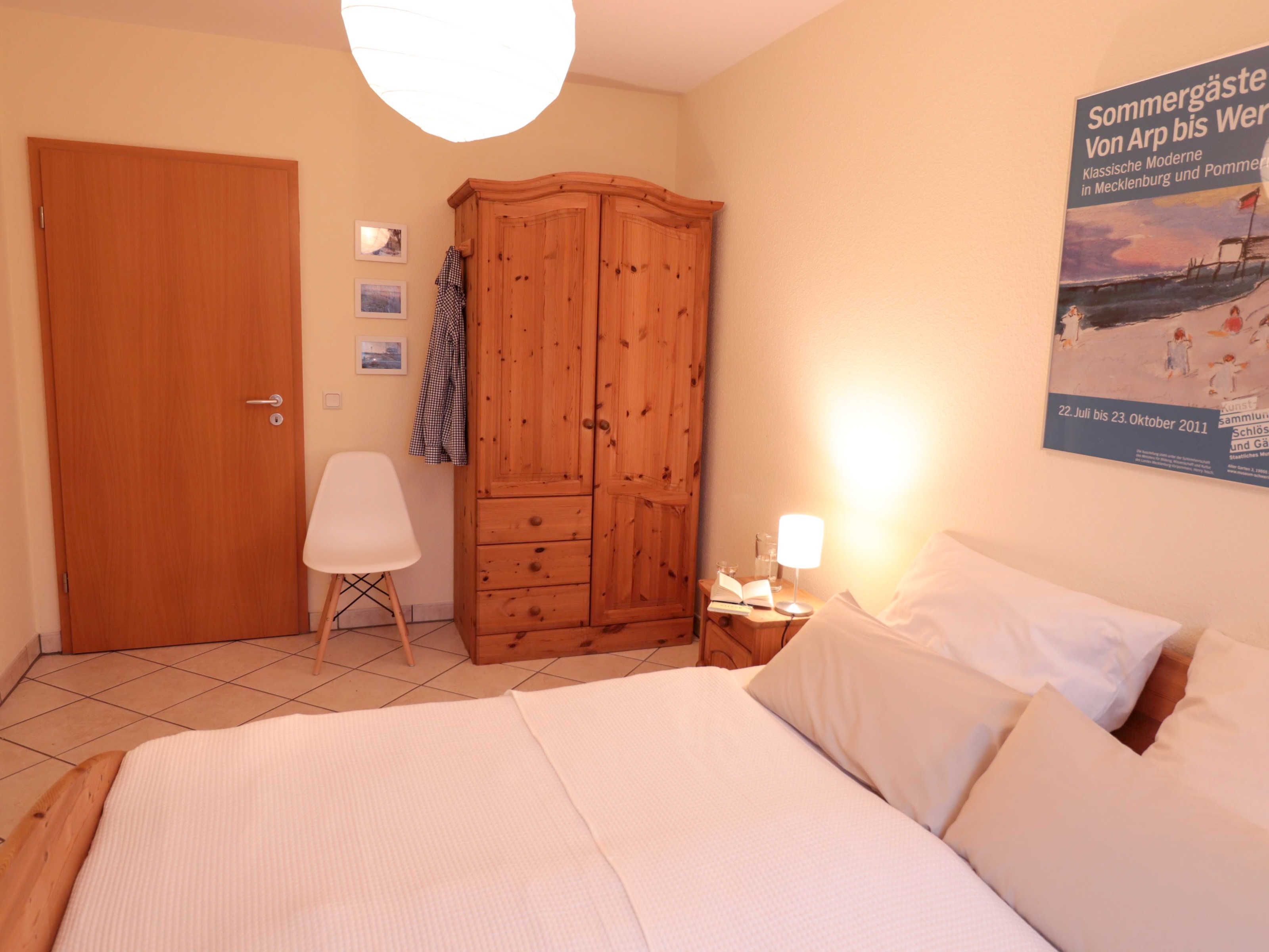 Alle  Räume sowie das Badzimmer und Abstellkammer sind über einen zentralen Flur zu erreichen. Das 1. Schlafzimmer ist mit einem Doppelbett (180 x 200) mit getrennten Matratzen, sowie Kleiderschrank und Fernseher ausgestattet.