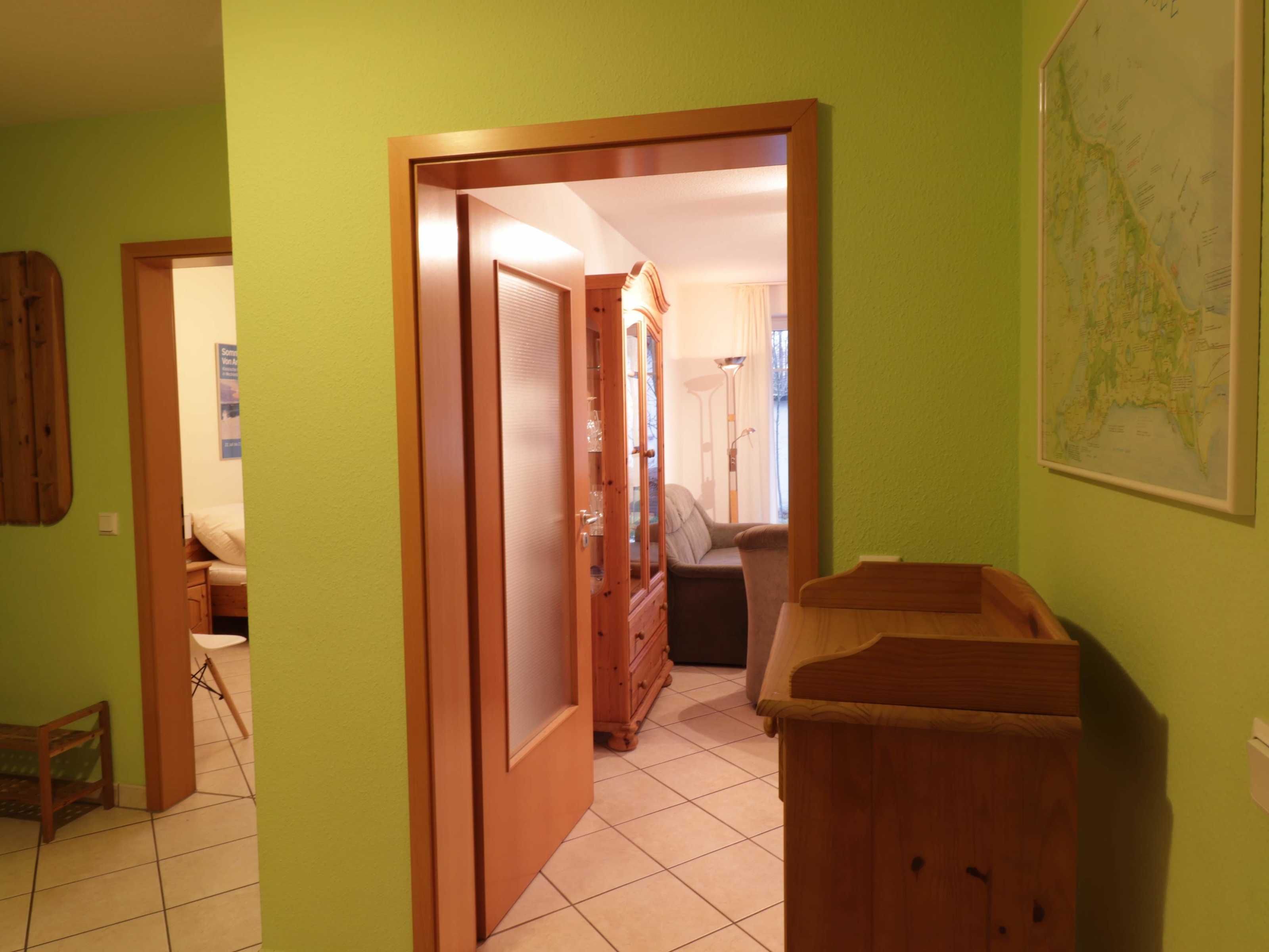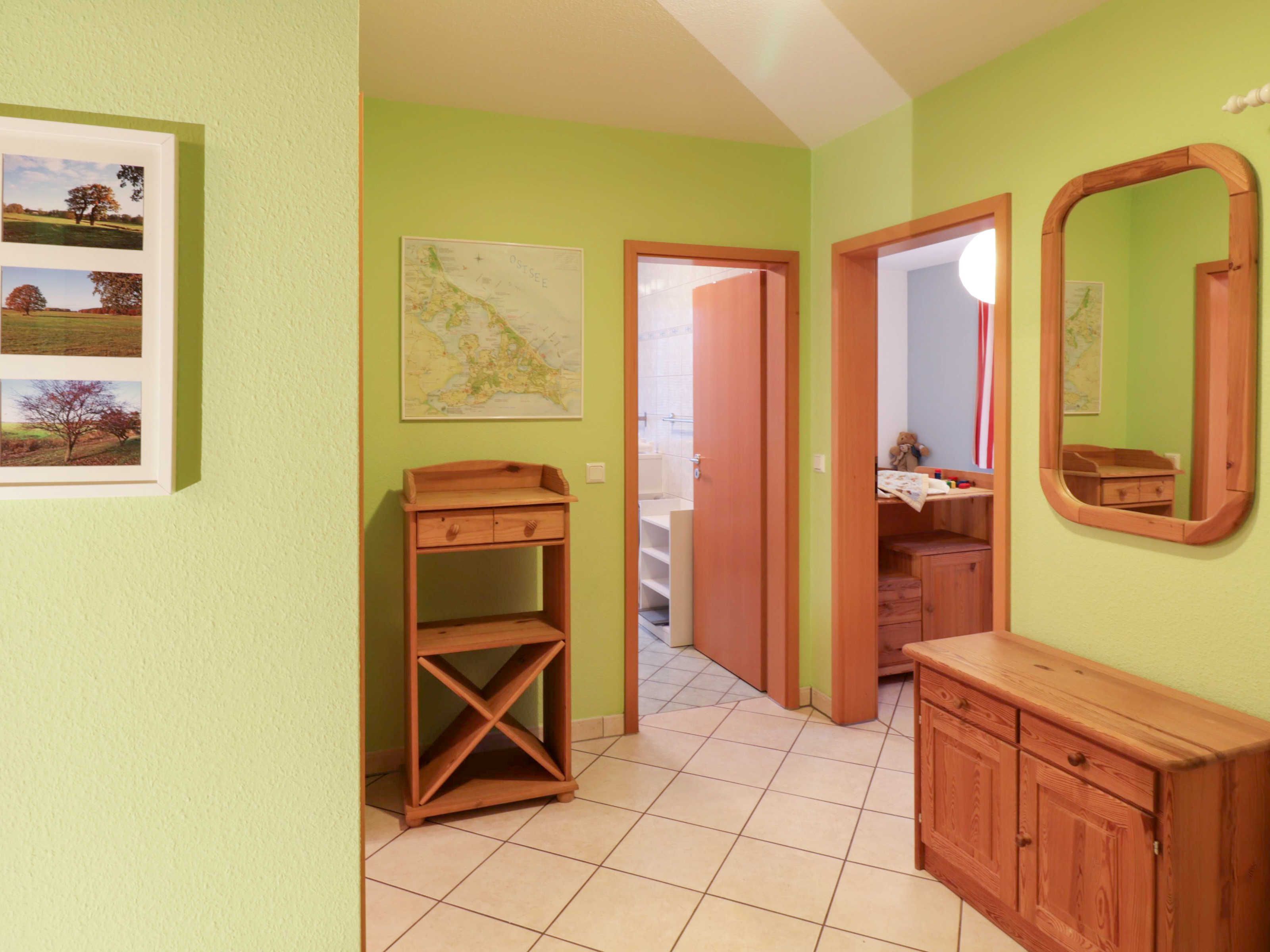 Im Flur, in den Sie von der Eingangstür gelangen, befinden sich Ablagemöglichkeiten für Schlüssel und andere