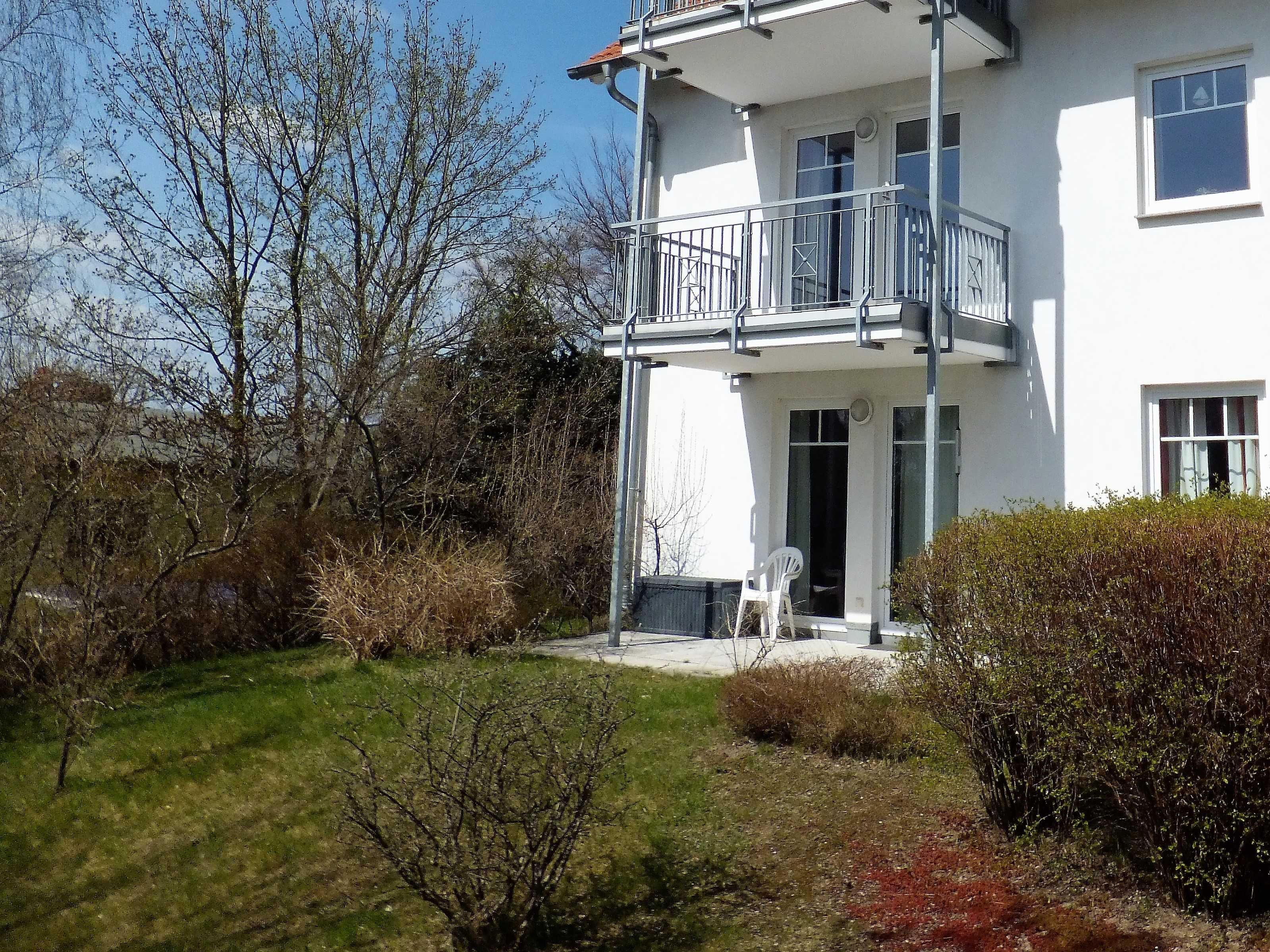 Die große Terrasse mit Südausrichtung und den angrenzenden Garten erreichen Sie über das Wohnzimmer.  Dort stehen Ihnen Gartenstühle nebst passendem Esstisch zur Verfügung.