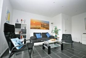 Die modern eingerichtete Erdgeschosswohnung hat einen PKW-Stellplatz direkt vor dem Eingang und verfügt über einen eingezäunten Garten, wo Sie Ihre Fahrräder sicher abstellen können.