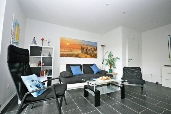 Der Wohn-/Essbereich bietet neben einem gemütlichen Sofa, Sessel und Couchtisch auch einen bequemen Fernsehsessel für gesellige Stunden. Selbstverständlich steht Ihnen neben kostenlosem WLAN auch ein Flachbildschirm (SAT-Empfang), ein DVD-Player mit einigen DVDs und etlichen Musik-CDs zur Verfügung. Neben mehreren Reiseführern über Ostfriesland finden Sie hier auch Leseliteratur sowie etliche Spiele für groß und klein. In einer umfangreichen Infomappe sind Ausflugsmöglichkeiten in Ostfriesland sowie aktuelle Infos über Norden/Norddeich bereitgestellt.