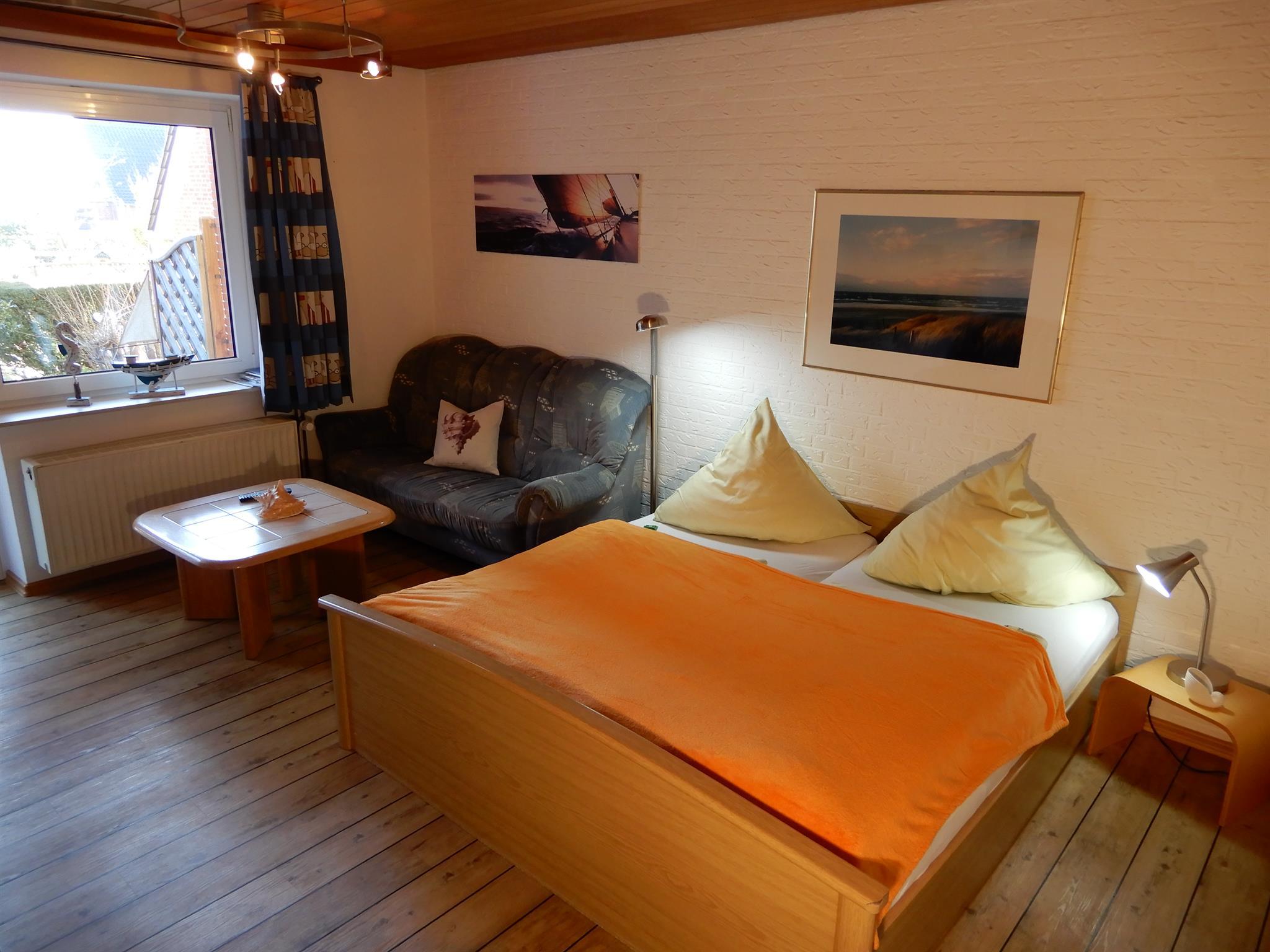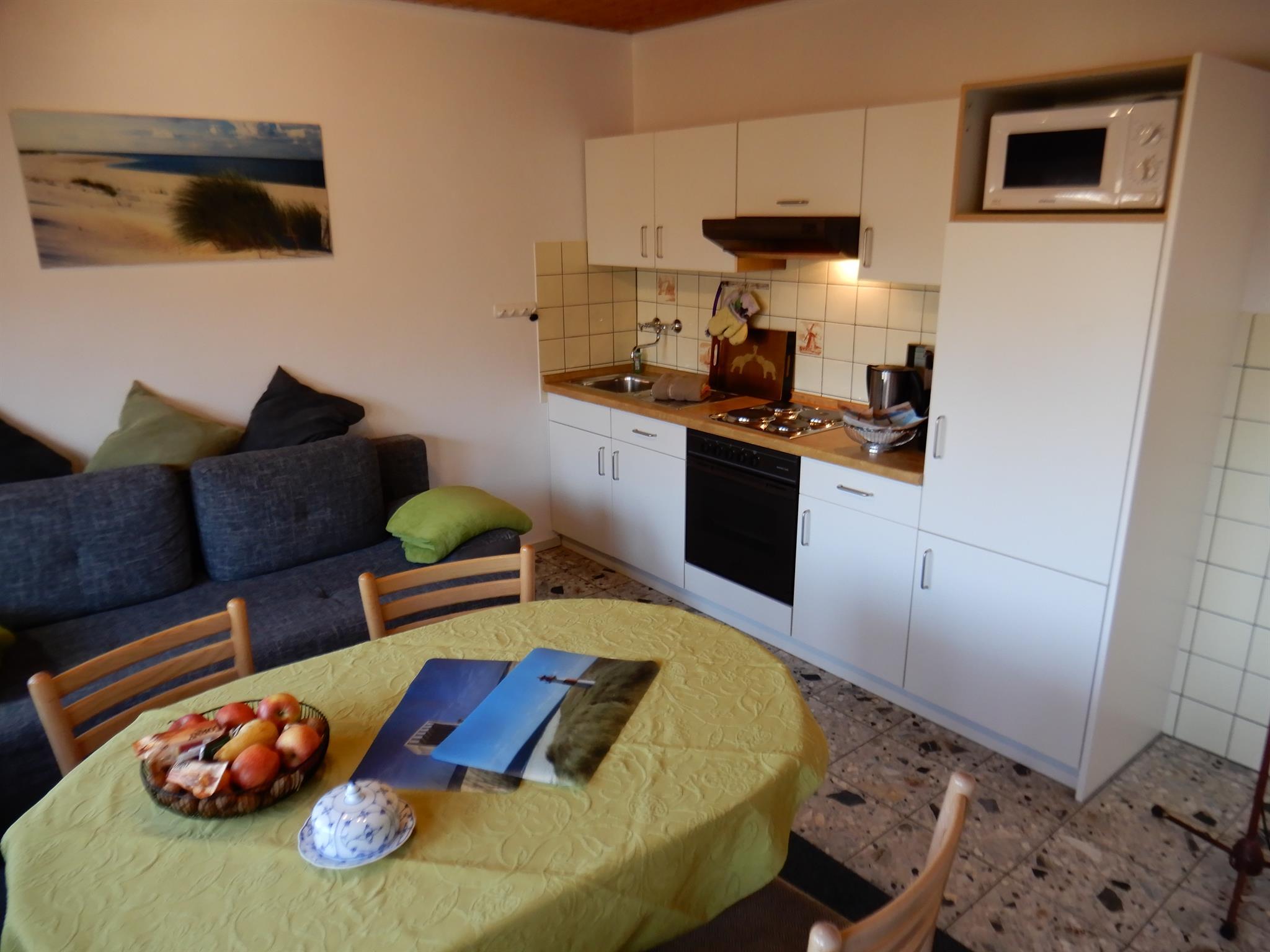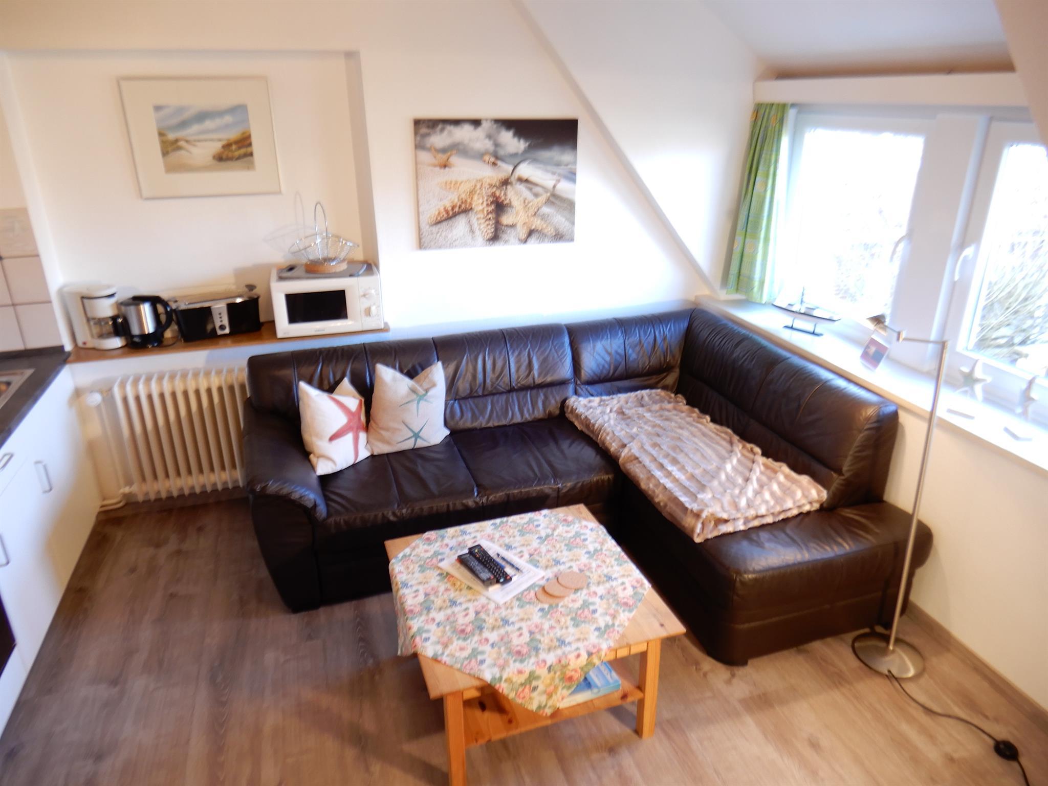 Oberwohnung Meister Lampe (Hasenpad 5) 40 qm, sep. Schlafzimmer mit Ehebett, Wohn-Esszimmer, sep. Dusche/WC, Südbalkon mit Strandkorb und Sitzgruppe usw.