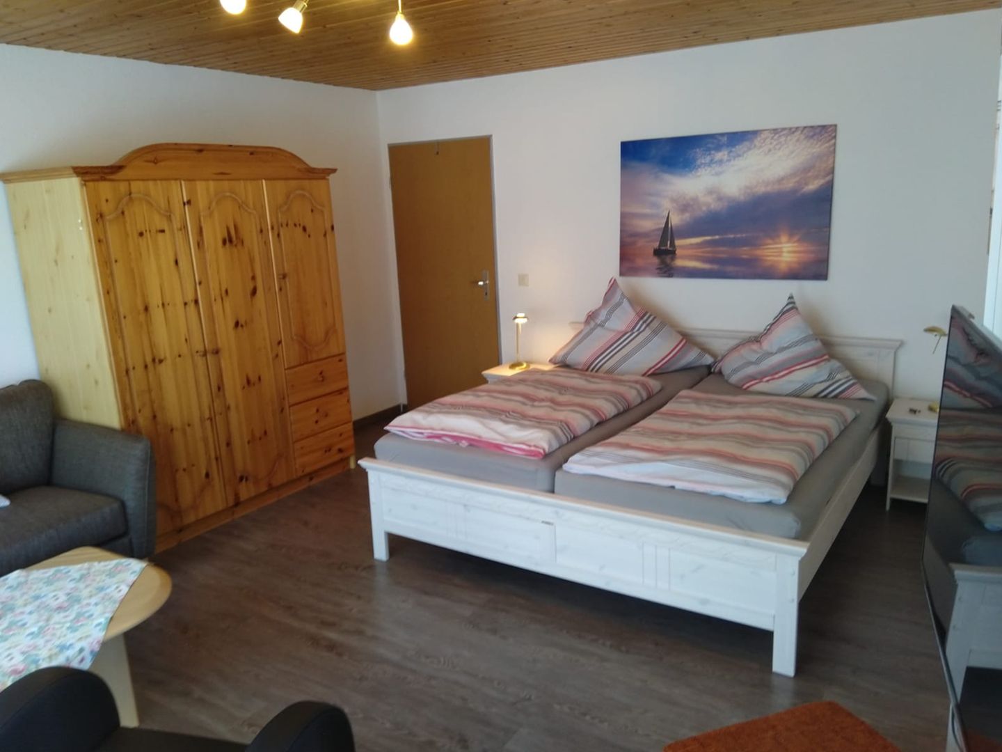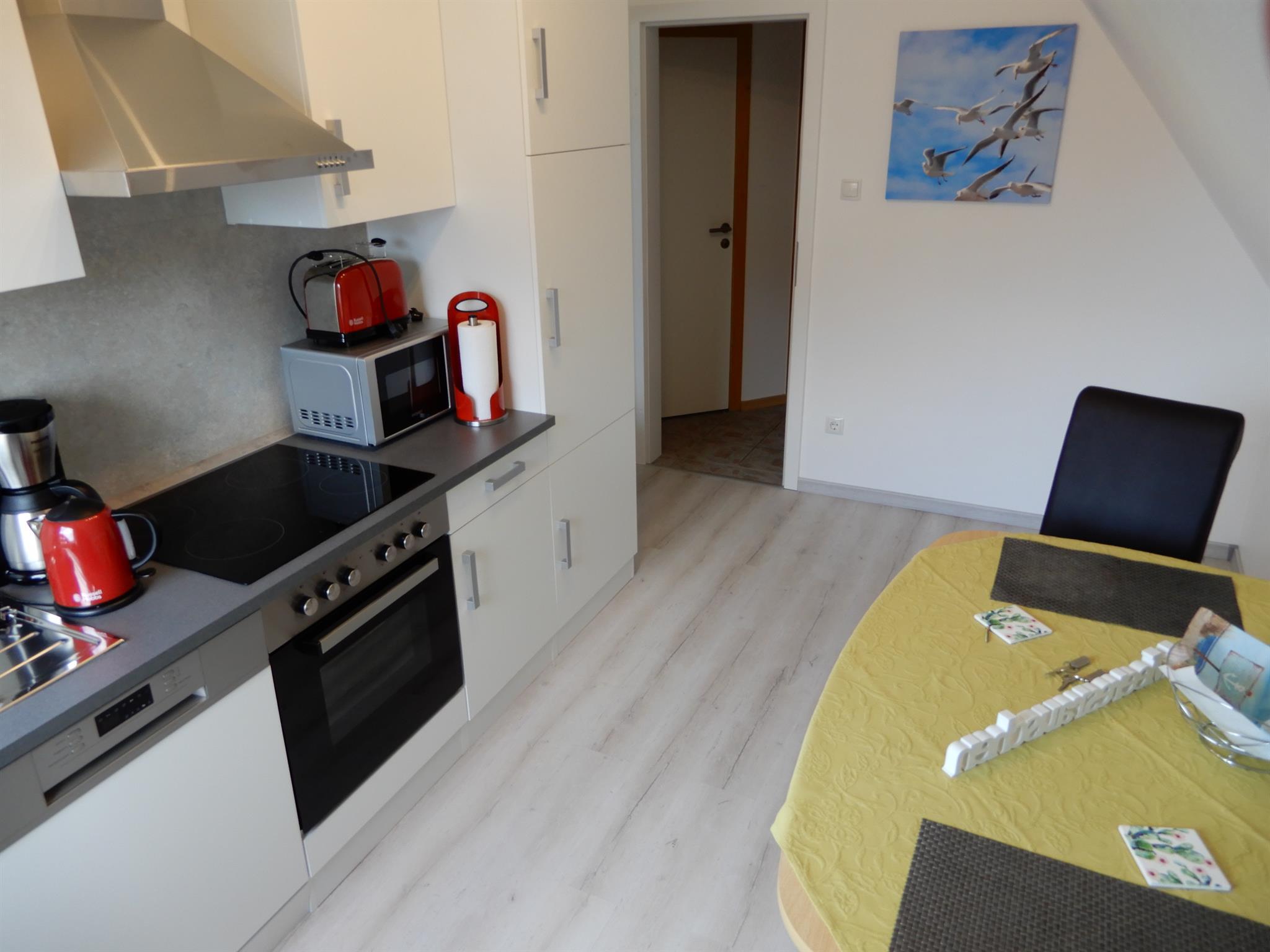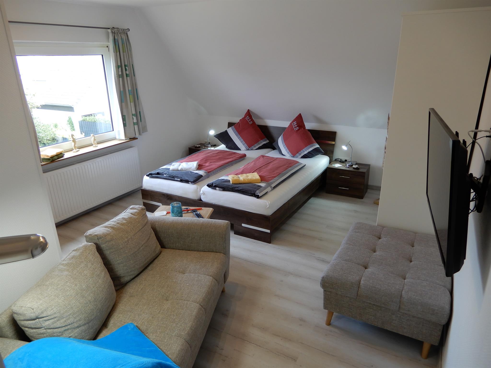 Oberwohnung Meister Lampe (Hasenpad 5) 40 qm, sep. Schlafzimmer mit Ehebett, Wohn-Esszimmer, sep. Dusche/WC, Südbalkon mit Strandkorb und Sitzgruppe usw.
