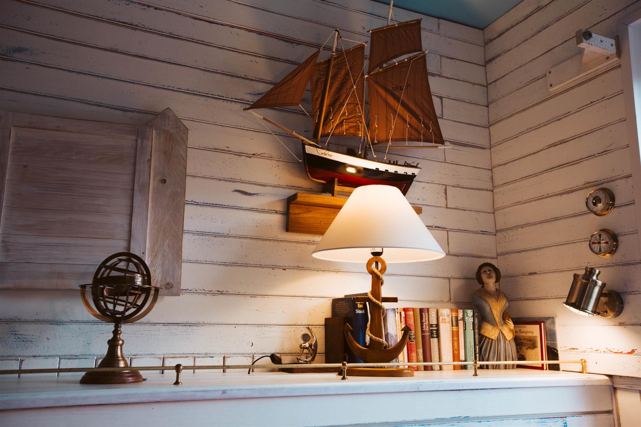 Motto: Stell dir vor, du strandest mit deinem Segelschiff am Strand und kommst nicht mehr weg dann baust dir dein Schiff zu einer gemütlichen kleinen Wohnung um - mit viel Holz, Bullaugen und allem möglichen, was man auf einem Schiff so hat - natürlich ohne den modernen Komfort zu vernachlässigen.