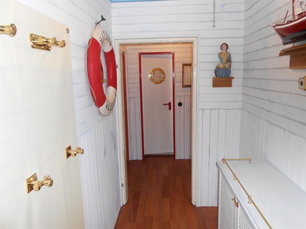Ausstattung: Schlafzimmer mit Doppelbett, reichlich Schrankplatz und Sessel mit Tisch; Flur mit reichlich Platz für Garderobe und Schuhe; Wohn/Schlafraum mit 2 Betten (à 90x200cm) die auch als Sitzbank verwendet werden können, Essplatz mit Tisch und Stühlen,freies WLan, Sat-TV, Bose CD/Radio, komplett eingerichtete Pantry / Küchenzeile, Bad mit Toilette und Dusche.