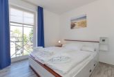 Das helle Schlafzimmer mit einem französischen Balkon verfügt über ein Doppelbett von 160 x 200 cm, einen großzügigen Schrank und ausreichend Decken und Kopfkissen für 4 Personen. Ein zweiter TV steht Ihnen hier zur Verfügung. Was kann man sich mehr wünschen, als bei sauberer und frischer Ostseeluft die Nacht zu verbringen.