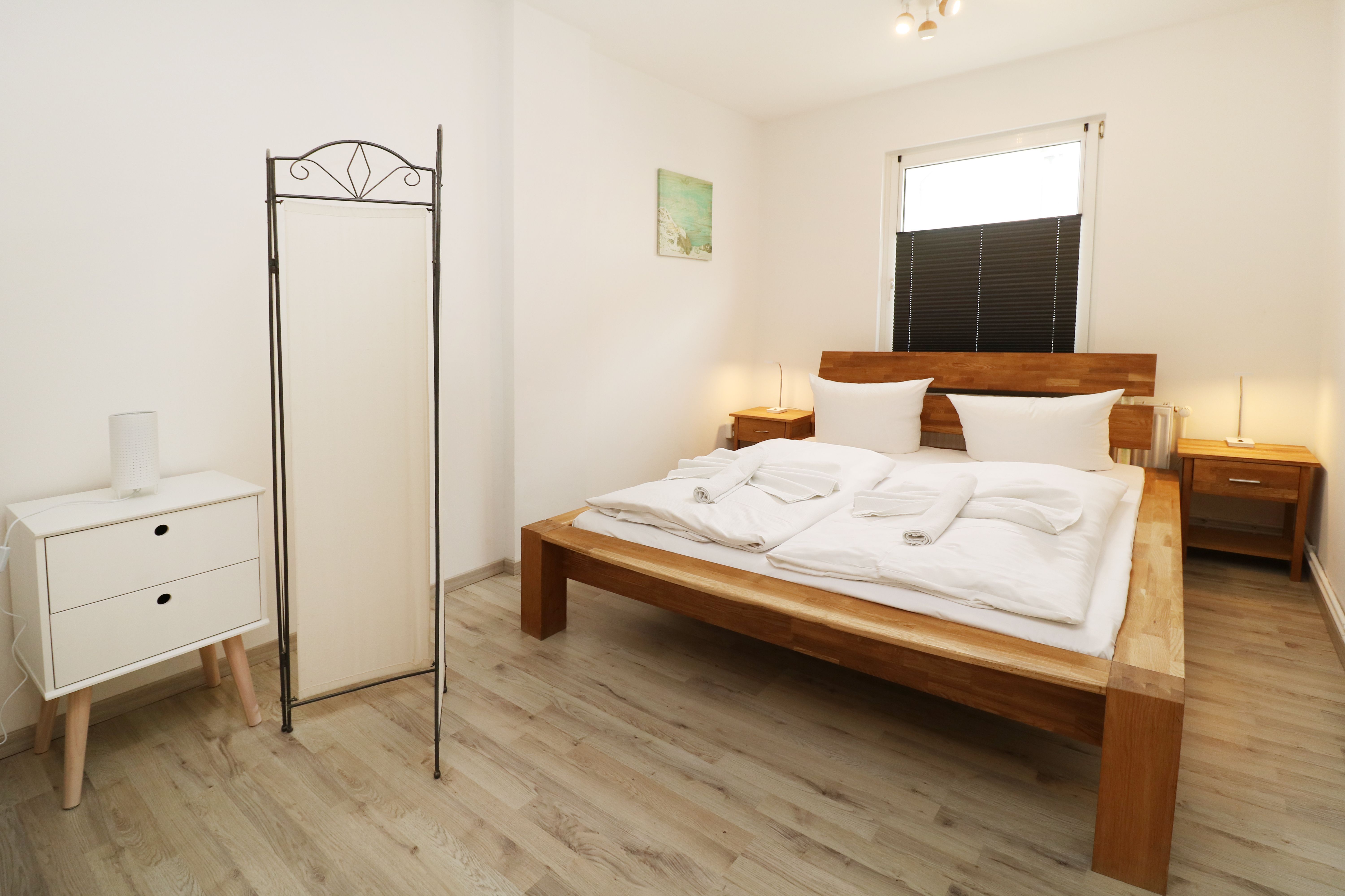 Somit besteht die 4-Zimmerwohnung aus: Wohn,- Ess-, Koch- und Schlafbereich mit WLAN, Fernseher und einer Schlafcouch als Schlafmöglichkeit. 2 Schlafzimmer mit je 1 Doppelbett. Bad mit Dusche, Wanne und WC, Parkplatz