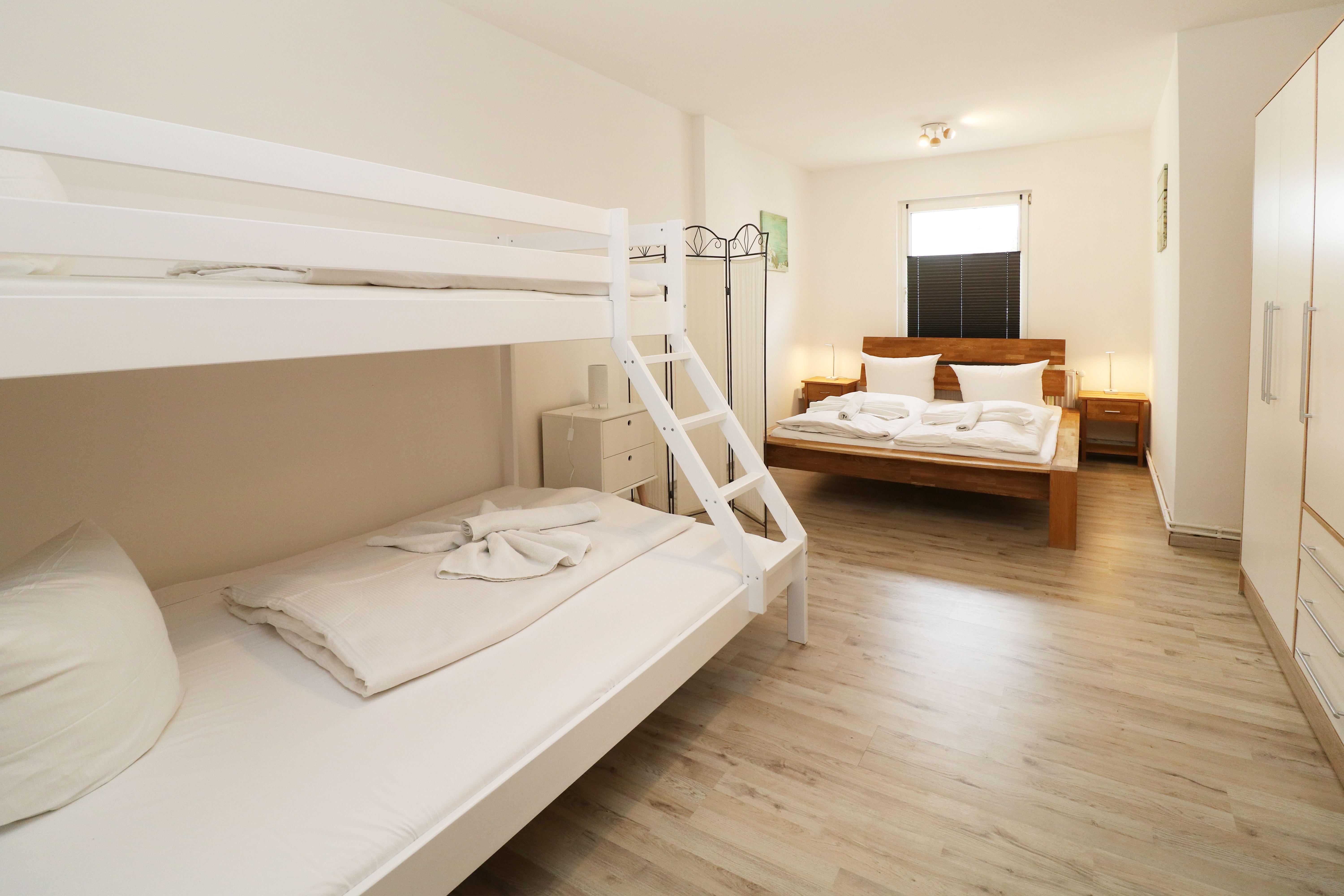 Schlafzimmer mit Doppelbett,1 Doppelstockbett, 1 Schlafcouch