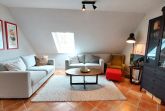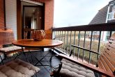 Highlight ist der möblierte und vollüberdachte Balkon mit Blick ins Grüne und zum angrenzenden Spielplatz.