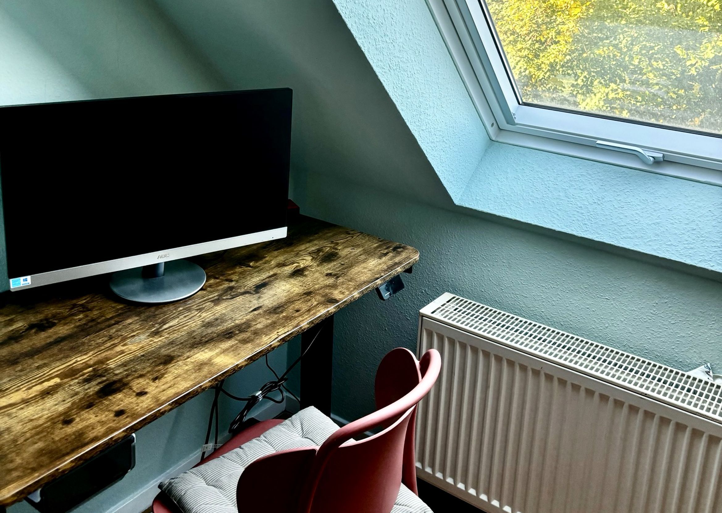Falls doch einmal Homeoffice ansteht, bietet die Wohnung neben schnellem WLAN auch einem modernen und höhenverstellbaren Schreibtisch, welcher mit Monitor (HDMI-Anschluss) und vielen Steckdosen Workation problemlos möglich.
