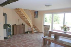 Im Erdgeschoß befindet sich das geräumige Wohnzimmer mit Kamin (Holz vorhanden), Sitzgruppe, TV und der Küchenzeile sowie das Duschbad. Im Dachgeschoß finden Sie die beiden separaten Schlafzimmer mit Doppel- bzw Einzelbetten und einen Lese- und Entspannungsflur.