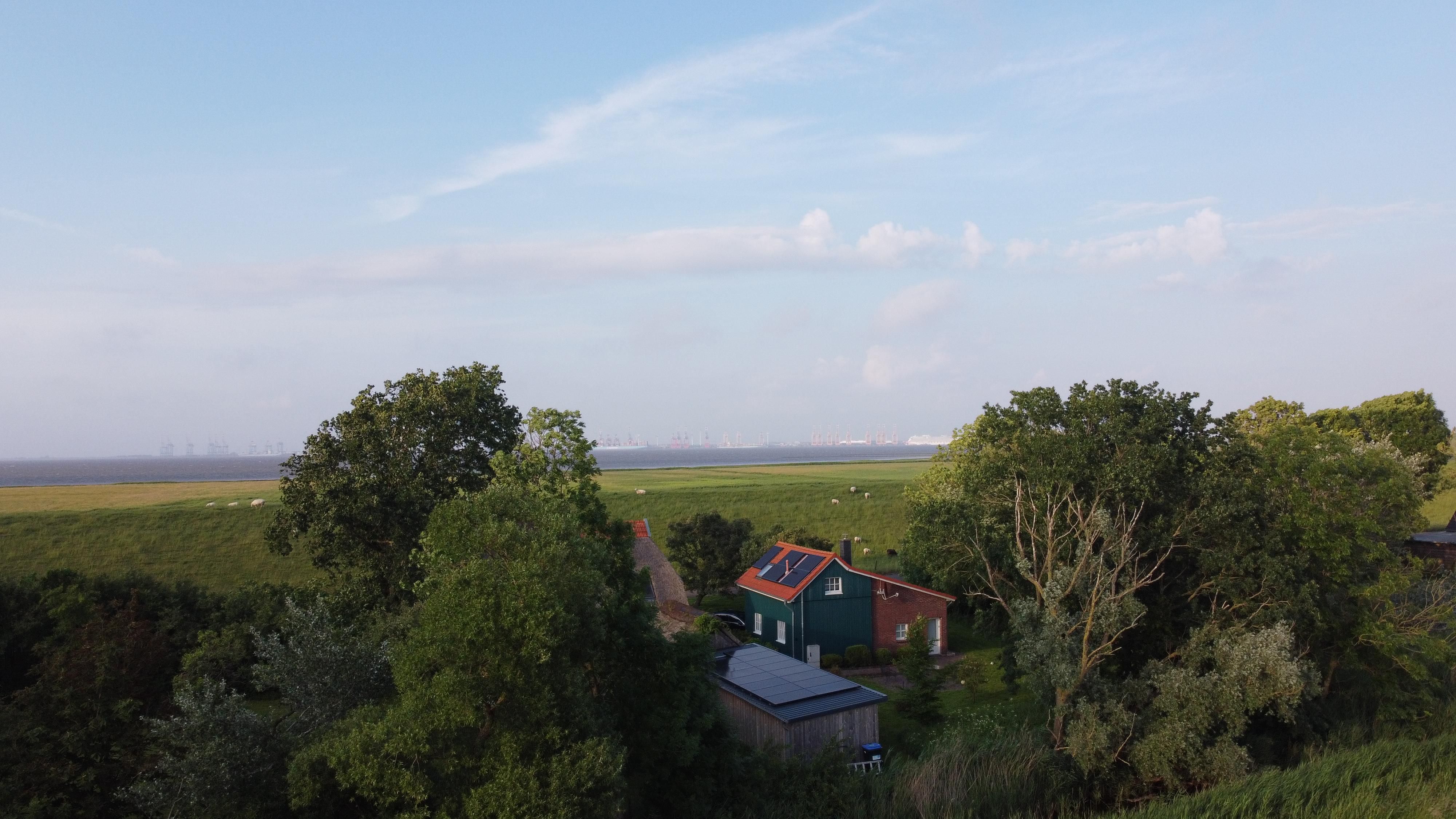 Vom Deich aus haben Sie einen freien Blich bis nach Bremerhaven zum Containerterminal und Kreuzfahrttermin nicht gestattet. al .