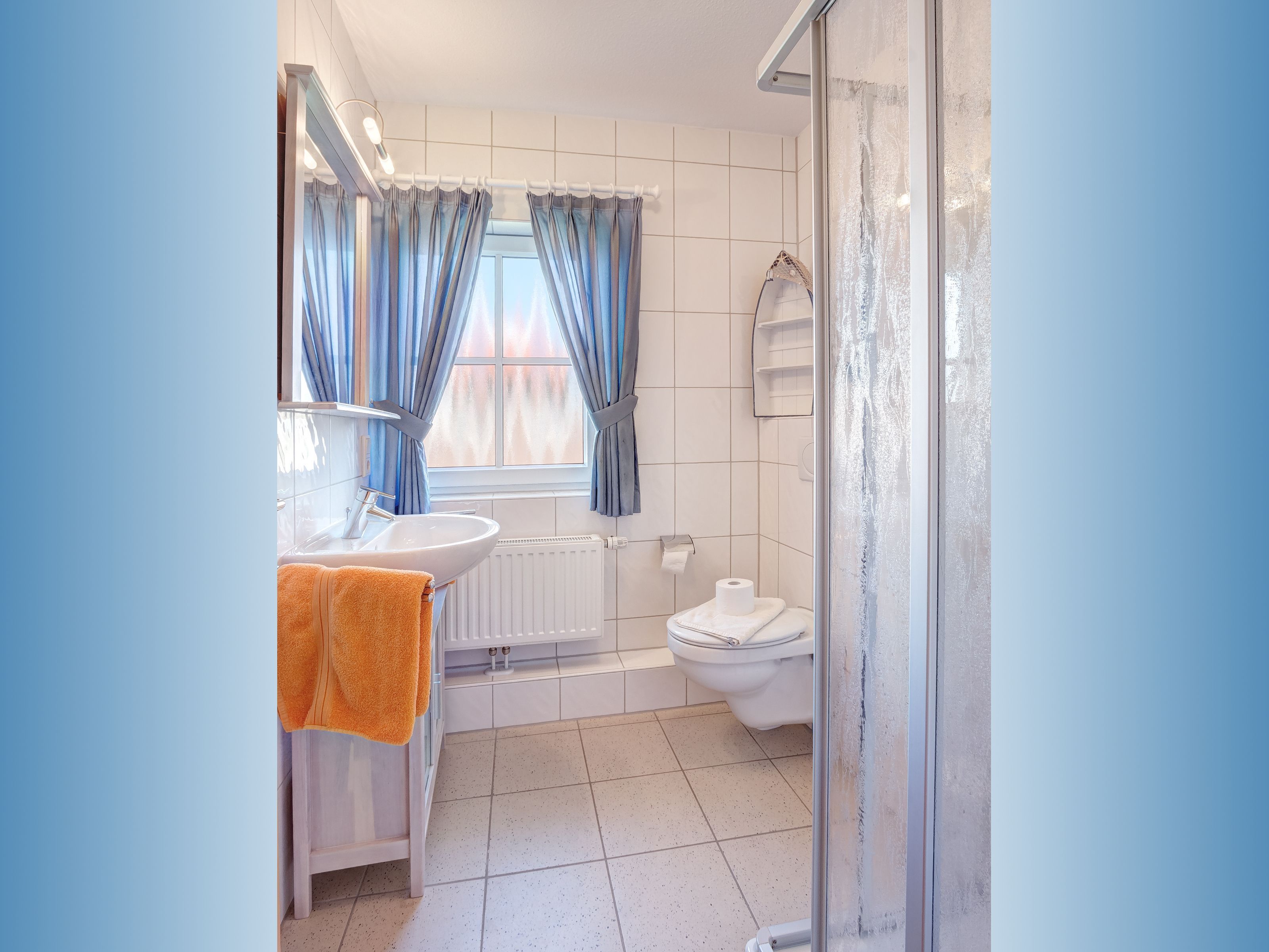 Des Weiteren finden Sie zwei Schlafzimmer mit je eine Doppelbett vor, sowie einem Badezimmer mit Dusche, WC und Waschbecken. In der gesamten Wohnung steht Ihnen kostenfreies W-LAN zur Verfügung.