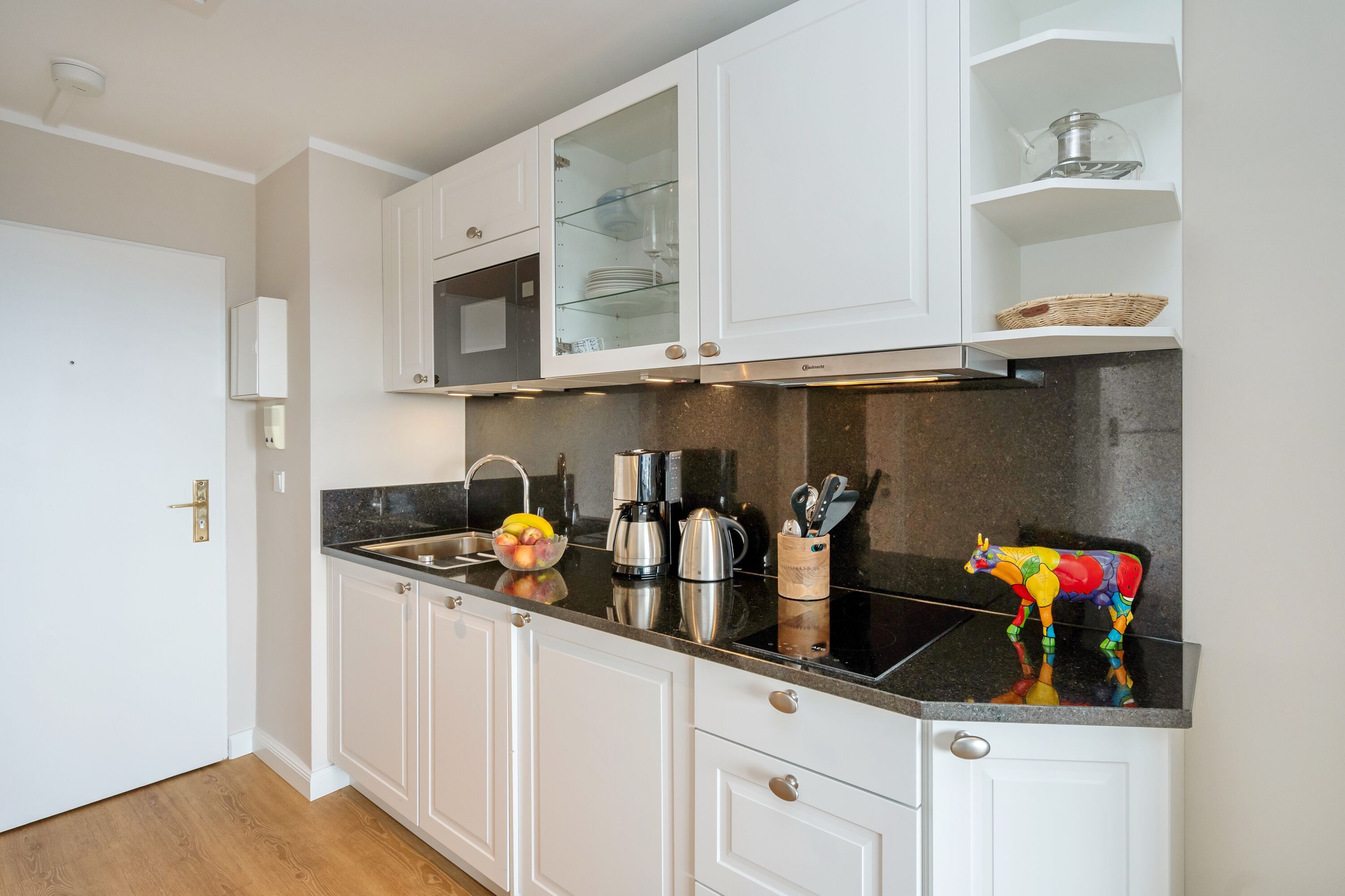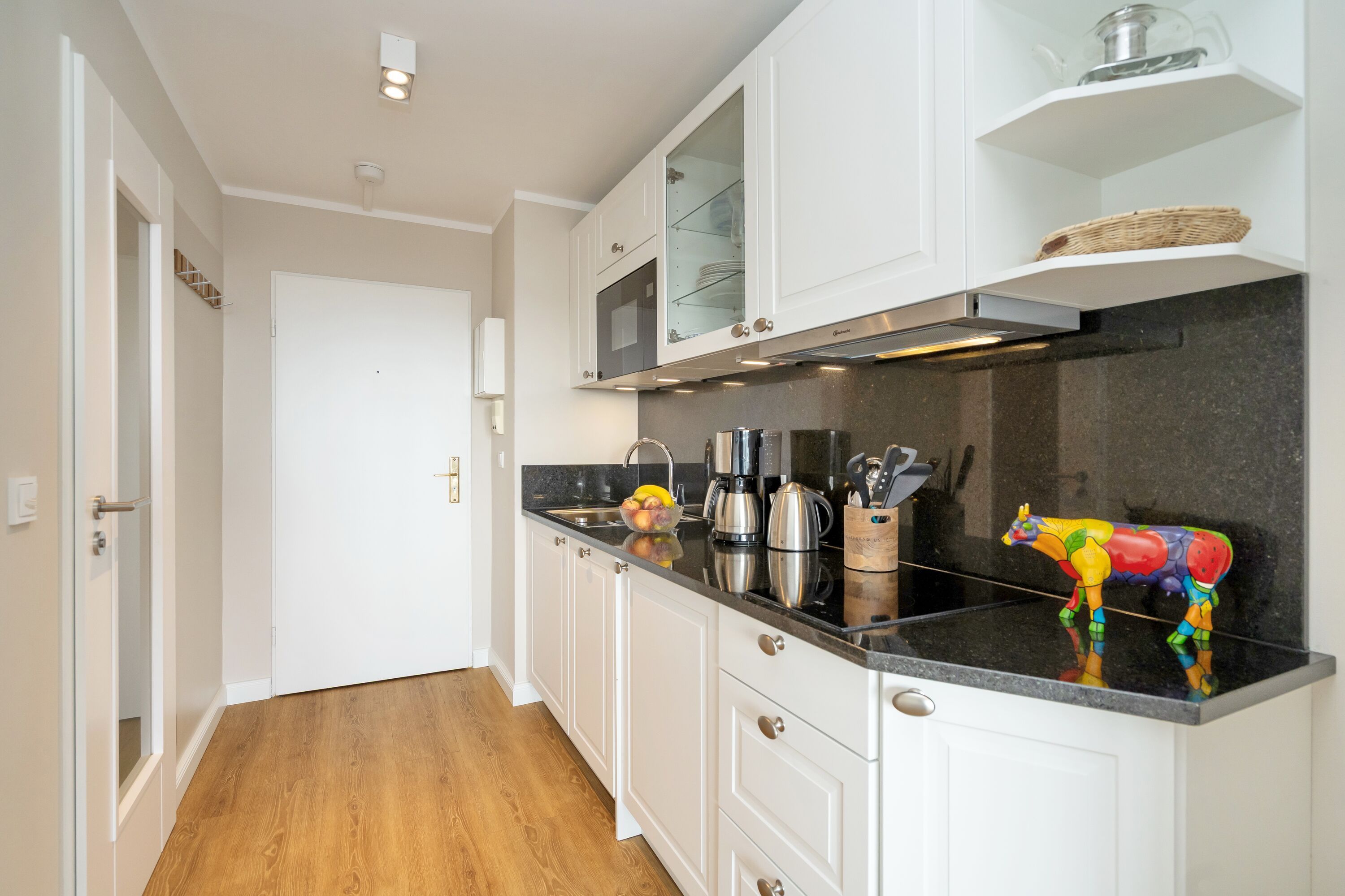 Frisch renovierte 1-Zimmer-Ferienwohnung mit traumhaften Blick über die Insel im Haus Metropol. Ca. 30m², 9. OG, Nichtraucher-Wohnung! Wohn-/Schlafraum mit hochwertigen Tischlereinbauten, Doppelbett (160x200) mit 2 Matratzen, 2-Sitzer-Sofa, Essplatz am Fenster, Flat-TV mit Radio. Hausinternes Internet (ohne Gewähr). Genießen Sie den Blick über die Insel bis zum Rantum Becken vom möblierten Ostbalkon. Die Küchenzeile verfügt über Geschirrspüler, 2-Platten-Ceranherd, Mikrowelle und Kühlschrank mit Gefrierfach. Geräumiges Duschbad / WC.