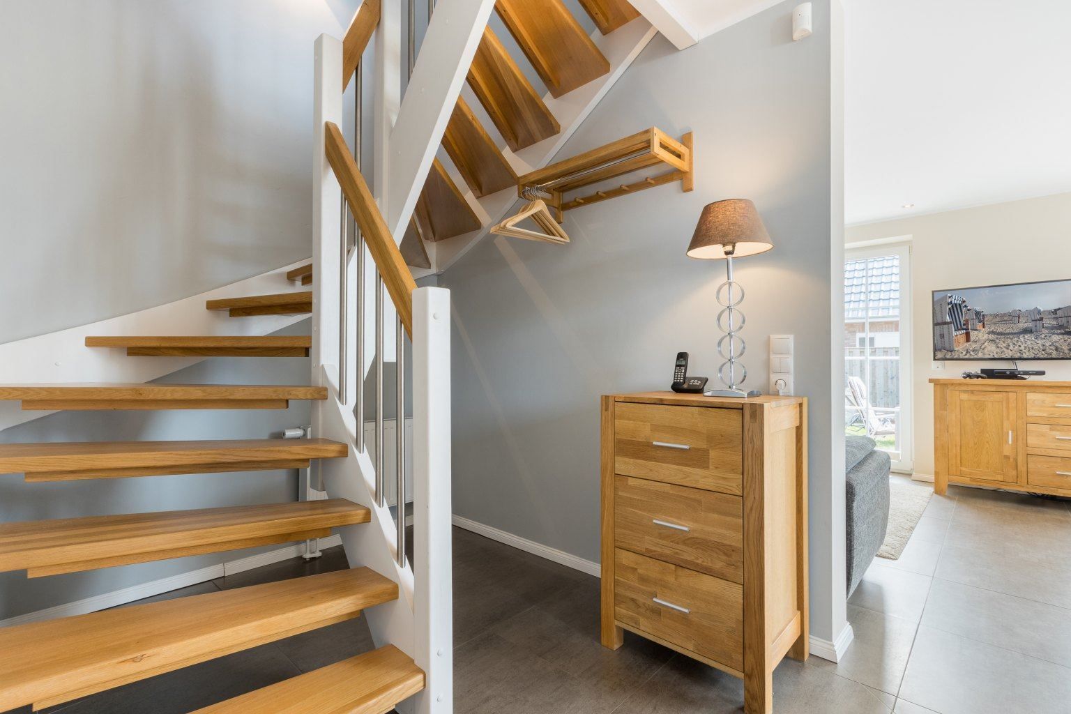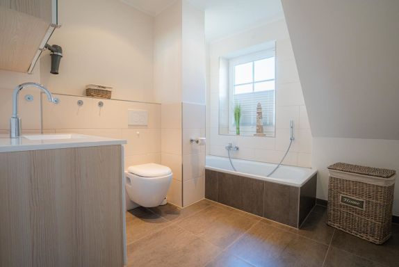 Beide Einheiten verfügen über eine Süd-Terrasse mit Gartenmöbeln und Strandkorb, je einen Hauswirtschaftsraum mit Waschmaschine & Trockner, WLAN (Glasfaser). Zwei Pkw-Stellplätze am Haus.