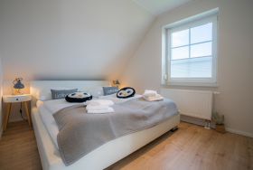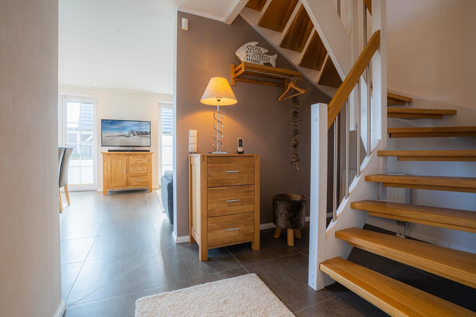 Exklusives Ferienhaus Droemhus mit zwei identischen Haushälften (IDs 382 & 466) in ruhiger Spielstraße im Ortsteil Dorf in St. Peter-Ording. Jede Haushälfte bietet auf ca. 82 m² Platz für bis zu 6 Personen.