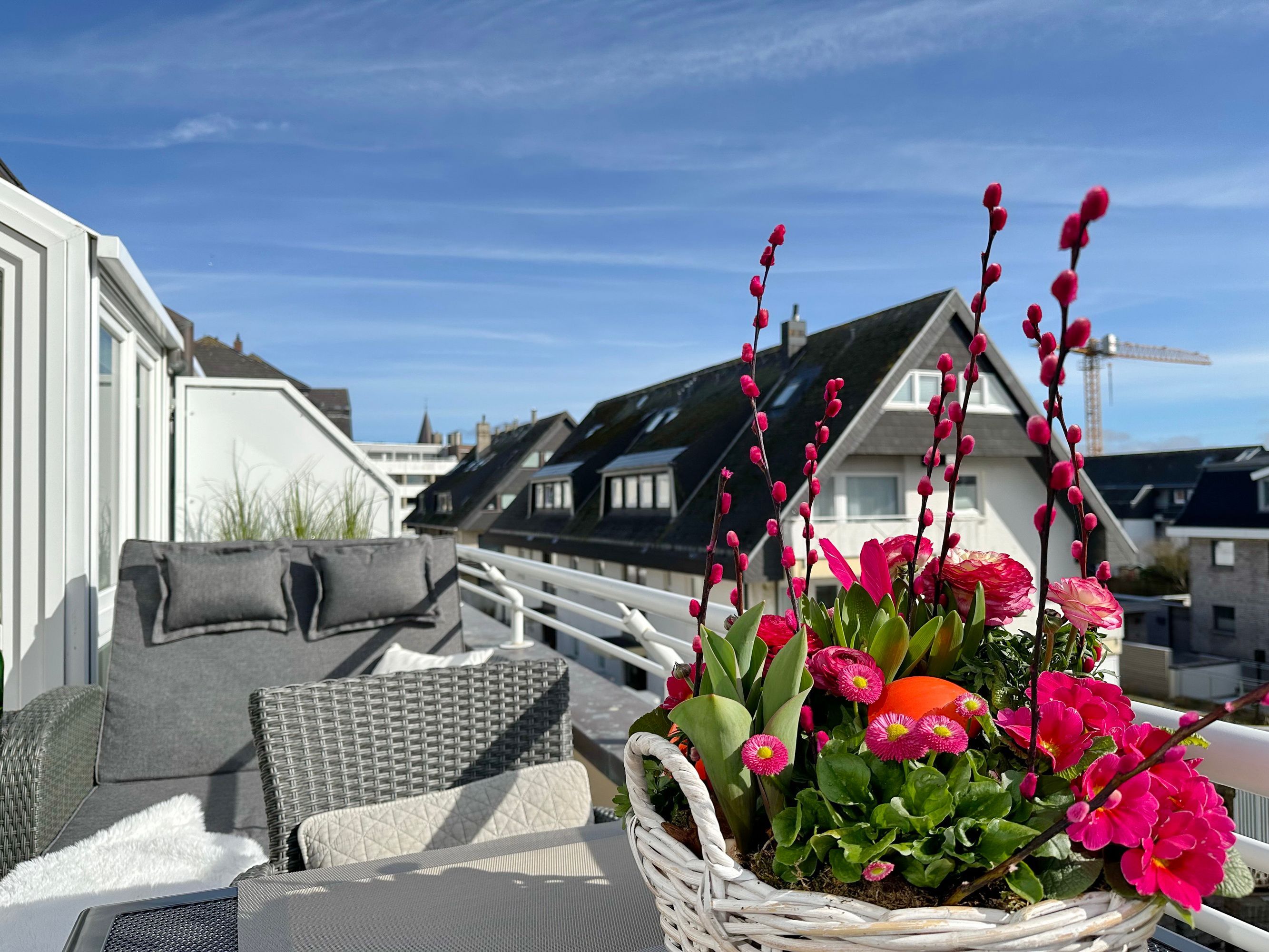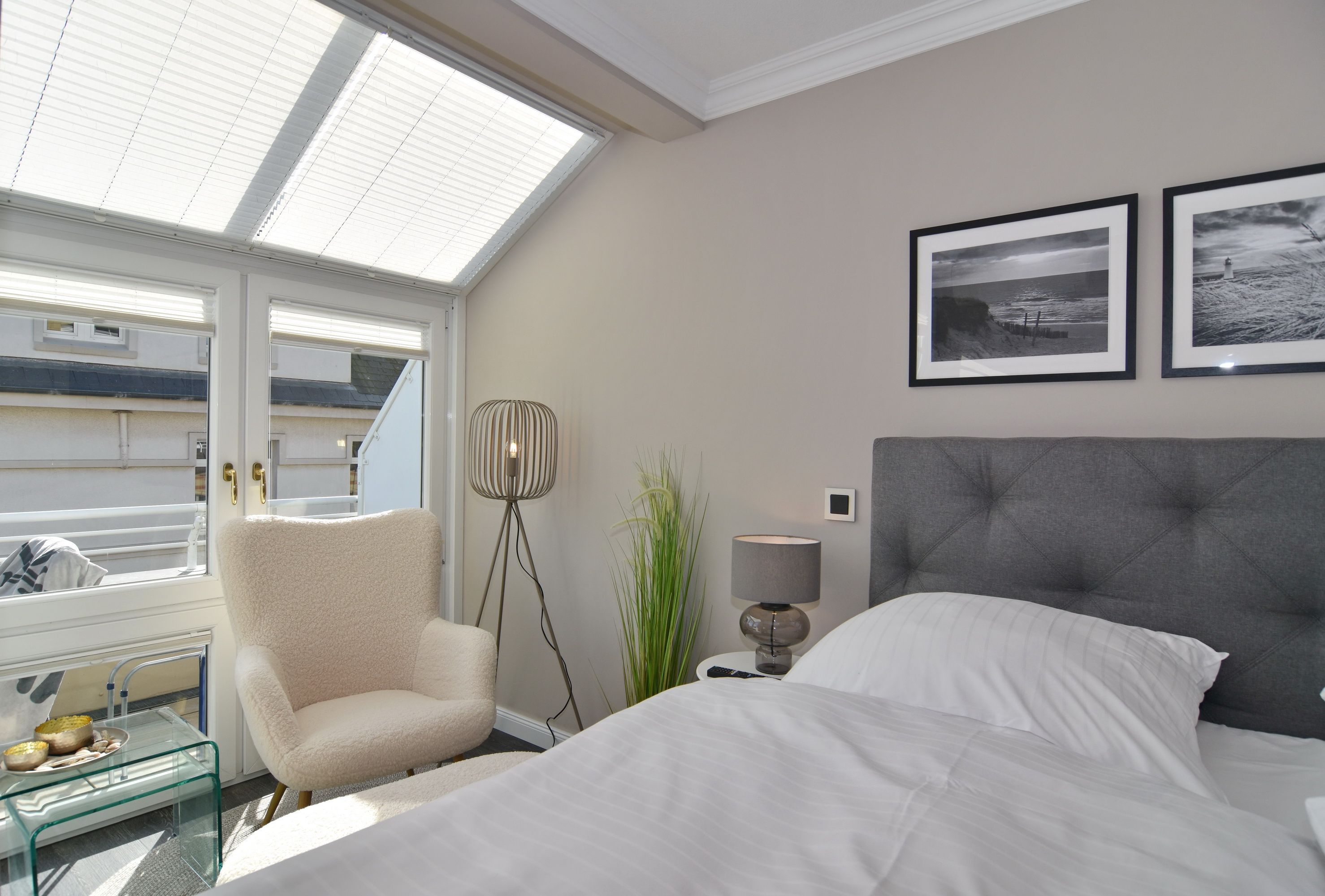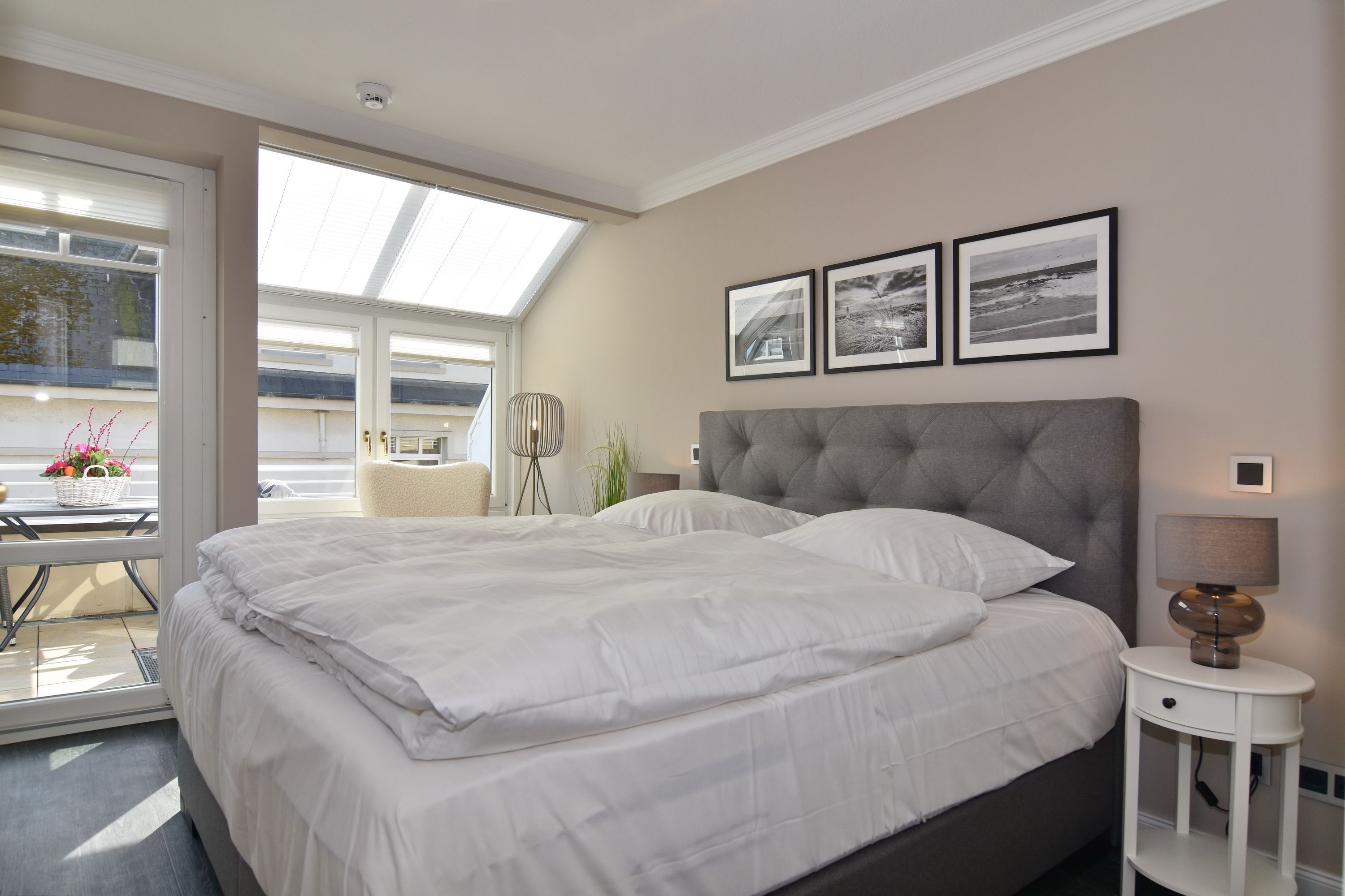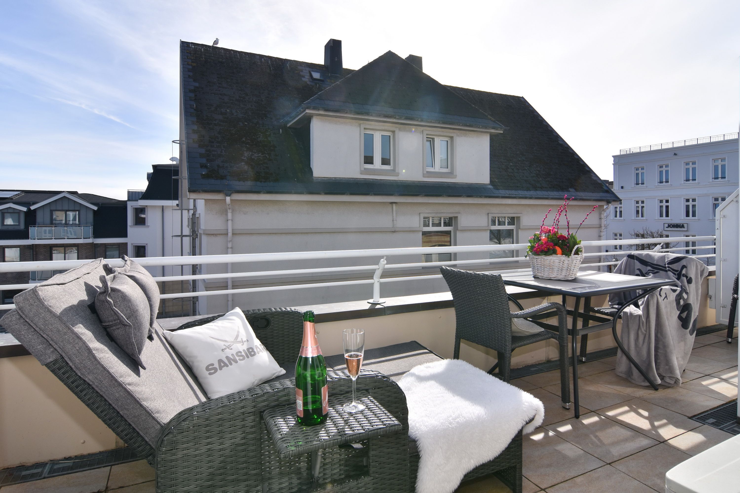 Wunderschöne 2-Zimmer-Wohnung im 2. OG der Residenz Bismarck. Direkt im Herzen Westerlands erwartet Sie eine lichtdurchflutete und modern eingerichtete Wohnung. Die Wohnung verfügt über ein Wohn- und ein Schlafzimmer. Von beiden Räumen gelangen Sie auf die großzügige Südterrasse. Im Wohnzimmer befindet sich der Essplatz im Wintergarten und bietet Ihnen selbst an grauen Tagen viel Licht. Das Sofa verfügt über eine Schlaffunktion, so dass Sie auch getrennt schlafen können. Die offene Küche verfügt über Backofen, Mikrowelle, Cerankochfeld, Kühlschrank mit Gefrierfach, Wasch-Trockner, Nespressomaschine und Kaffeefiltermaschine. Das Schlafzimmer hat neben dem komfortablen Boxspringbett (180x200), einen Kleiderschrank, TV und kleine Leseecke mit Sessel im dazugehörigen Wintergarten. Sämtliche Fenster sind mit Plissees versehen, im Schlafzimmer sind entgegen der Bilder inzwischen Verdunklungsplissees angebracht worden. Wohn- und Schlafraum verfügen über eine Klimaanlage. Das Badezimmer besteht aus Wanne mit Duschvorrichtung, Waschbecken und WC. Die Betten sind zur Anreise bezogen.