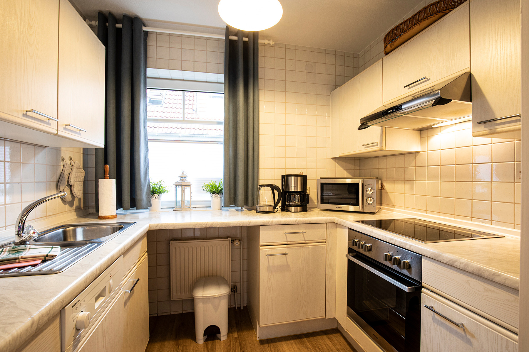 Durch einen Windfang, wo sich das Gäste-WC befindet, gelangen Sie in den großzügigen modernen Wohn- und Essbereich mit angrenzender gut ausgestatteter Küche. Das Erdgeschoss bietet Ihnen einen angenehmen und gemütlichen Platz für alle Gäste.