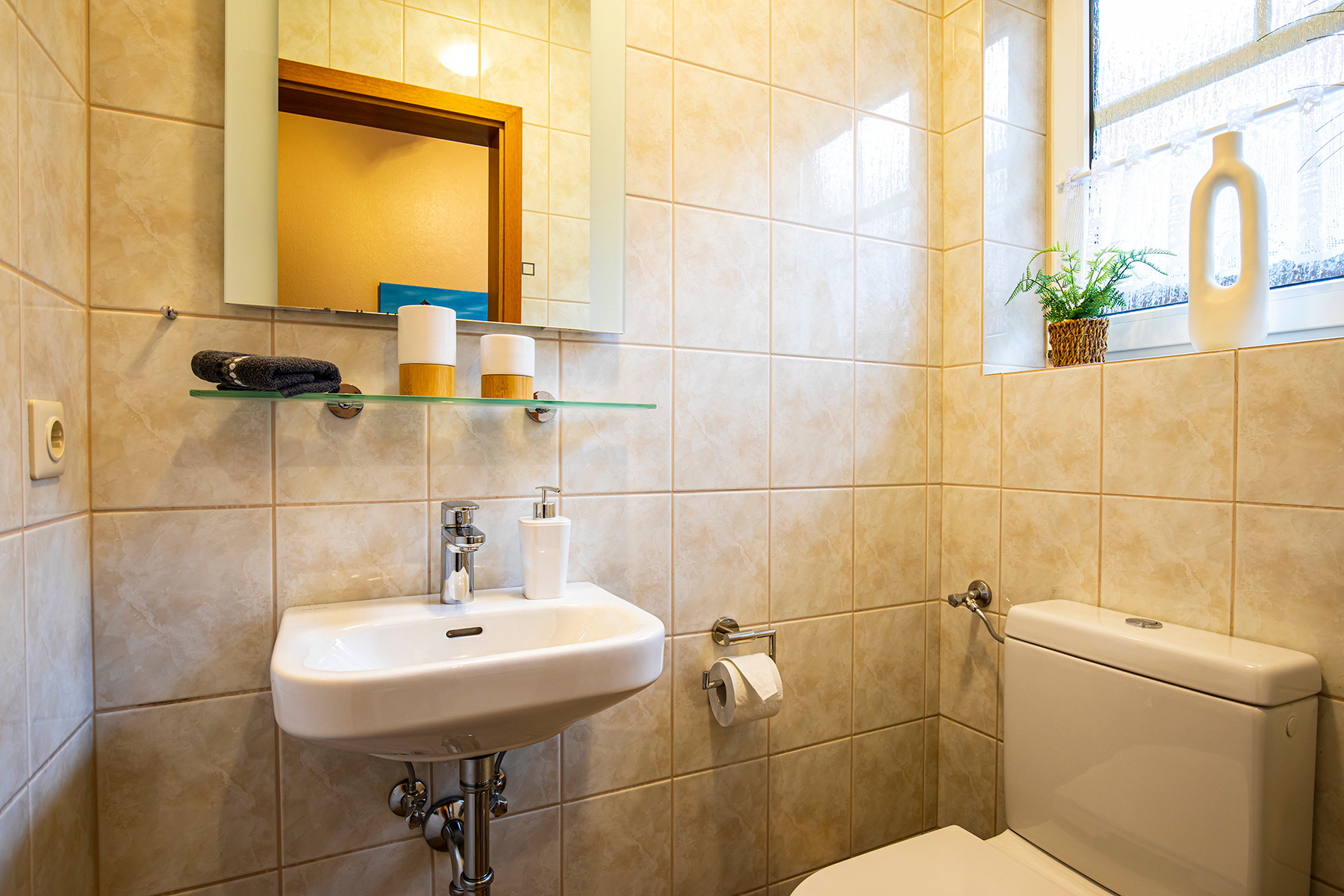 Angrenzend befindet sich ein kleiner Abstellraum. Über eine massive Treppe gelangen Sie in das Dachgeschoss wo sich zwei große Schlafzimmer mit jeweils einem Doppelbett und Kleiderschrank befinden, sowie das angrenzende Duschbad.