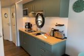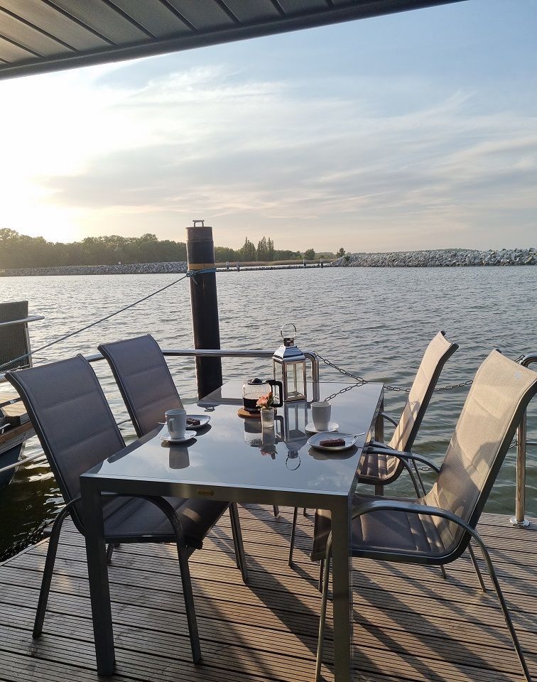 Die angrenzende, vollausgestattete Küche mit allen wichtigen Küchengeräten und einem Induktionsherd lässt keine Wünsche offen. Die Spülmaschine unterstützt Sie dabei, schnell wieder die wesentlichen Dinge des Urlaubes fokussieren zu können. An warmen Tagen laden sowohl die zwei Sonnenterrassen vor und hinter dem Wohnaufbau als auch die Dachterrasse zum Entspannen und Sonnenbaden ein. Auf dieser haben Sie einen atemberaubenden Blick über den Barther Bodden bis zur vorgelagerten Halbinsel Fischland ? Darß - Zingst und können wunderbare Sonnenuntergänge genießen.