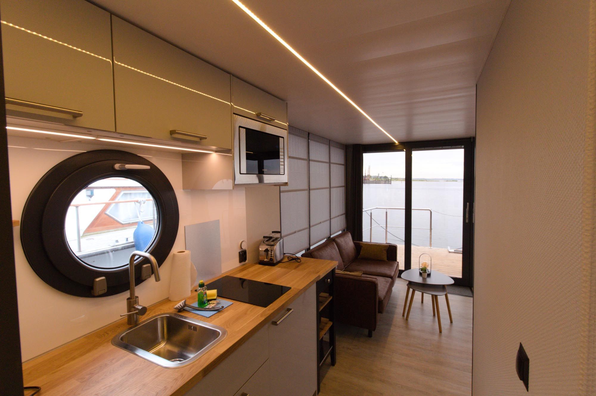 In der ersten Reihe gelegen und mit direktem Blick auf die offene Ostsee und das Natuschutzgebiet Bottsand bietet dieses großzügige Hausboot den ganzen Komfort einer modernen und hochwertigen Ferienwohnung mit Sonnen- und Dachterrasse, sowie bordeigener Biosauna - dem besonderen Highlight an Bord.