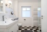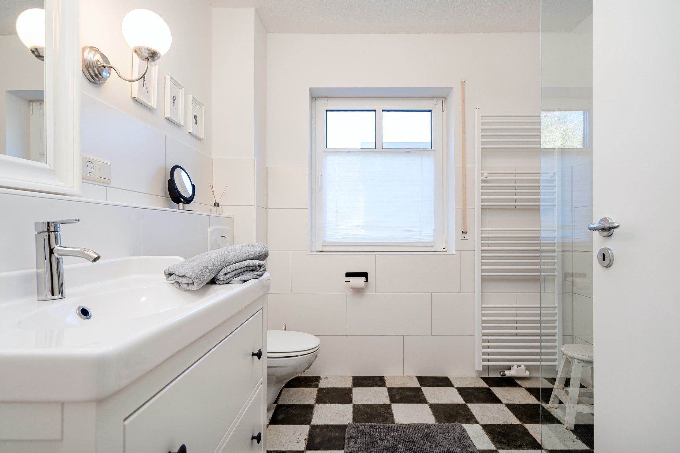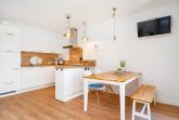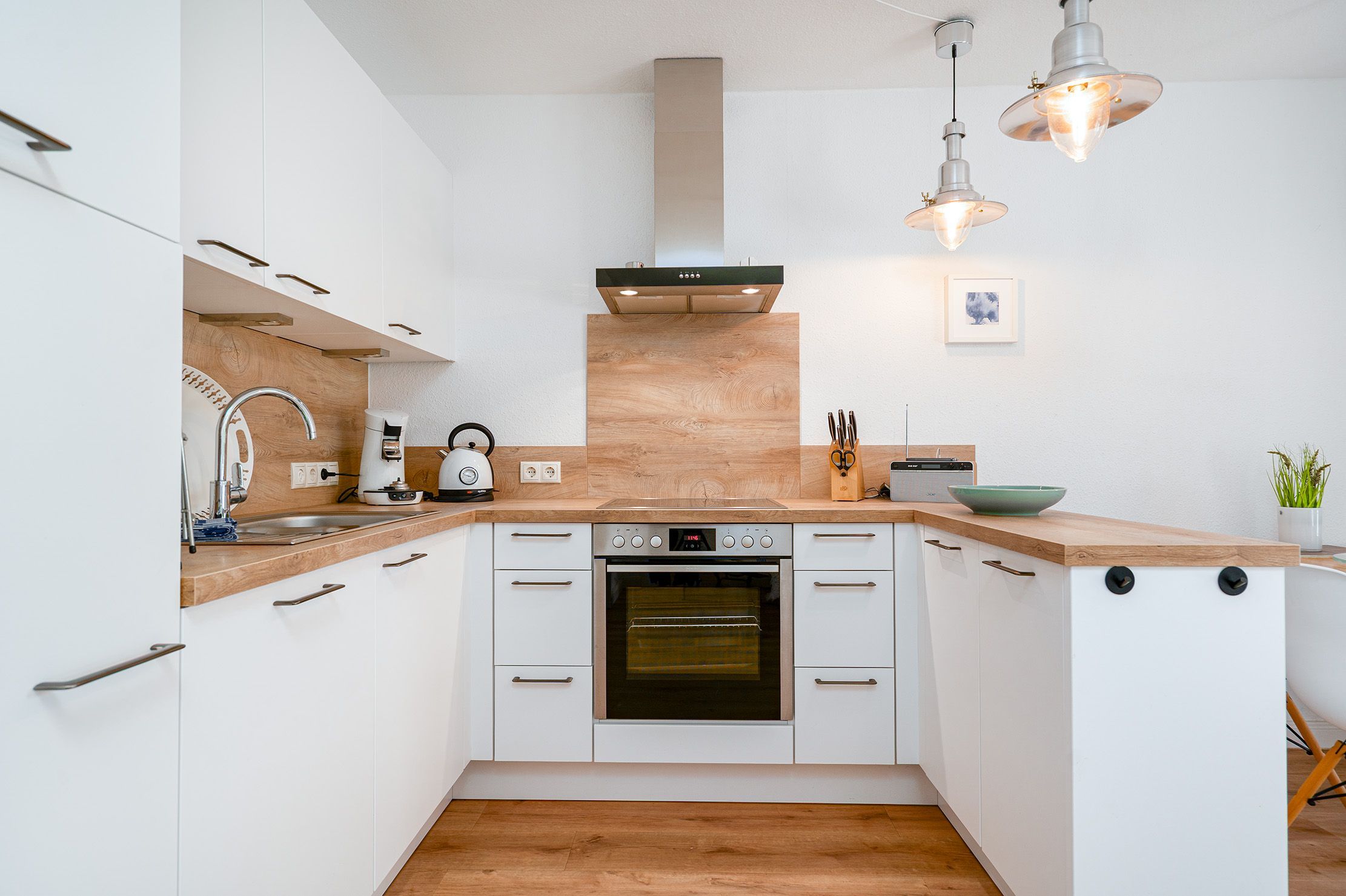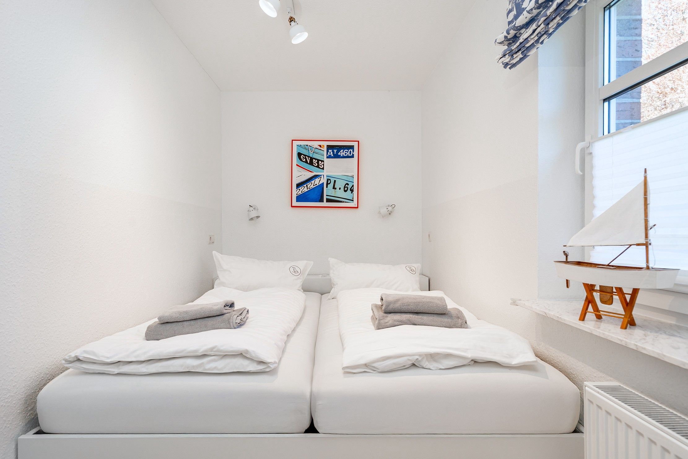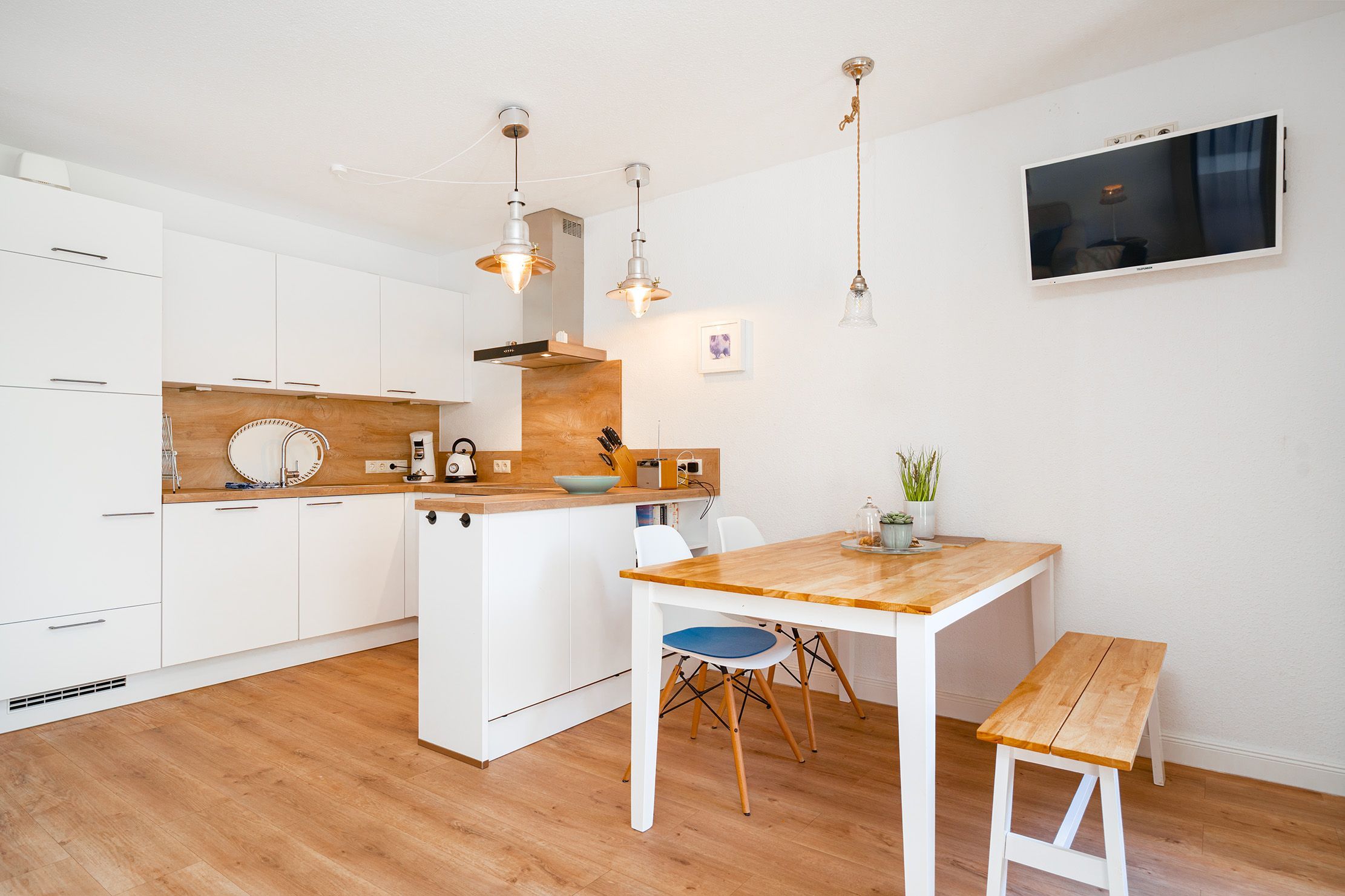 Unsere ebenerdige Ferienwohnung of und an wurde erst kürzlich vollständig renoviert und befindet sich in zentraler Lage direkt hinter dem Deich. Mit ihrer nordischen Einrichtung in sanften Natur- und Weißtönen schafft die Wohnung eine gemütliche Atmosphäre. Auf etwa 70qm bietet sie einen hellen und hochwertig eingerichteten Wohnbereich mit einer großen und voll ausgestatteten Küchenzeile, einen Essbereich sowie eine einladende Sofaecke für gemeinsame Abende. Neben einem Tageslichtbad mit ebenerdiger Dusche verfügt die Wohnung über zwei Schlafzimmer mit Doppelbetten. Auch ein Abstellraum steht zur Verfügung. Die großzügige Terrasse mit Garten erreichen Sie bequem durch den Wohnbereich, hier lässt sich die frische Nordseeluft bestens genießen. Am Haus steht Ihnen ein reservierter Parkplatz zur Verfügung. Besonders hervorzuheben bei dieser Wohnung ist die Kombination aus ruhiger und zentraler Lage, denn den Hafen mit seinen zahlreichen Restaurants und kleinen Geschäften erreichen Sie über den Deich in nur wenigen hundert Metern zu Fuß und dennoch bietet die Wohnung mit ihrer Außenanlage den perfekten Rückzugsort.