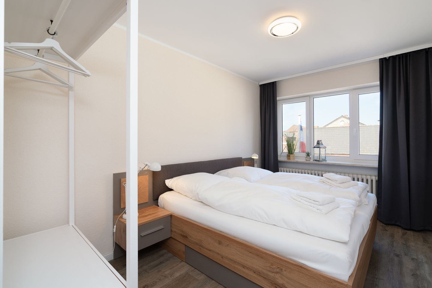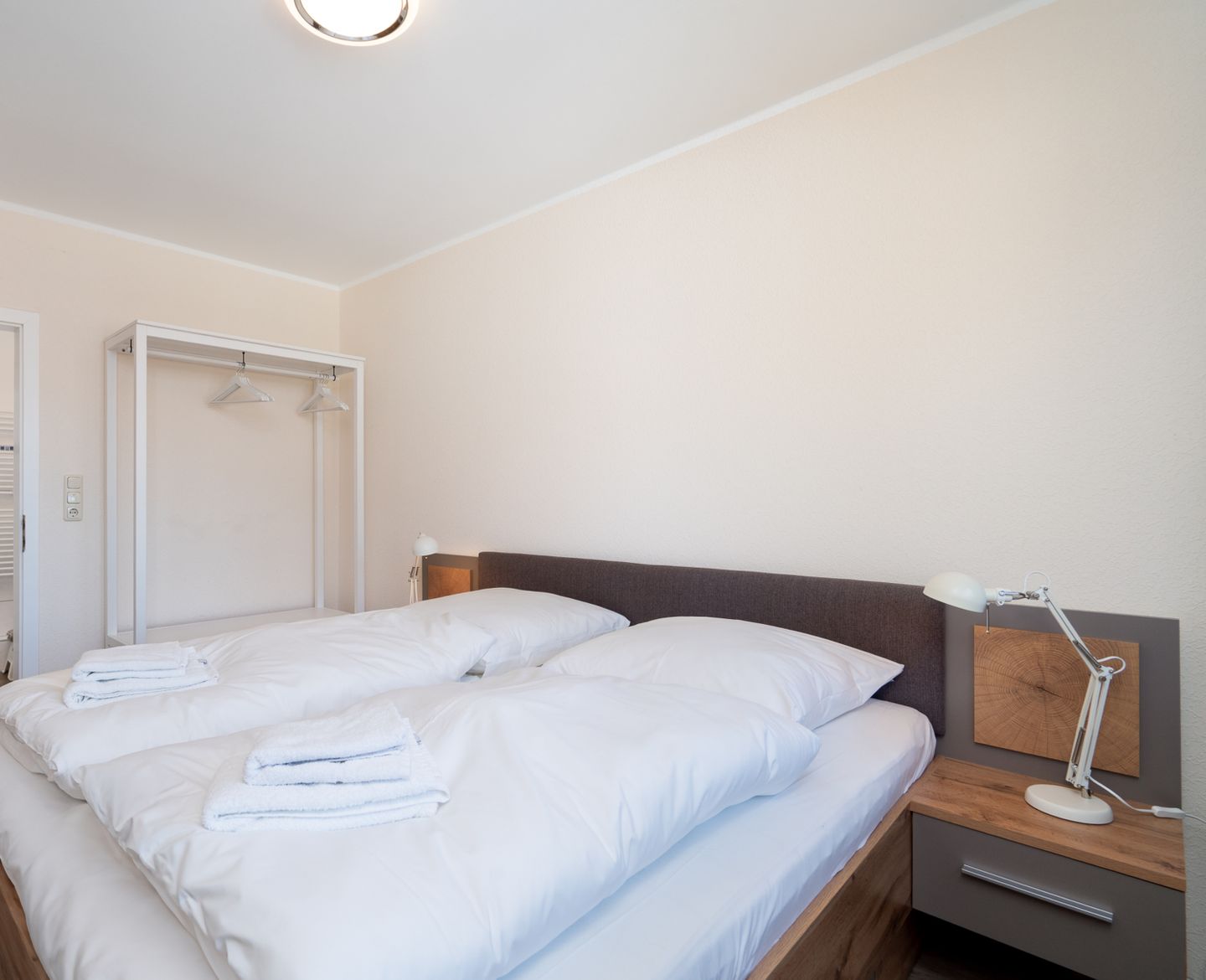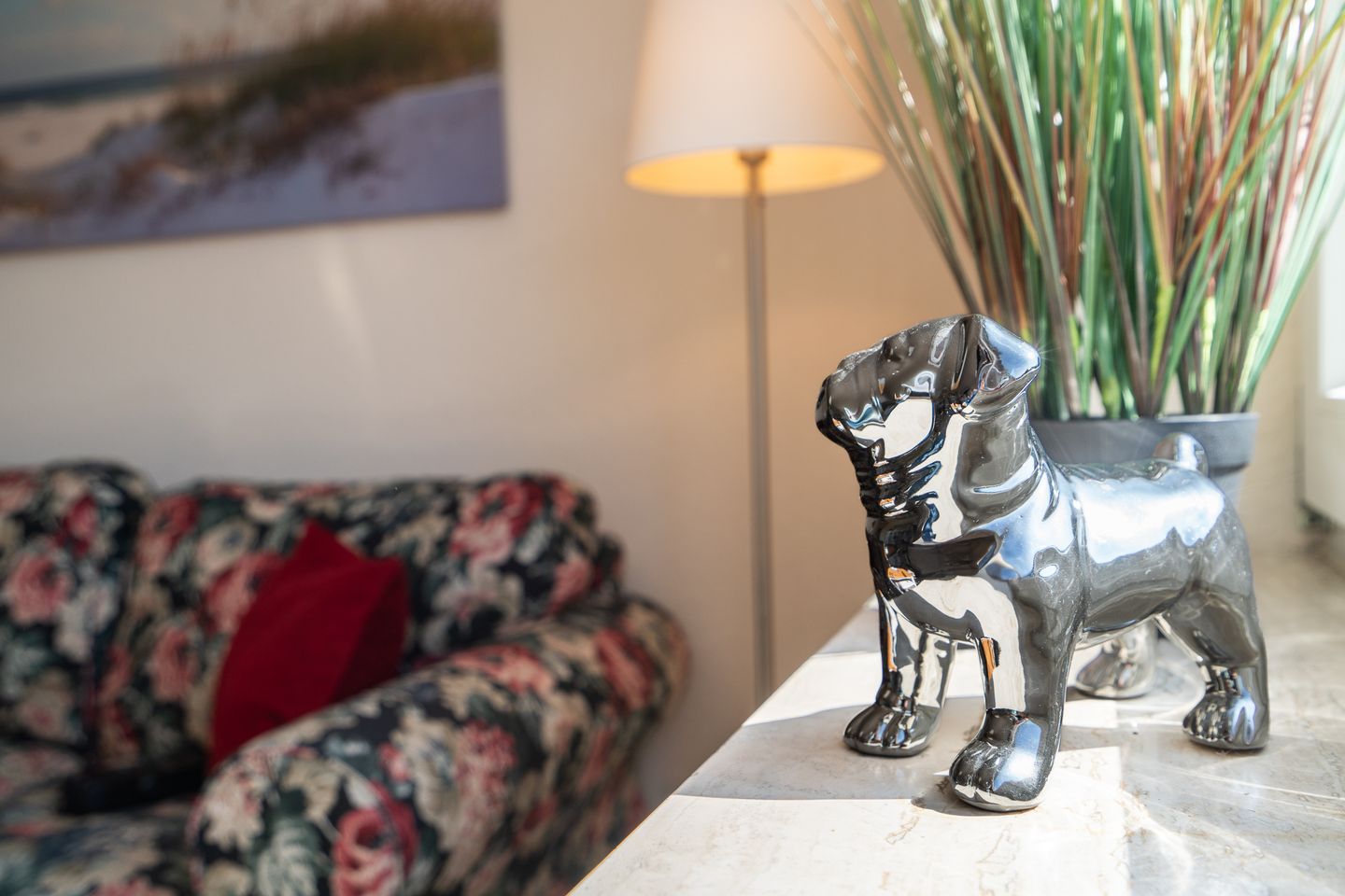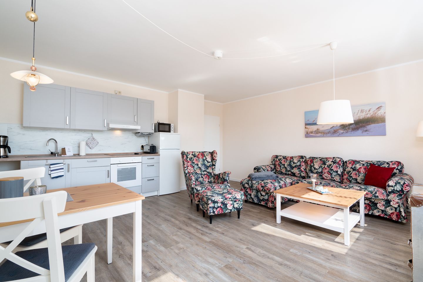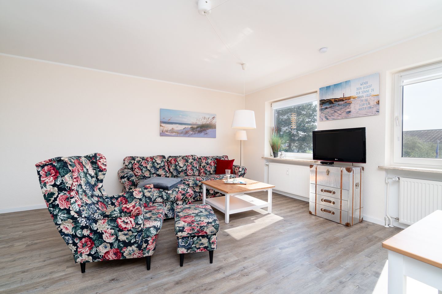 Erleben Sie erholsame Tage in dieser gemütlichen 55 m² großen Ferienwohnung im 1. Obergeschoss – perfekt für zwei Gäste und ihre vierbeinigen Begleiter. Die liebevoll eingerichtete Wohnung bietet ein komfortables Schlafzimmer, ein modernes Duschbad mit Haartrockner sowie eine offene, voll ausgestattete Küche mit Mikrowelle, Kaffeemaschine und allen notwendigen Küchenutensilien. Auf der möblierten Terrasse mit Grillplatz, Markise, Sonnenliegen und Strandkorb können Sie entspannte Stunden genießen. Das 900 m² große, vollständig eingezäunte Grundstück bietet viel Platz für Sie und Ihren Hund.