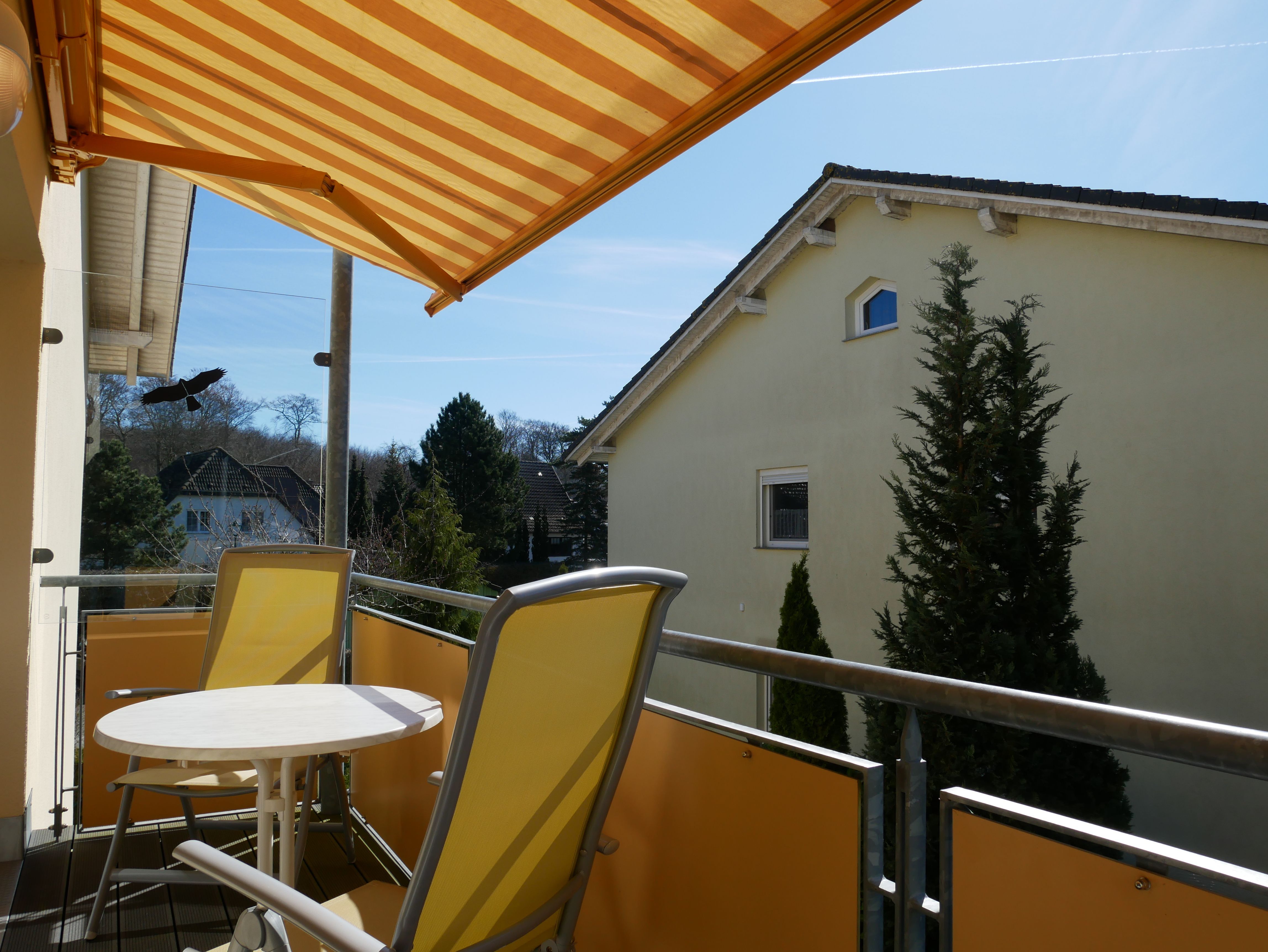 Den Balkon erreichen Sie vom Wohnzimmer und vom Schlafzimmer aus. Dieser ist möbliert und verfügt über eine elektrische Markise. Internet via WLAN steht Ihnen kostenfrei zur Verfügung.