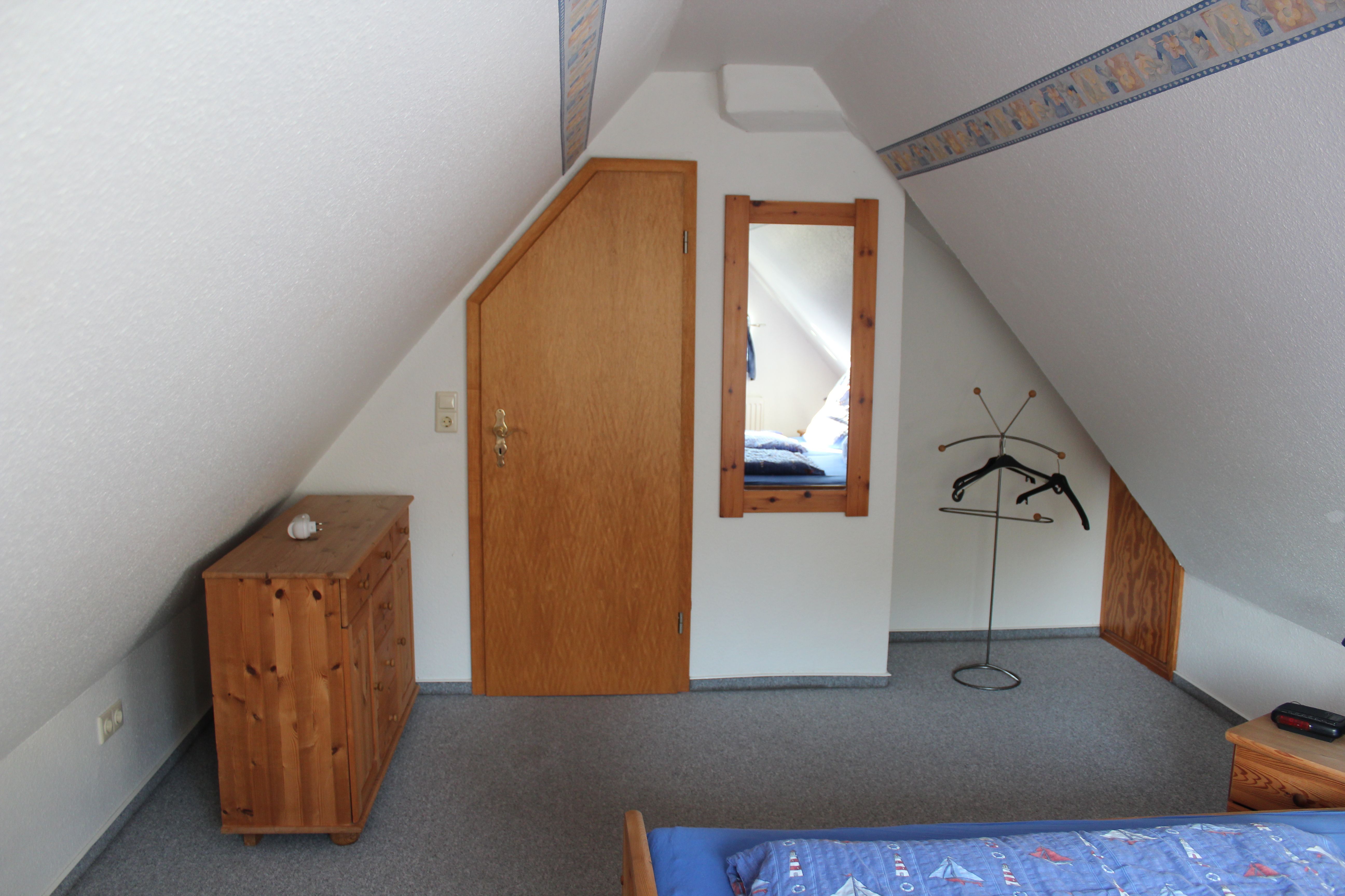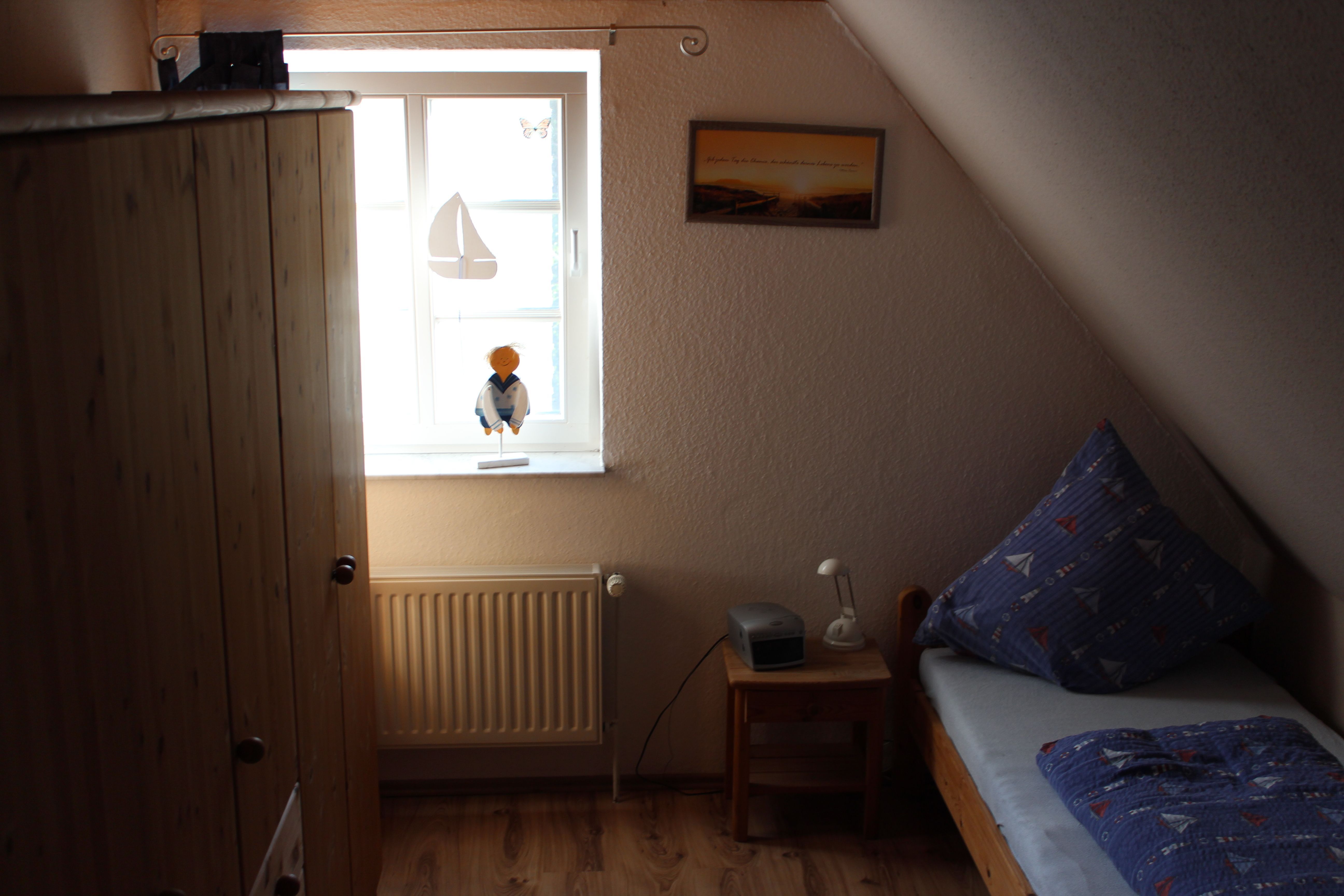 In der gemütlichen, 75 qm großen Ferienwohnung im Obergeschoß finden Sie Platz für 2 bis 5 Personen. Die, im nordischen Stil eingerichtete helle Wohnung, verfügt über drei Schlafzimmer, ein Wohnzimmer mit integrierter Küche und Eßplatz, und natürlich ein Duschbad.