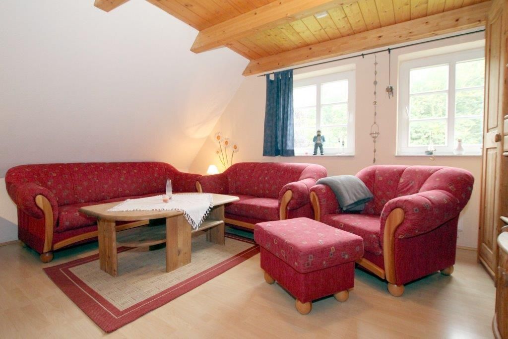 Auf dem landwirtschaftlichen Betrieb stehen im Garten Sitzecken mit Strandkorb und Grillmöglichkeiten bereit, hier kann man gemütlich den Tag ausklingen lassen und die Kinder können auf dem hofeigenen Spielplatz toben.
