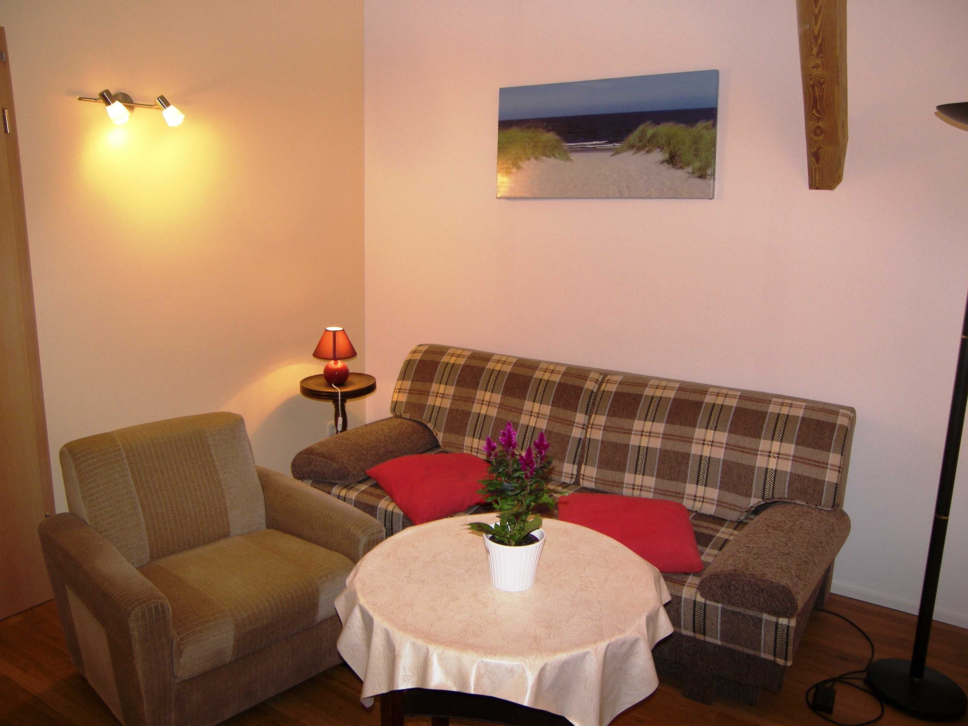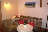 Die Ferienwohnung „Heuboden“ befindet sich im Dachgeschoss (1. Etage) des Hauses und ist über einen separaten Eingang, über die eigene Terrasse zu erreichen. Der großzügige Wohnbereich mit offener Küchenzeile ist ausgestattet mit zwei gemütlichen Couchen, einer Essecke und einem großen Flachbildfernseher. Eine Aufbettung für 2 Personen ist im Wohnzimmer möglich. In der Küche finden Sie einen Backofen, einen 4-Platten-Herd, einen Toaster, eine Kaffeemaschine und einen Wasserkocher, sowie ein großer Kühlschrank mit Gefriermöglichkeit. Das gemütliche Schlafzimmer ist mit einem Doppelbett und einem Kleiderschrank ausgestattet. Das großzügige Badezimmer verfügt über eine Dusche. Genießen Sie die Sonnenstrahlen von Nachmittag bis abends auf Ihrer Terrasse und lassen Sie die Abende in Ruhe ausklingen.