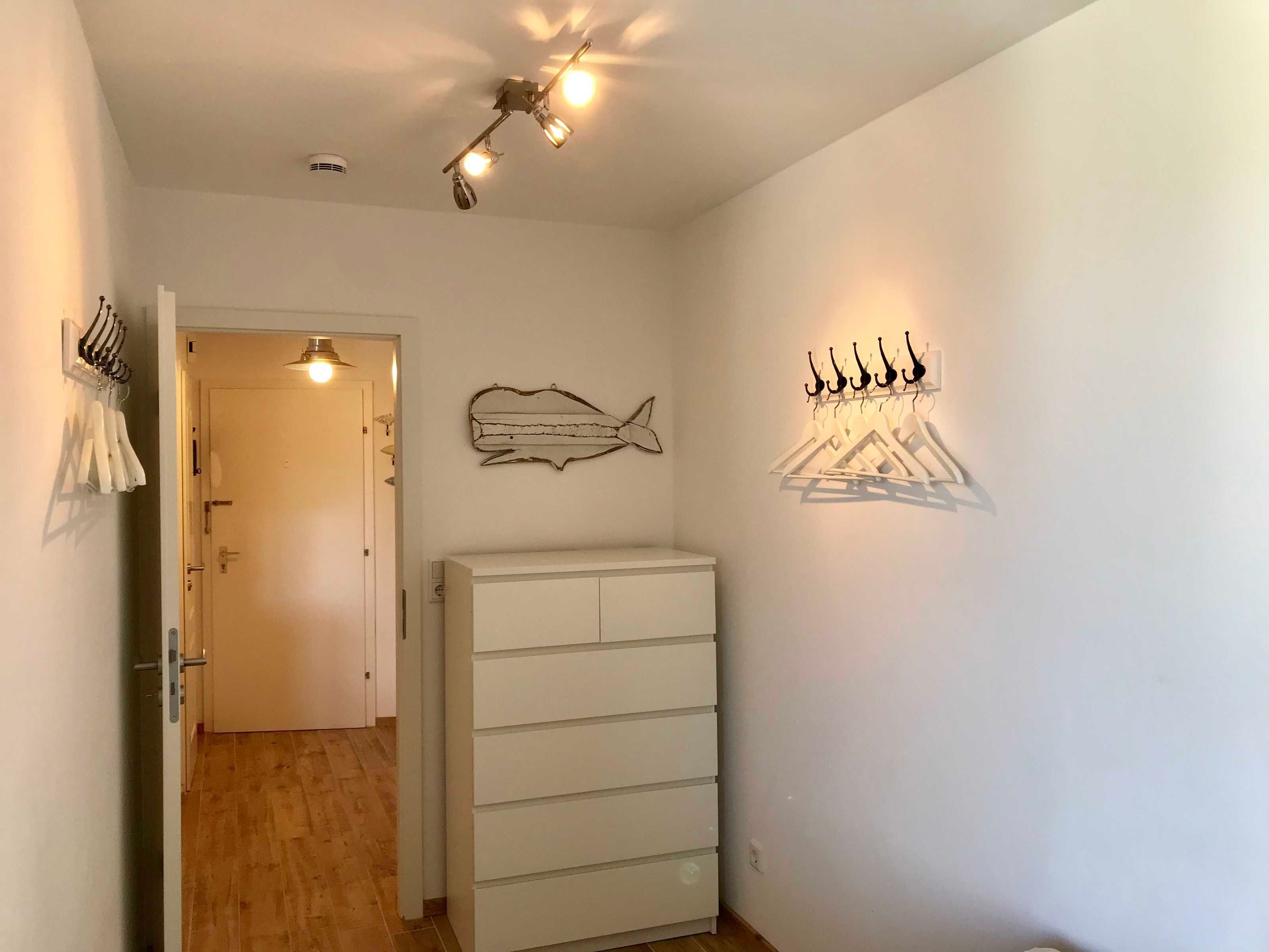 Im Flur ist ein großer Einbauschrank, der ausreichend Platz für Kleidung und Vorräte bietet.