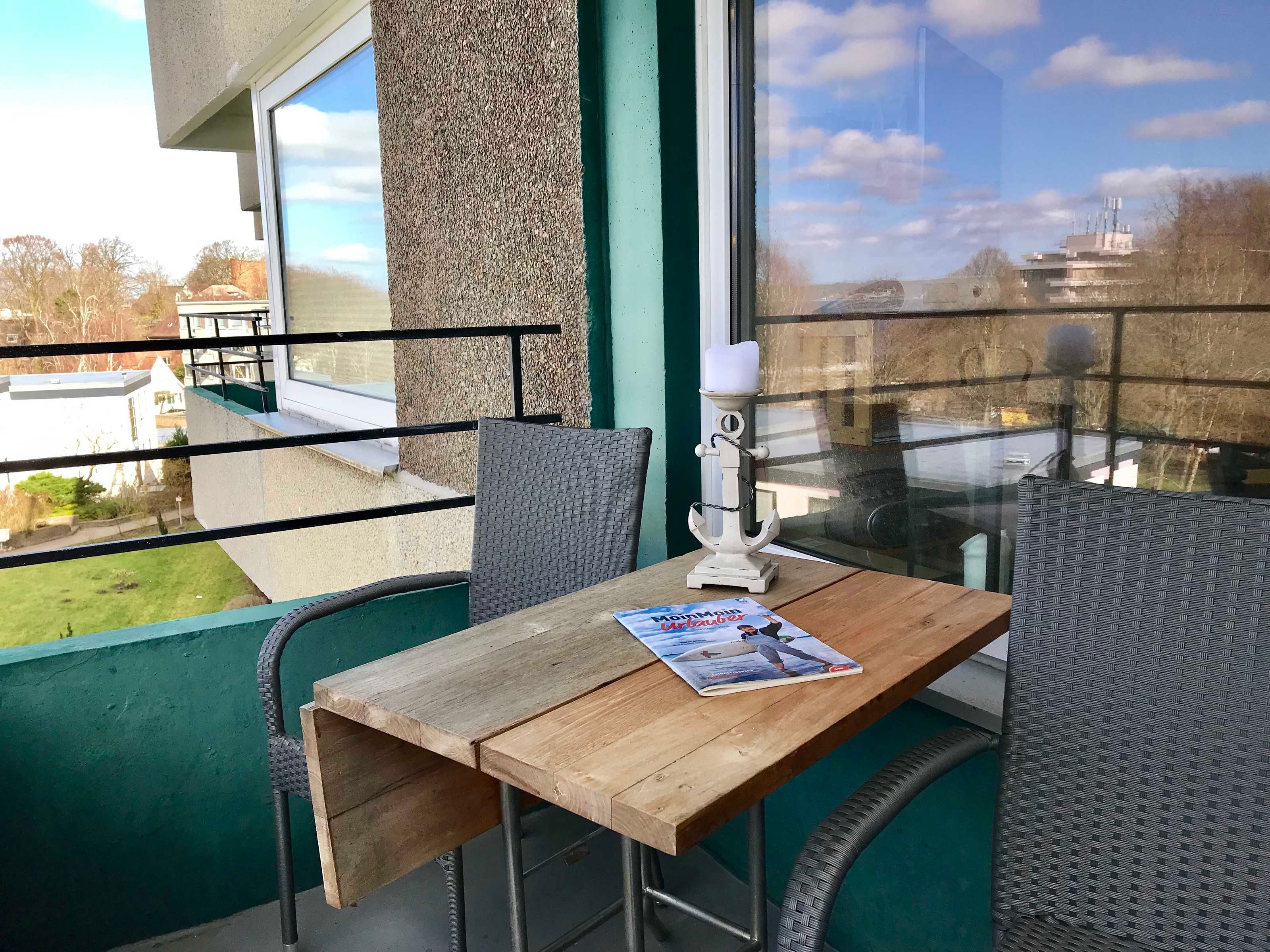 - Balkon: Ostseeblick, 2 Stühlen und einem kleinen Tisch
